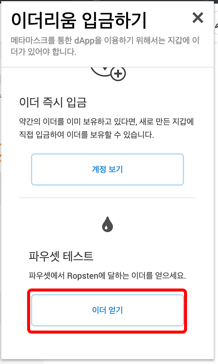 Faucet 테스트 ETH 얻기를 누릅니다.