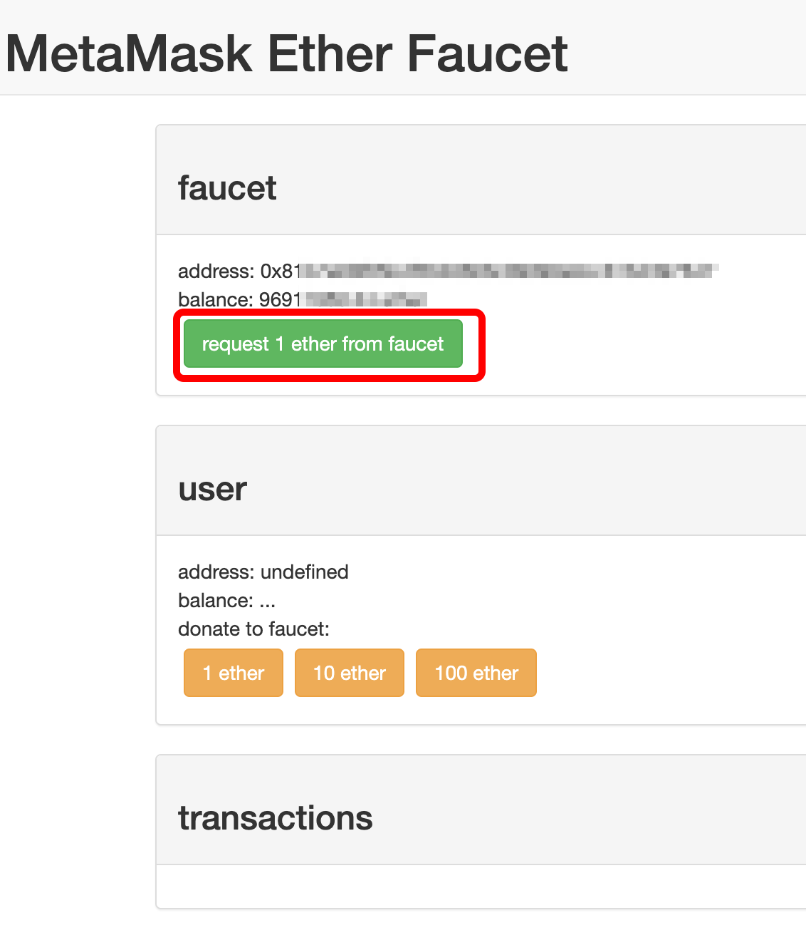 request 1 ether from faucet 버튼을 몇 번 더 눌러주시면 됩니다.