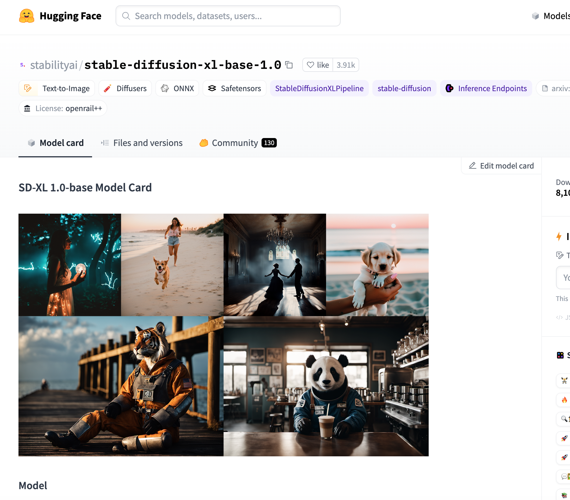 stabilityai/stable-diffusion-xl-base-1.0 을 찾아서 클릭합니다.