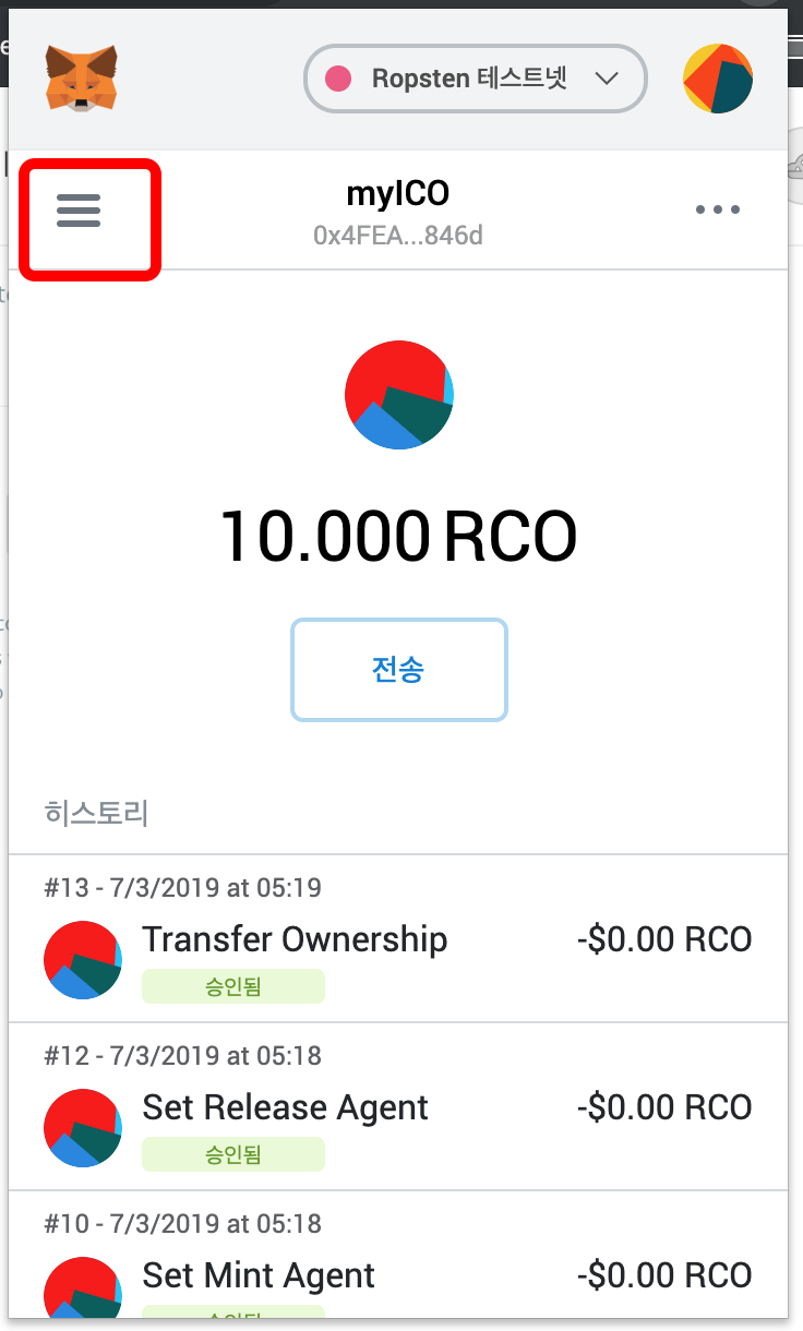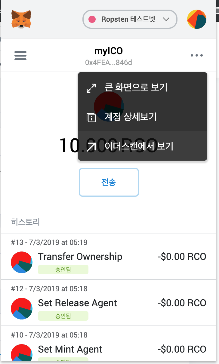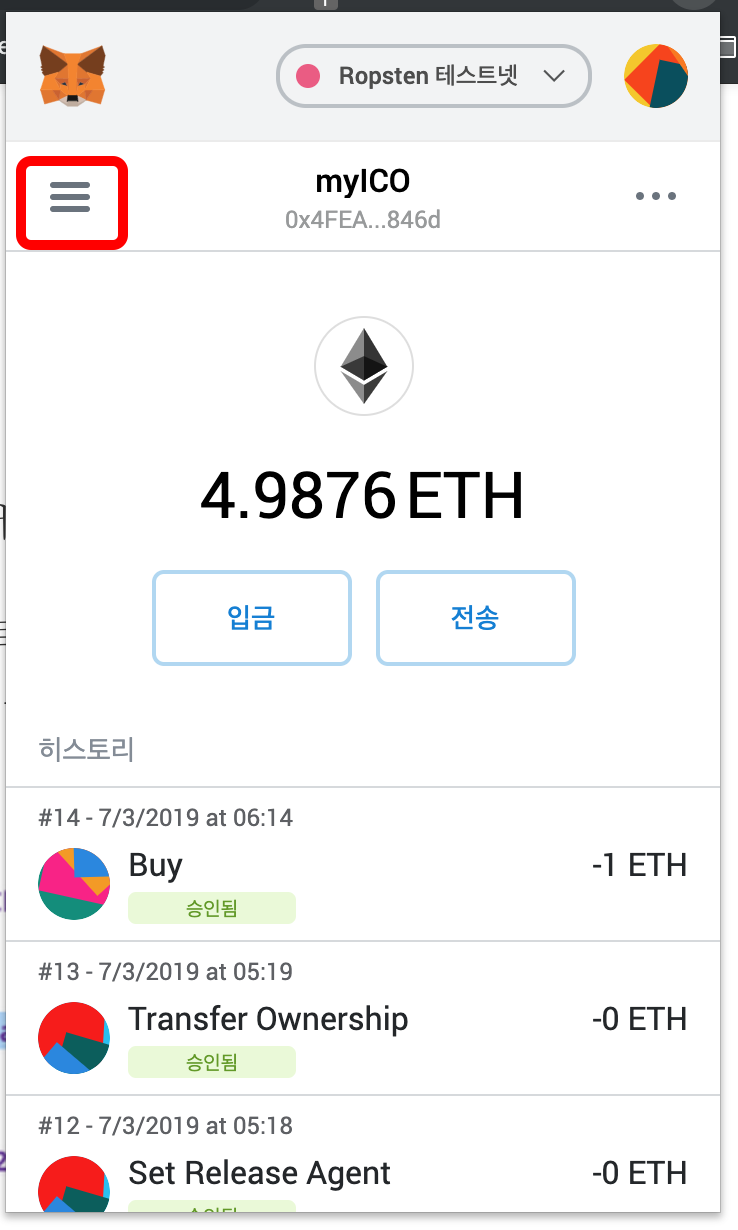 이때 내 지갑이 Ropsten 테스트넷으로 선택되었는지 확인하세요.