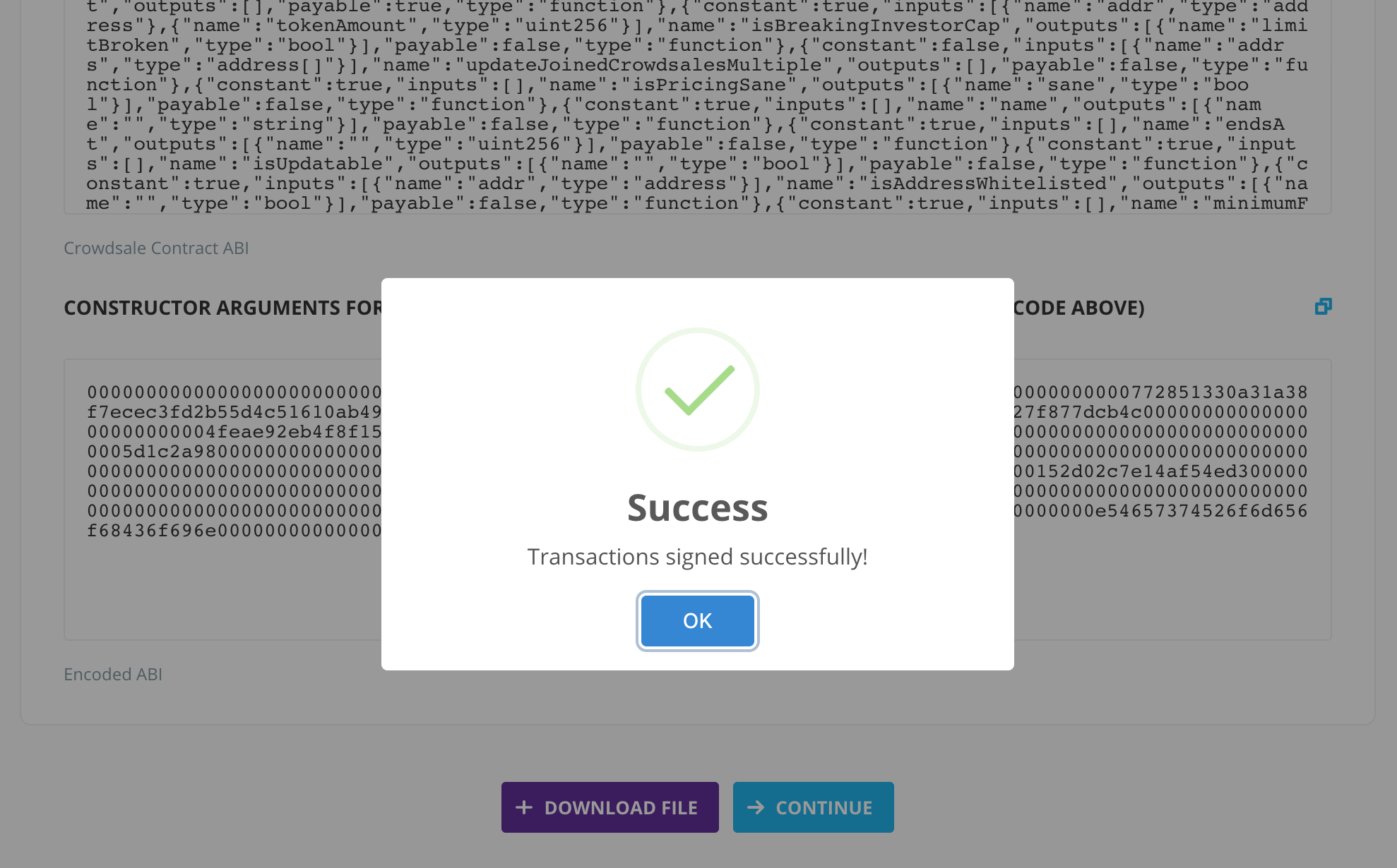OK를 누르시고 Download file을 눌러서 계약서와 소스 코드를 잘 보관합니다.
