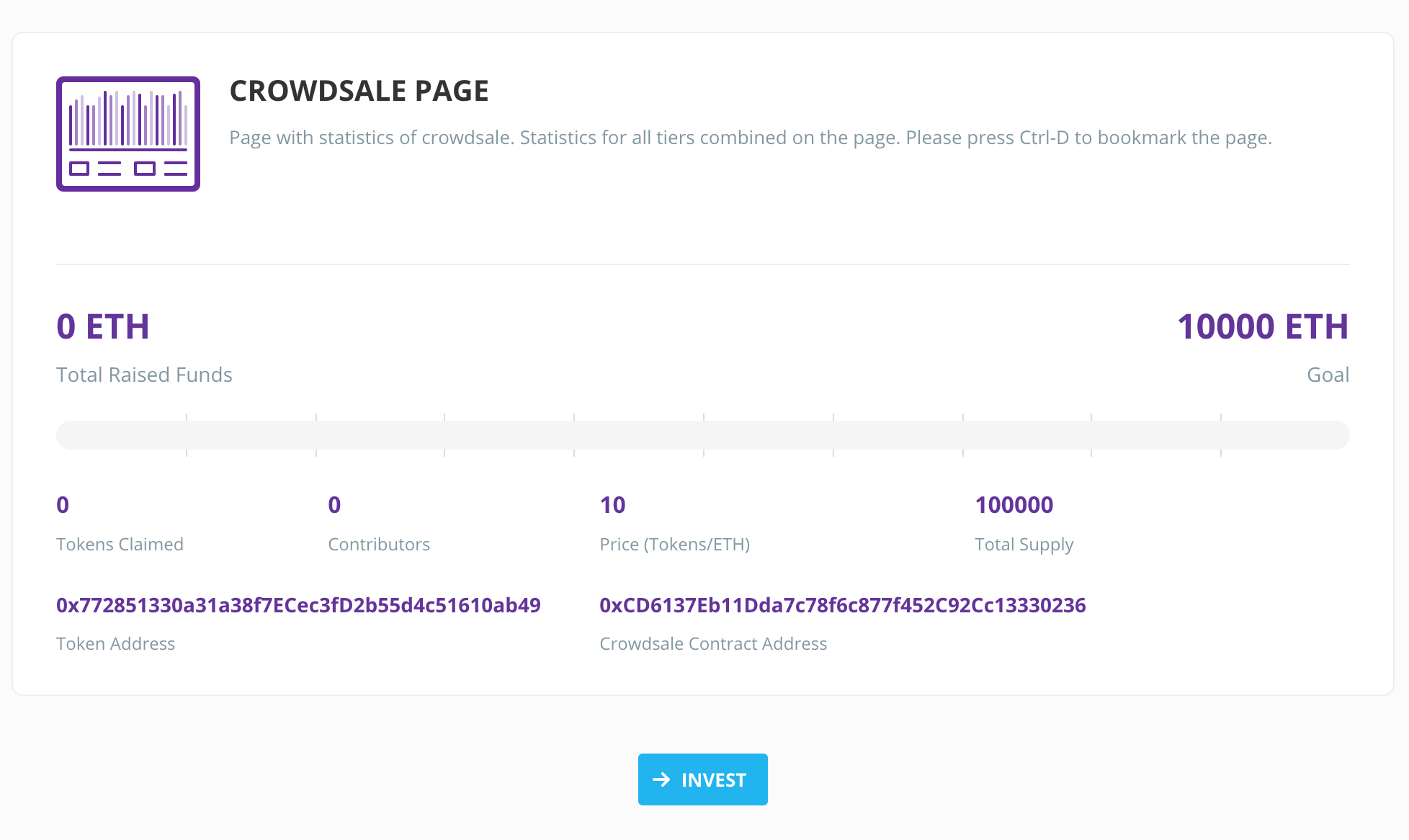 - Rate: 토큰의 판매 가격입니다. 1 ETH 당 10개의 token을 의미합니다.