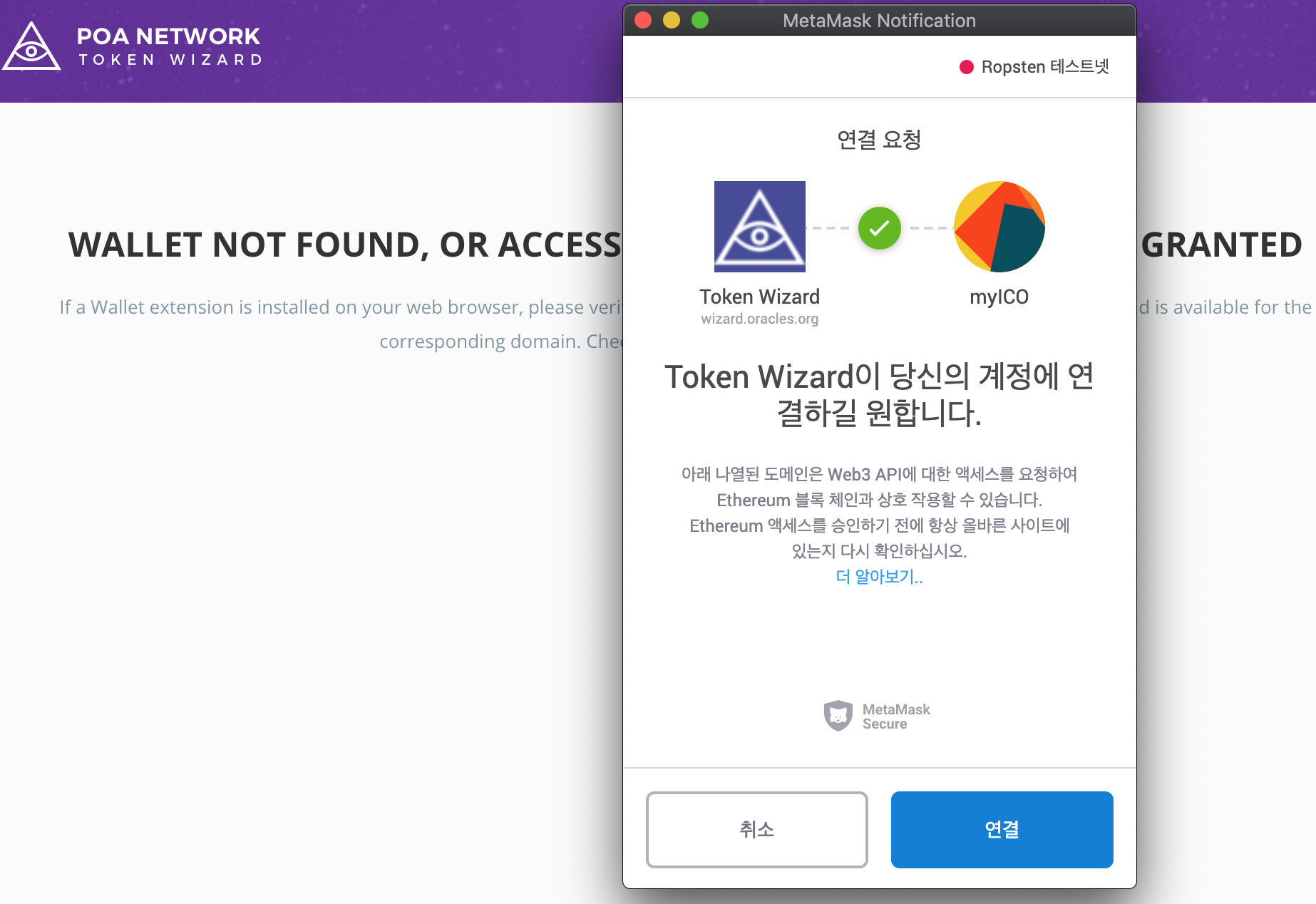 https://wizard.oracles.org/사이트에 접속해서 MetaMask 연결을 허용합니다.