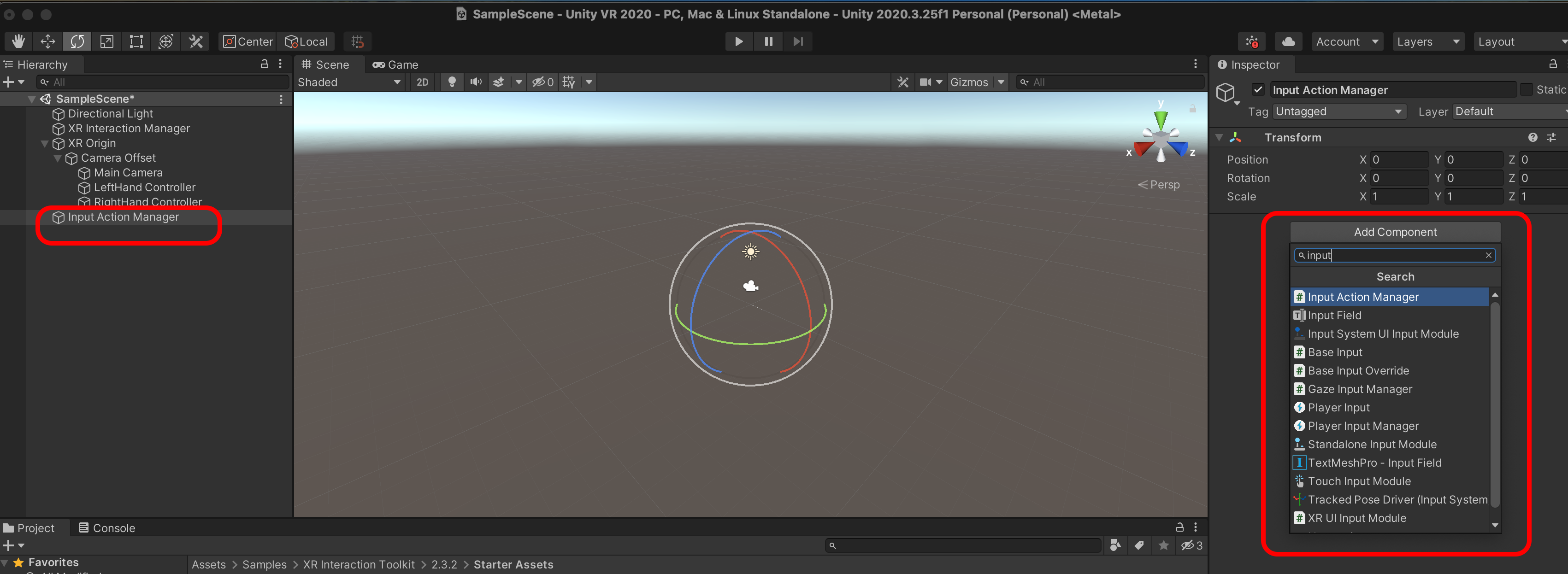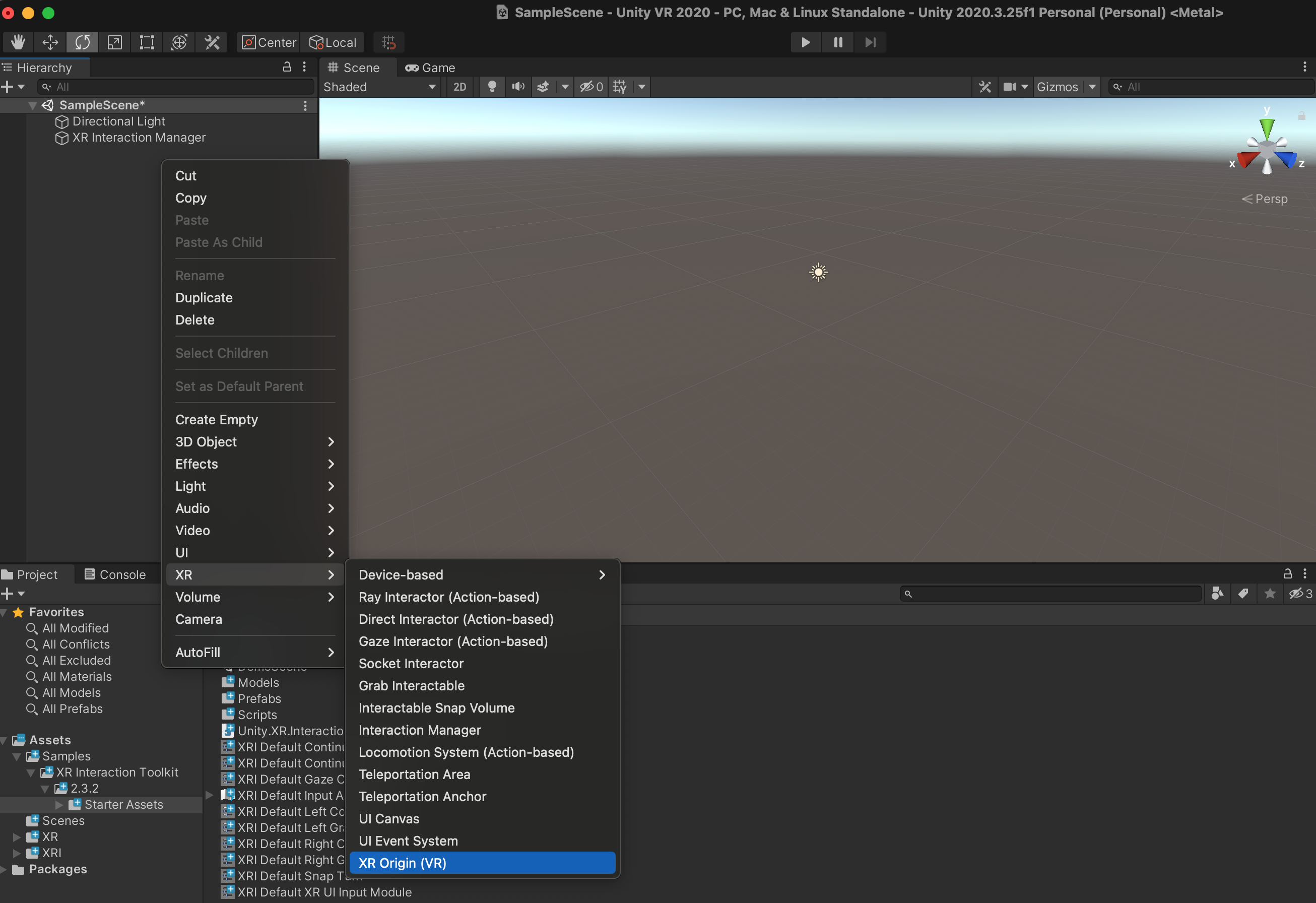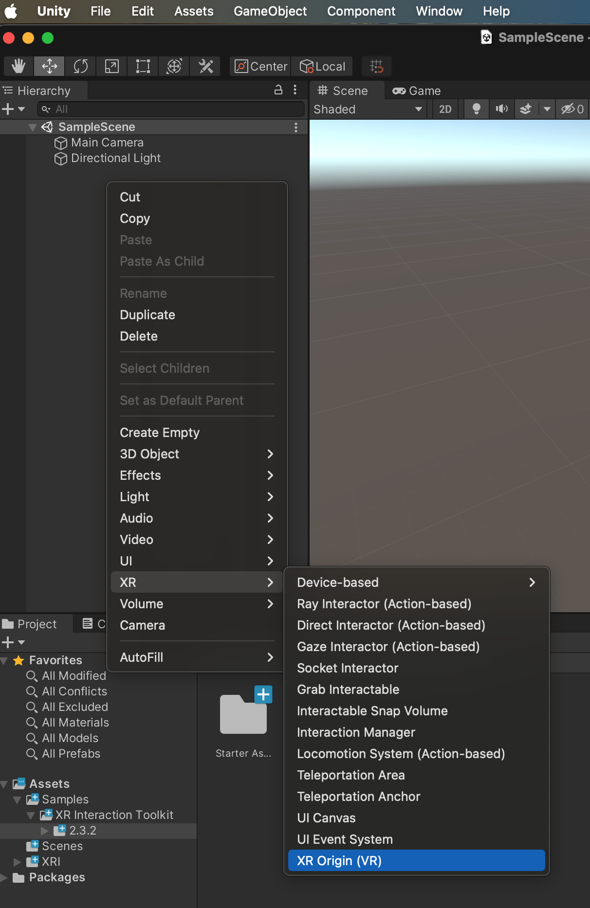 XR Interaction toolkit을 설치하고 재구동 합니다.