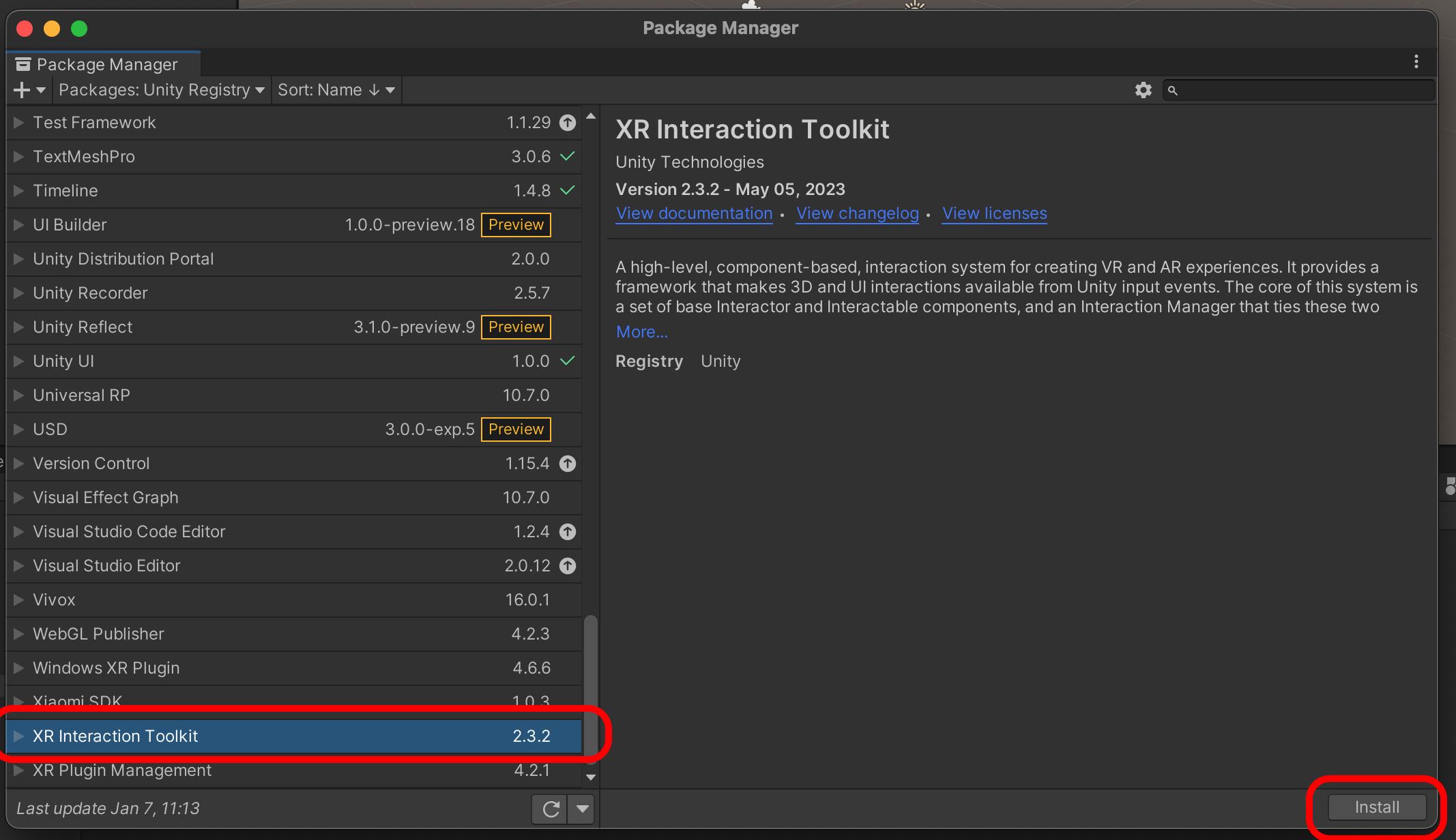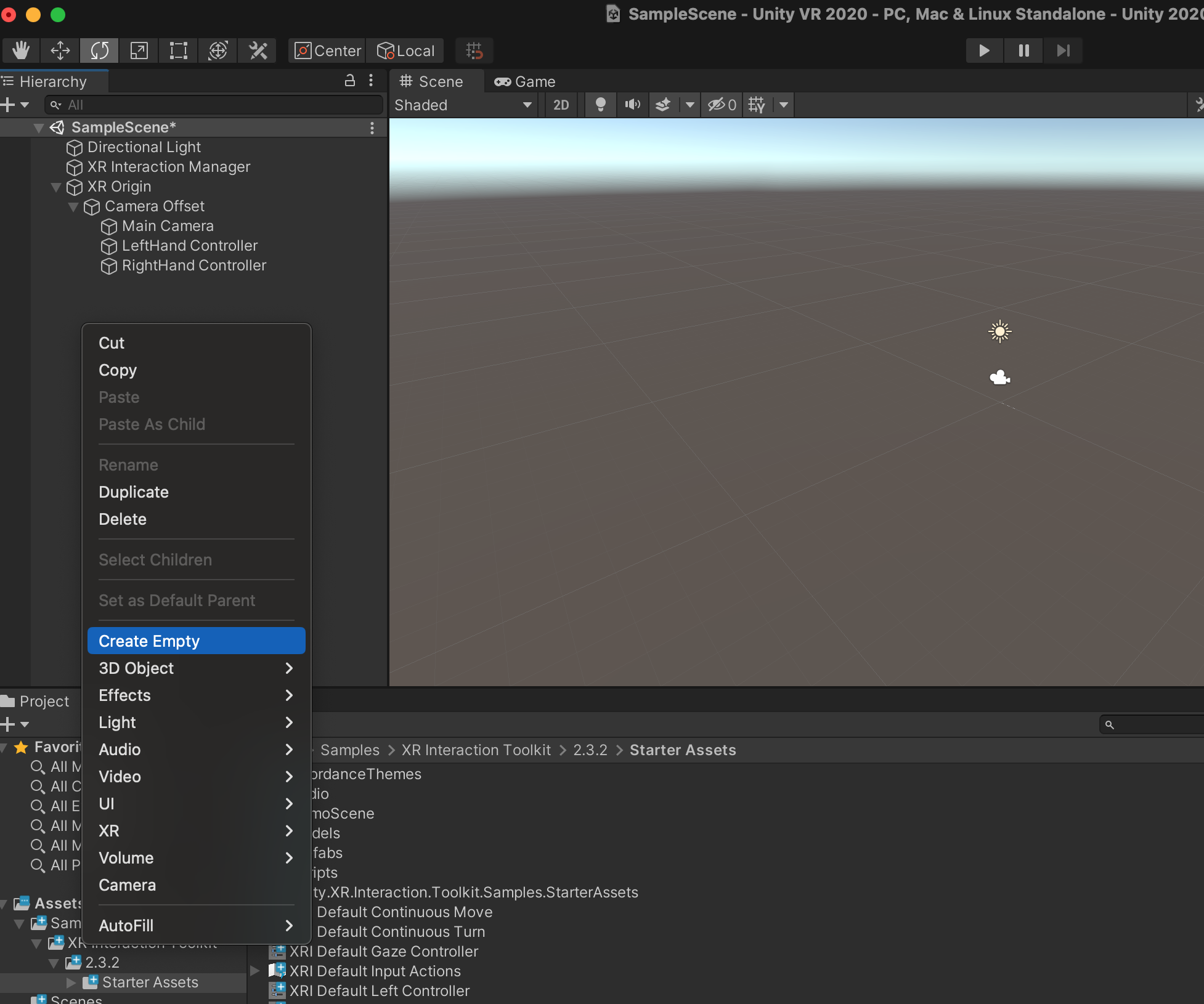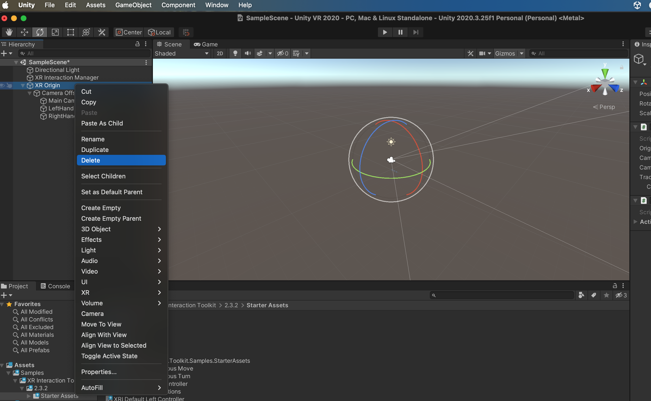 XR Interaction toolkit을 설치하고 재구동 합니다.