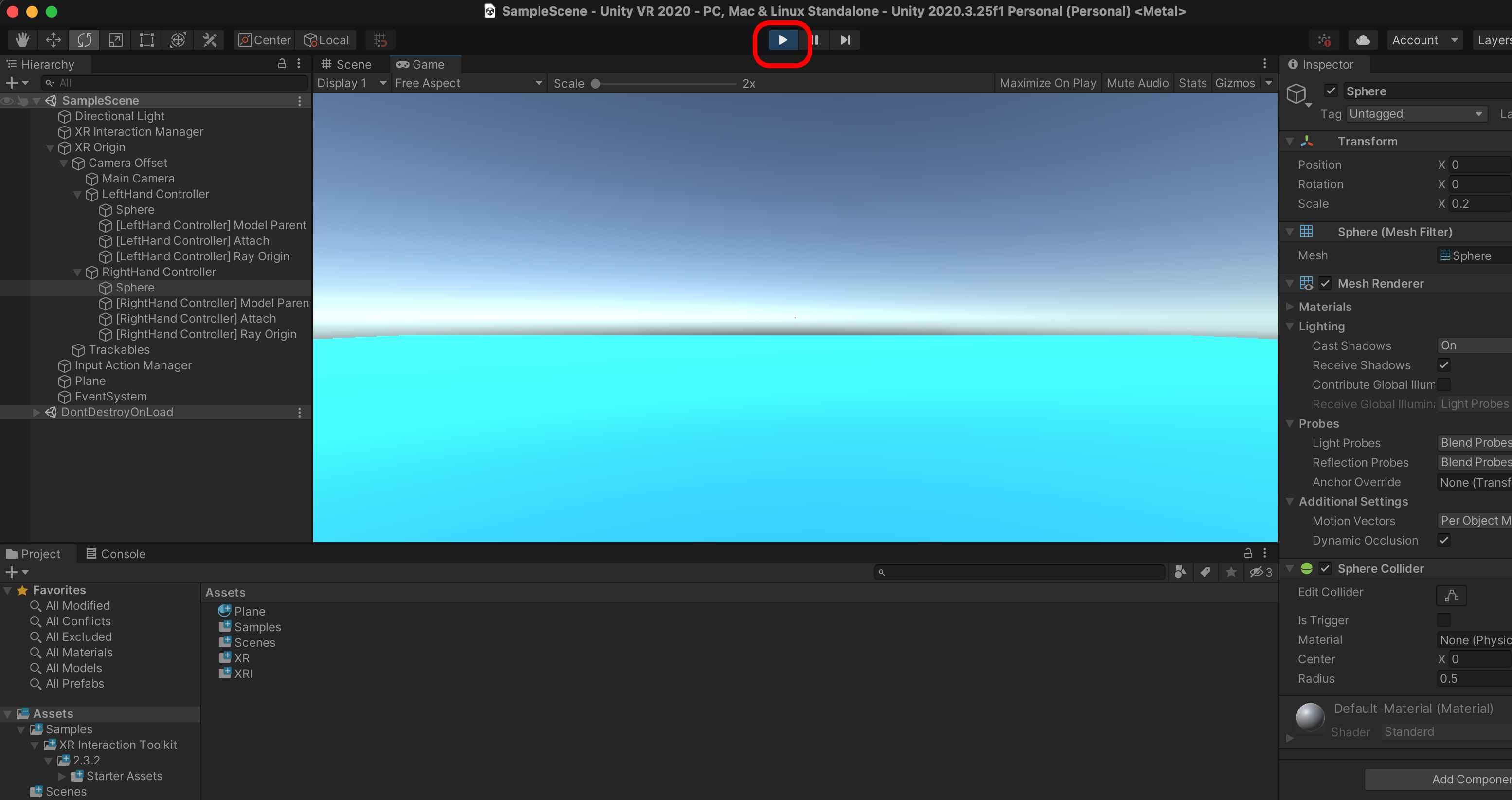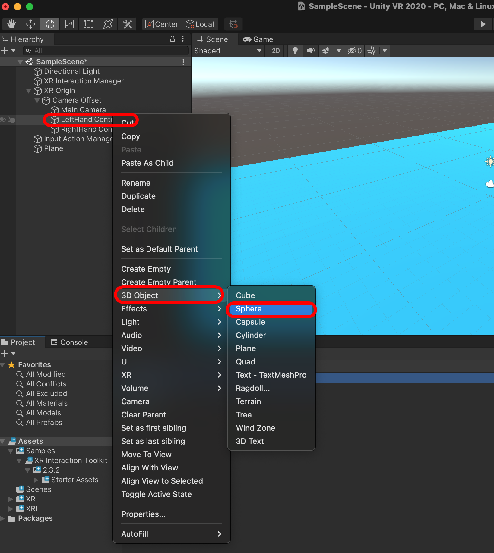 LeftHand의 Sphere를 RightHand Controller에도 복사/붙여넣기 합니다.