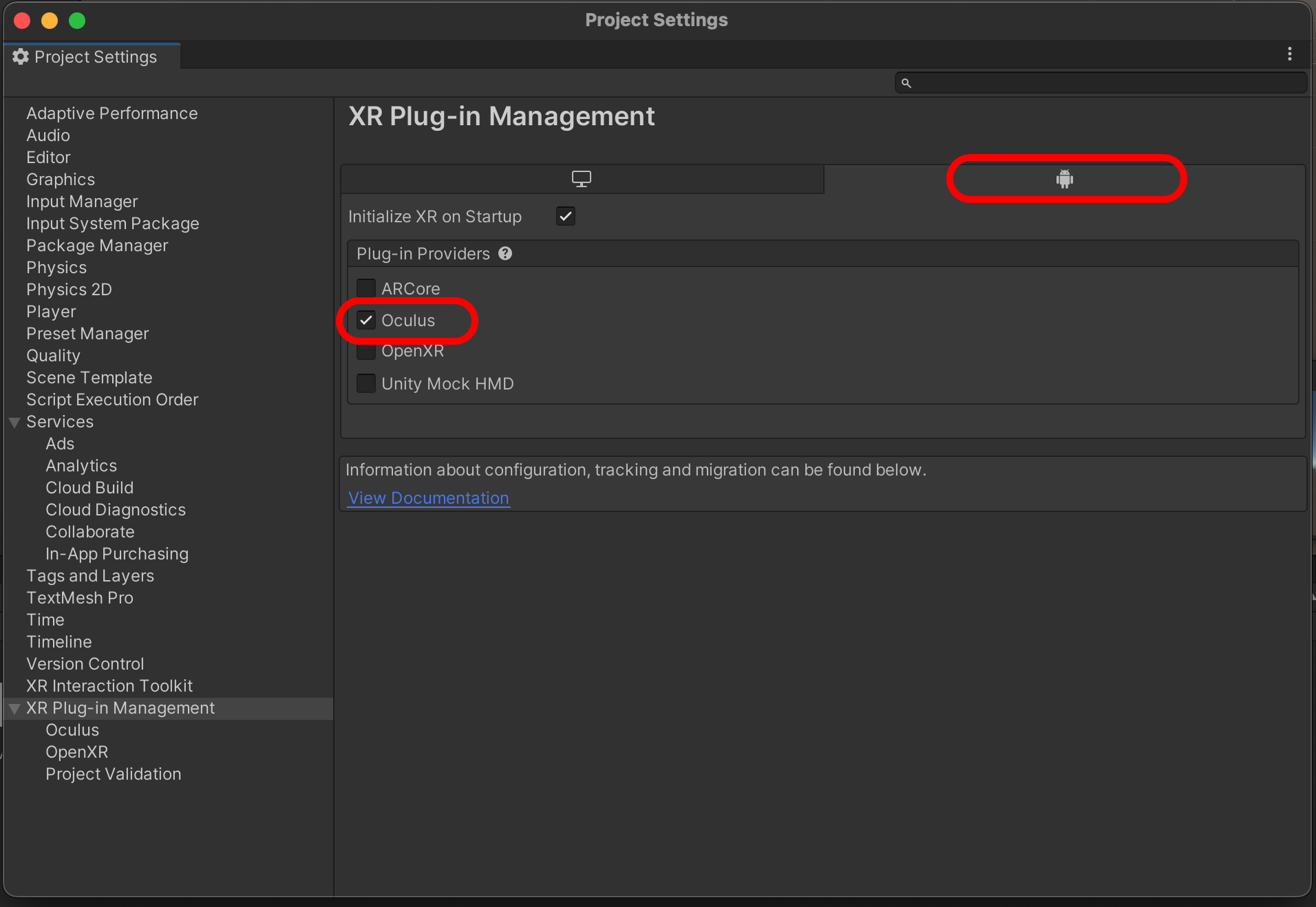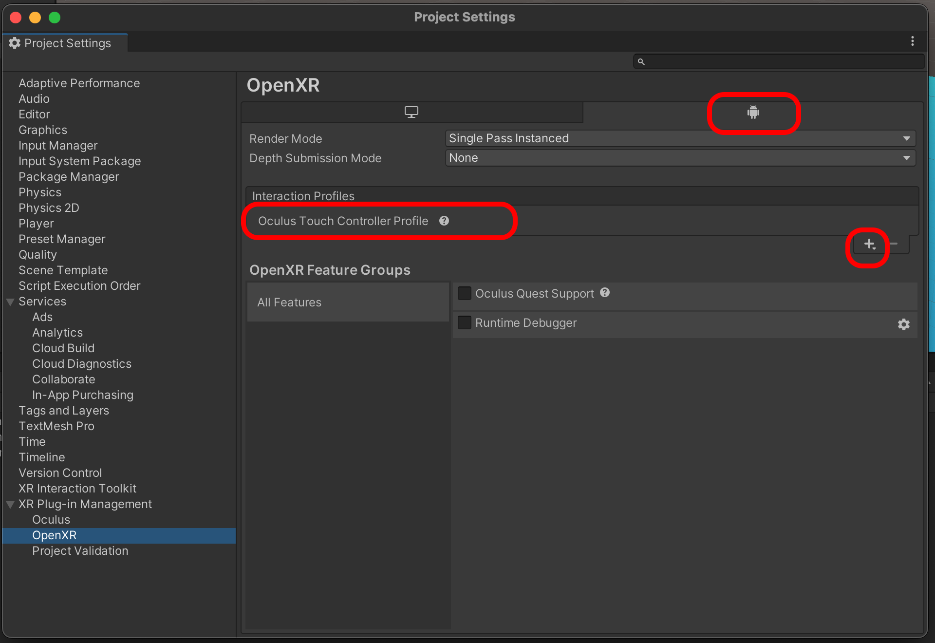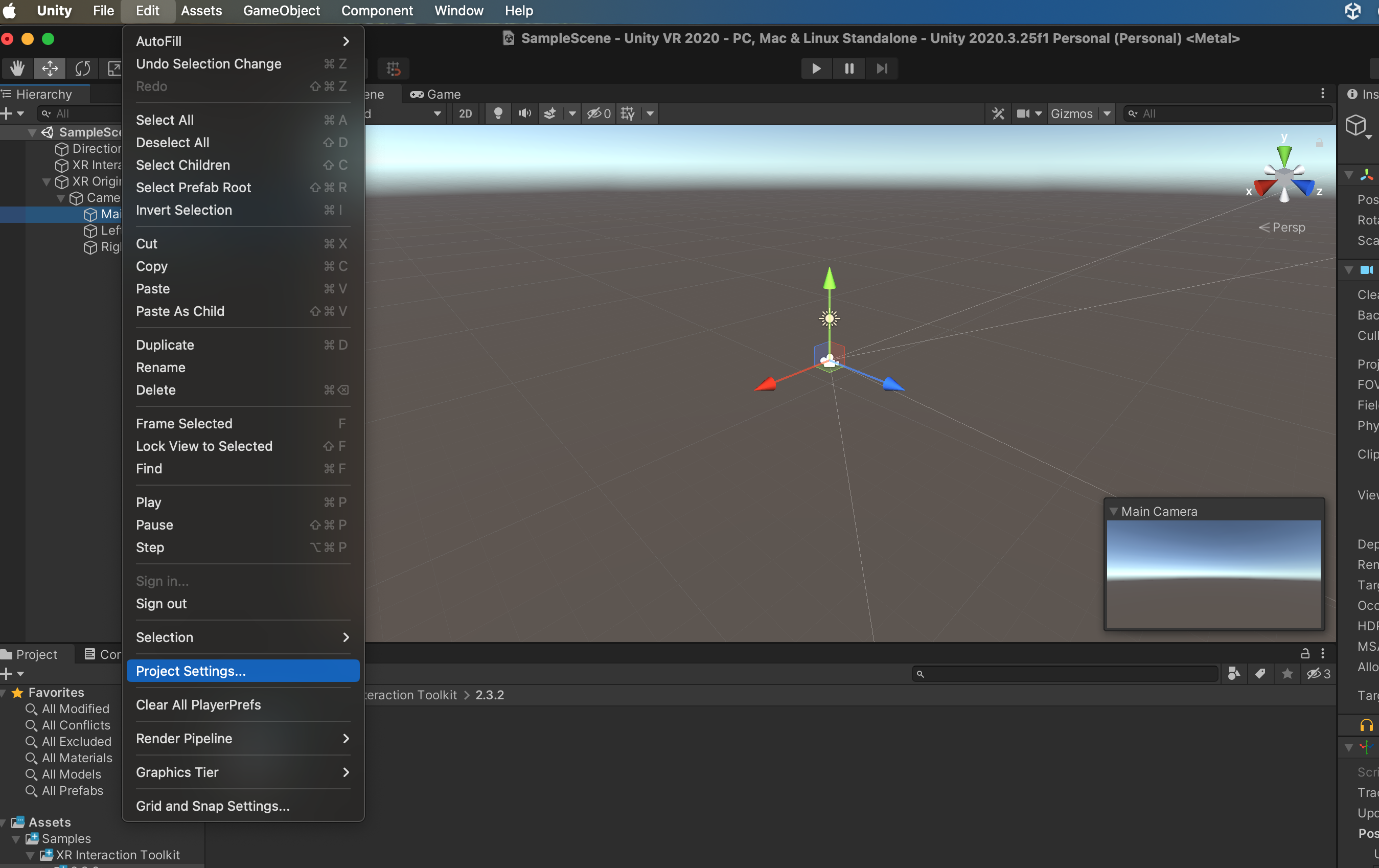 Edit > Project Settings > XR Plug-in Management > OpenXR에서