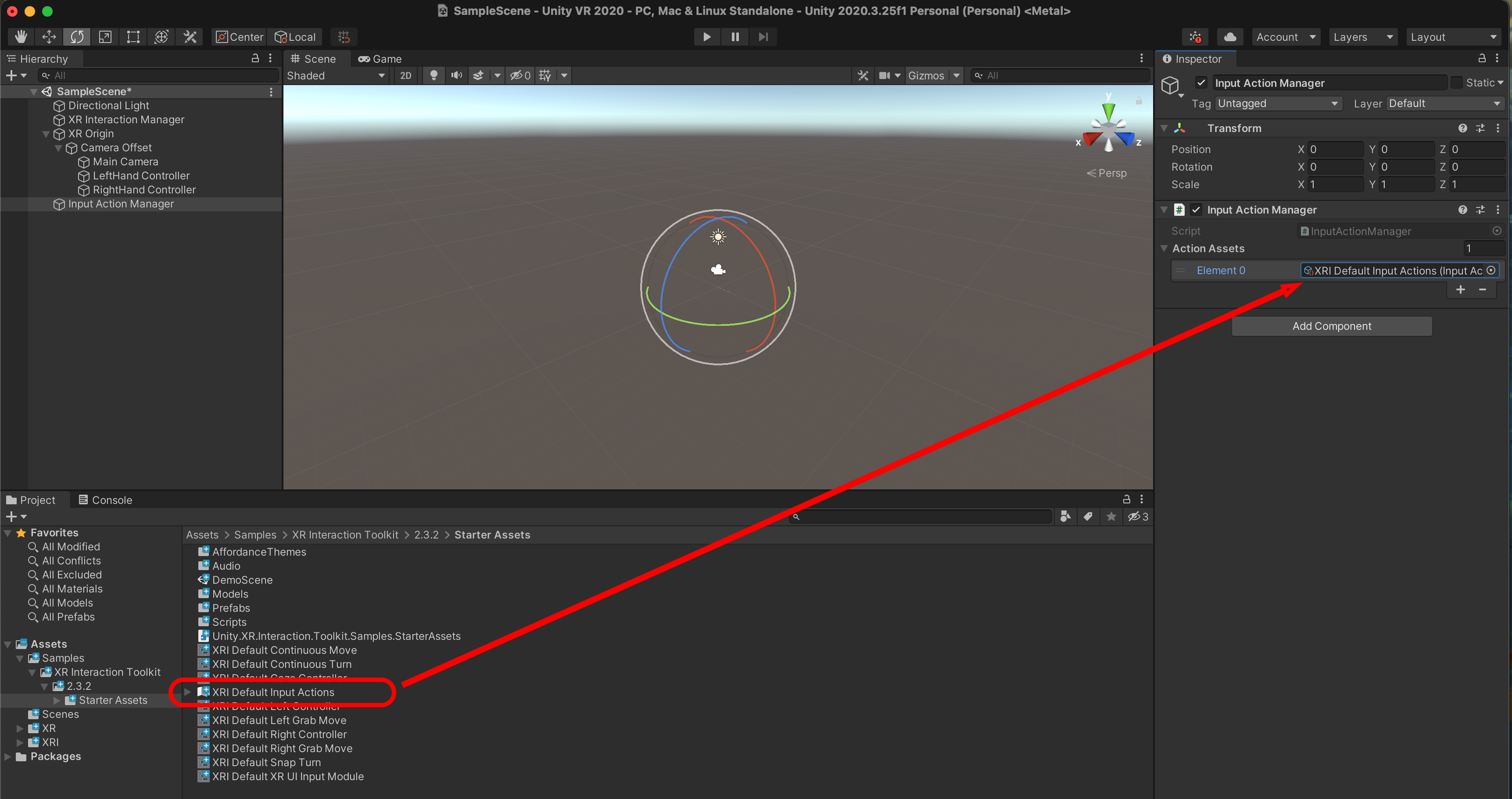 XRI Default Input Action을 드래그 해서 넣어줍니다.