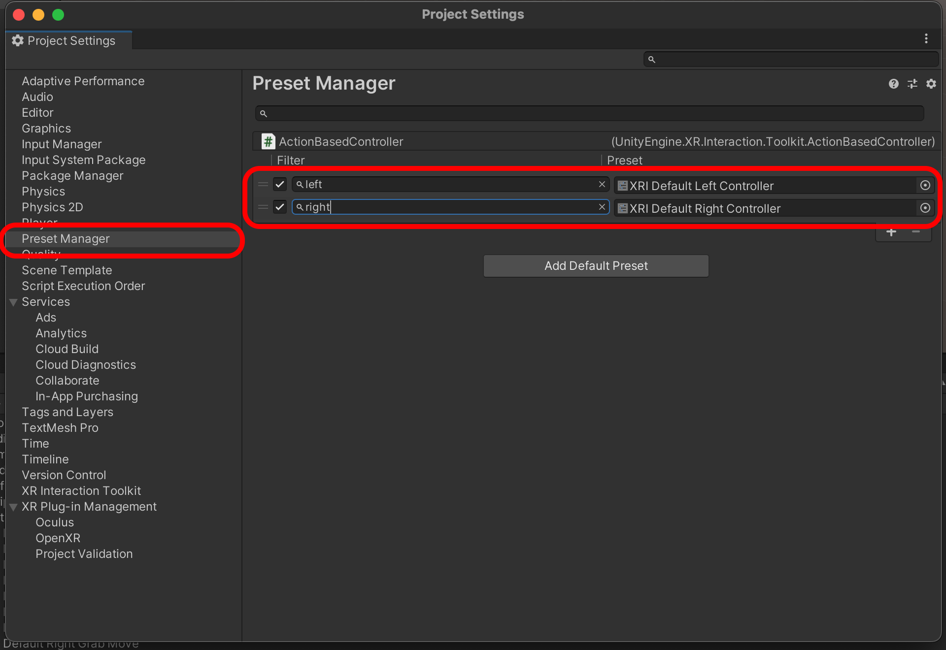 Edit > Project Settings에서 Preset Manager에서 이름을 넣어줍니다.