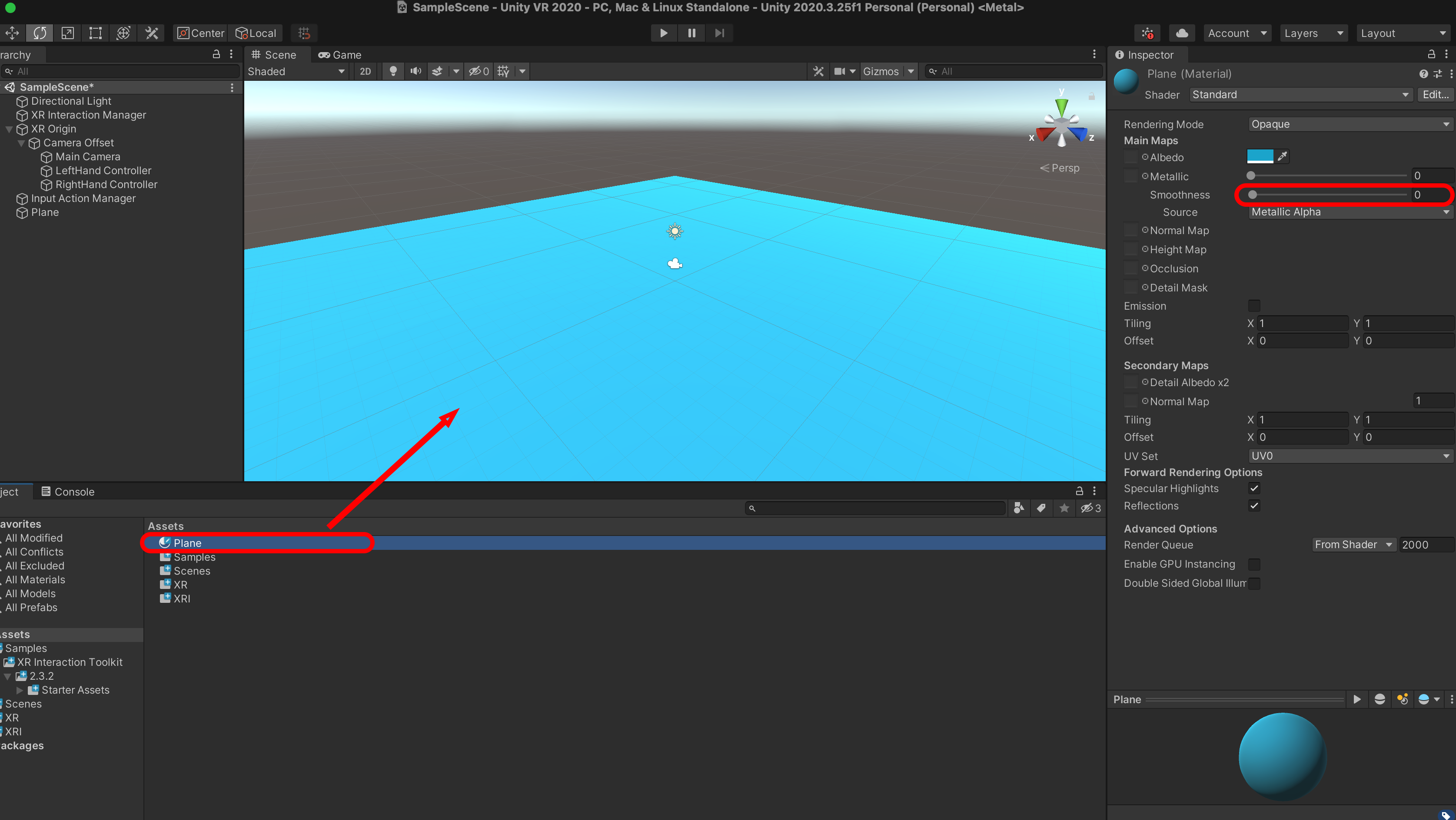 Smoothness는 0으로 변경하고 바닥에 적용합니다.