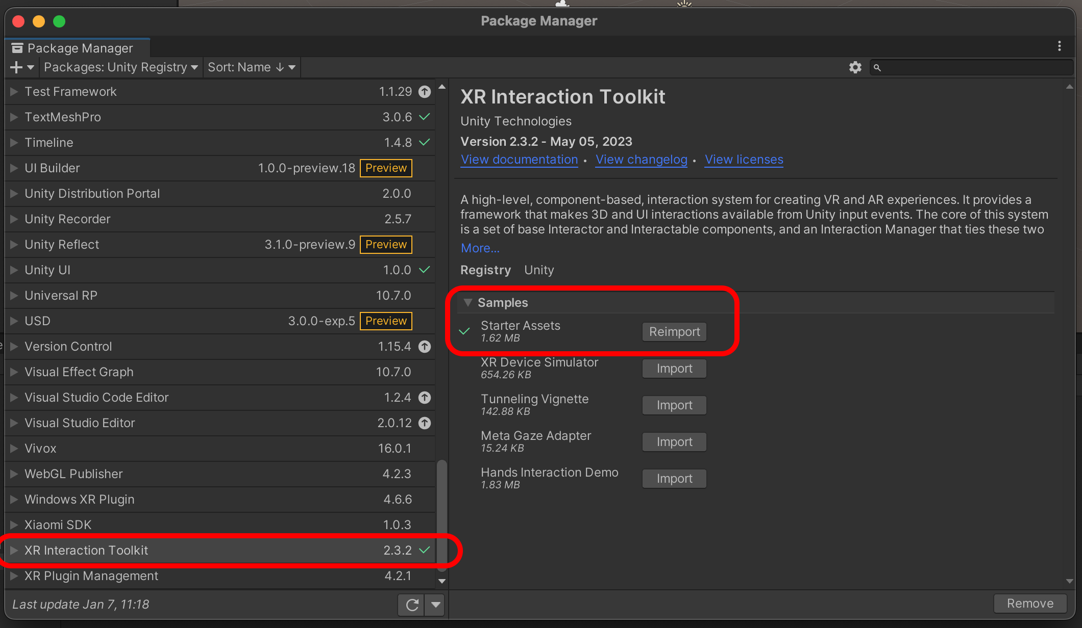 재구동후 다시 Package Manager > XR Interaction Toolkit > Sample > Starter Assets를 Import 합니다.