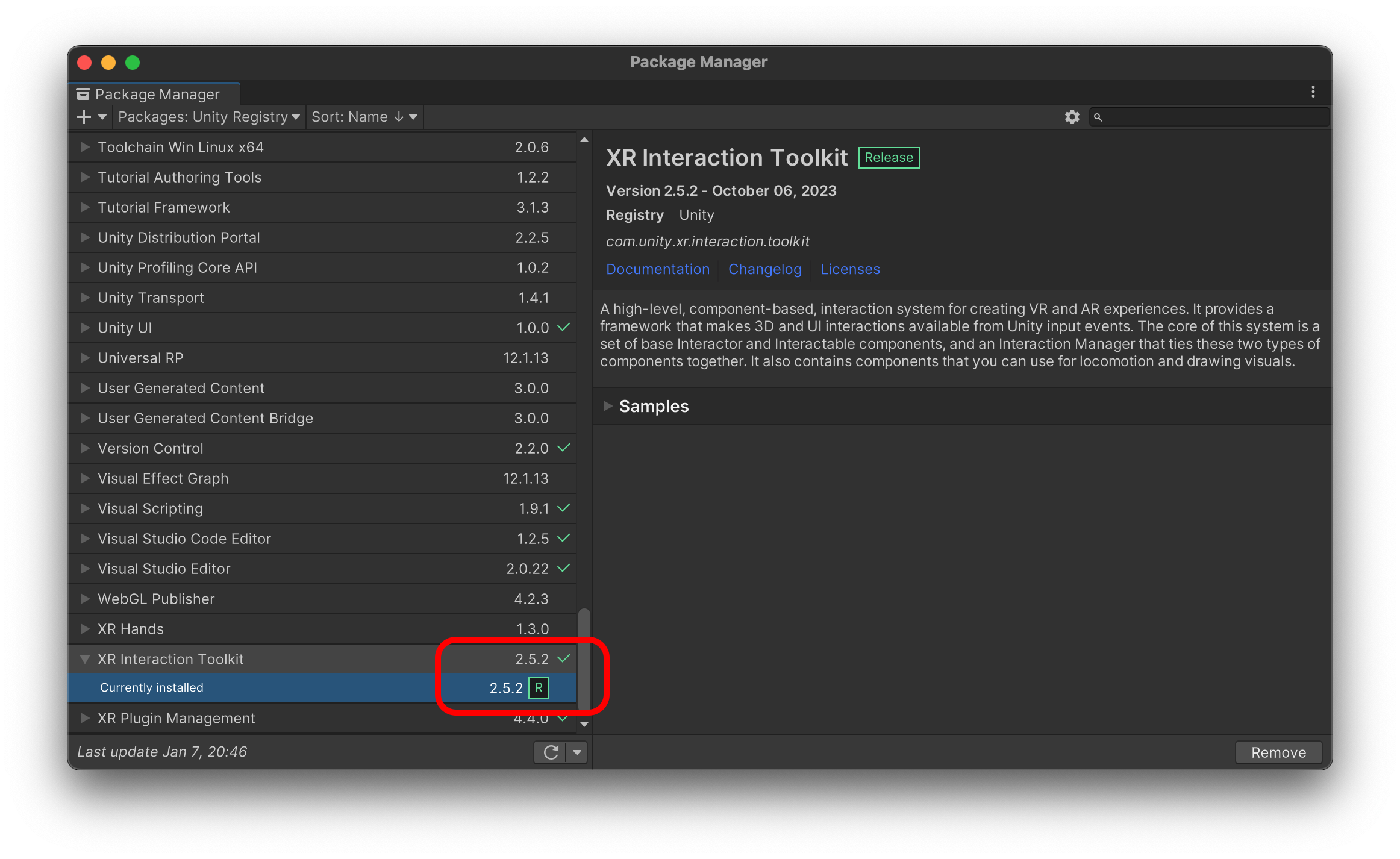 XR Interaction Toolkit을 설치합니다.