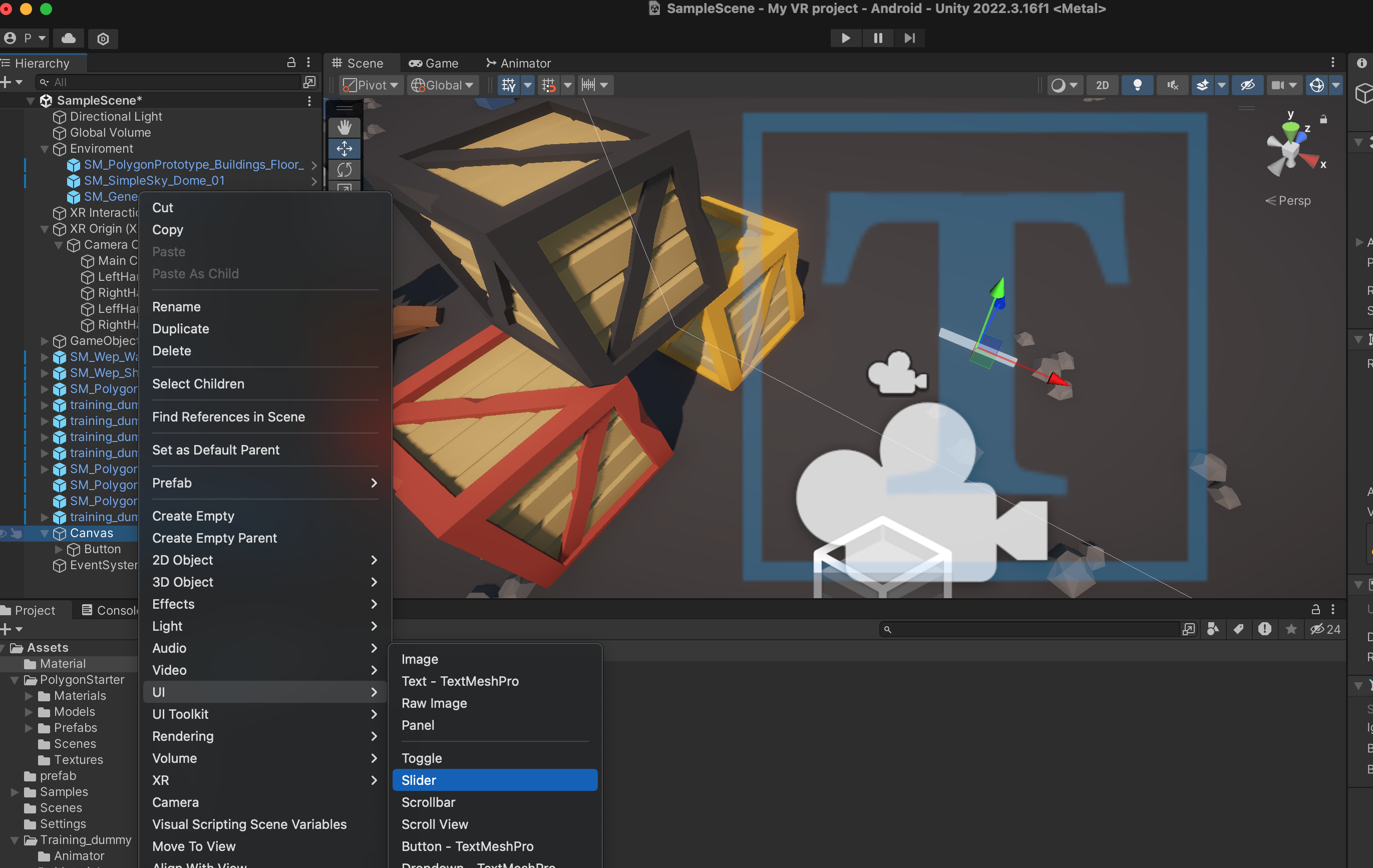 XR Origin에 Main Camera 가 있기 때문에 Scene의 Main Camera는 삭제합니다.