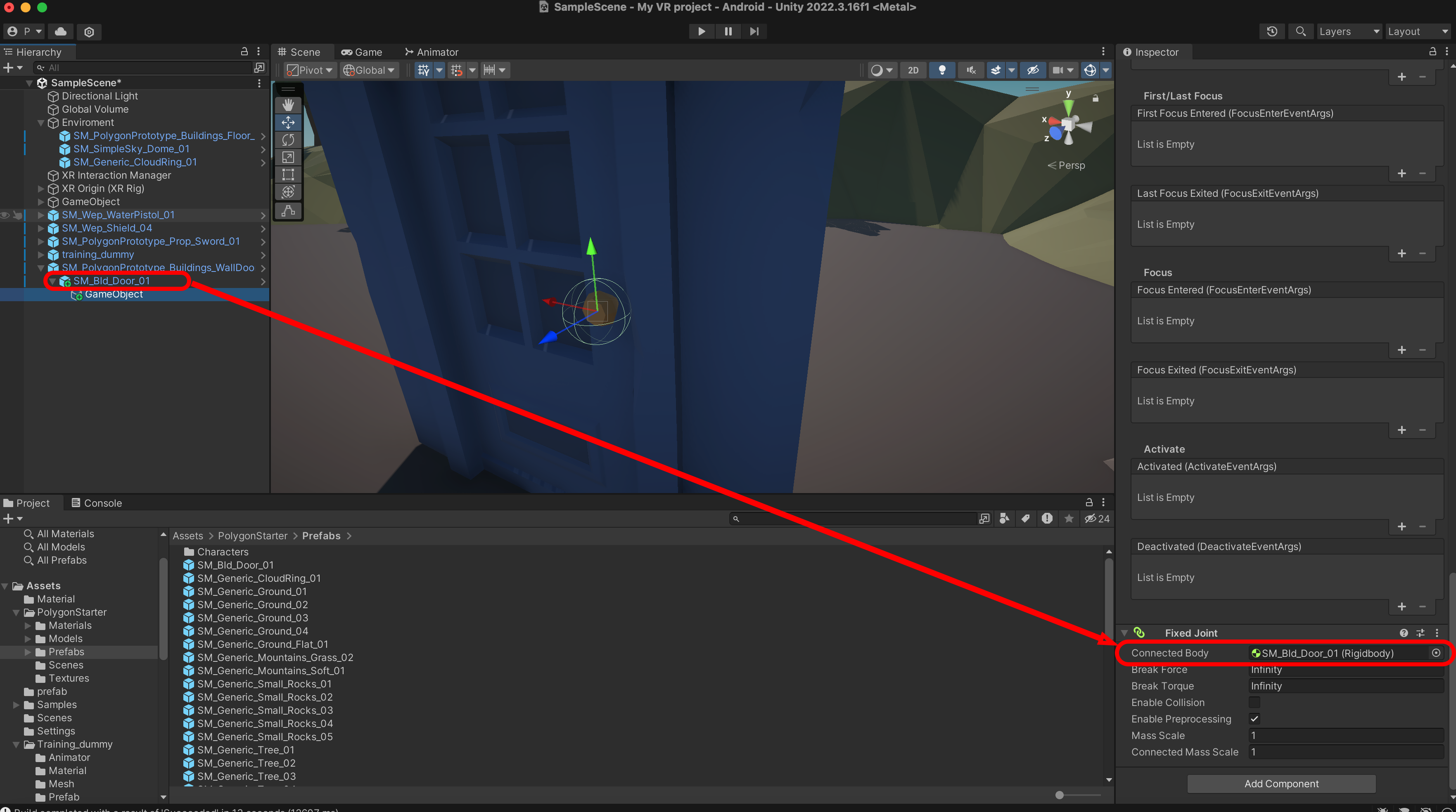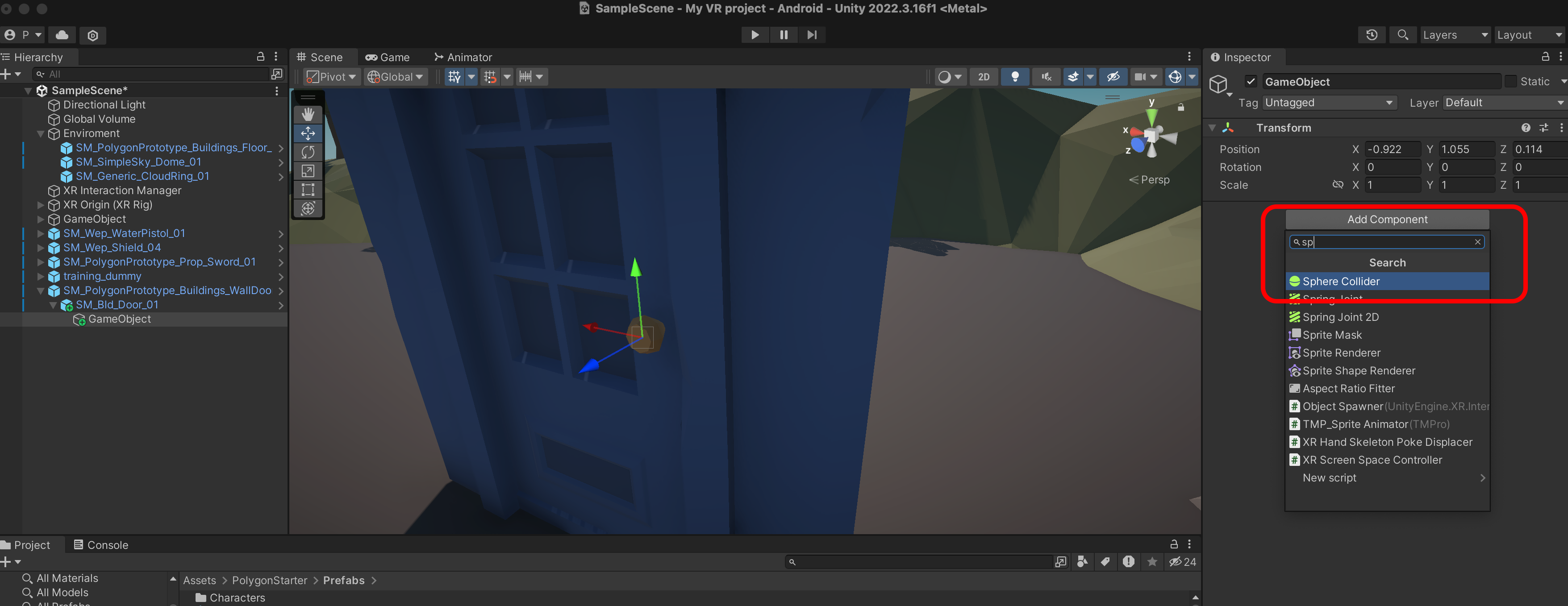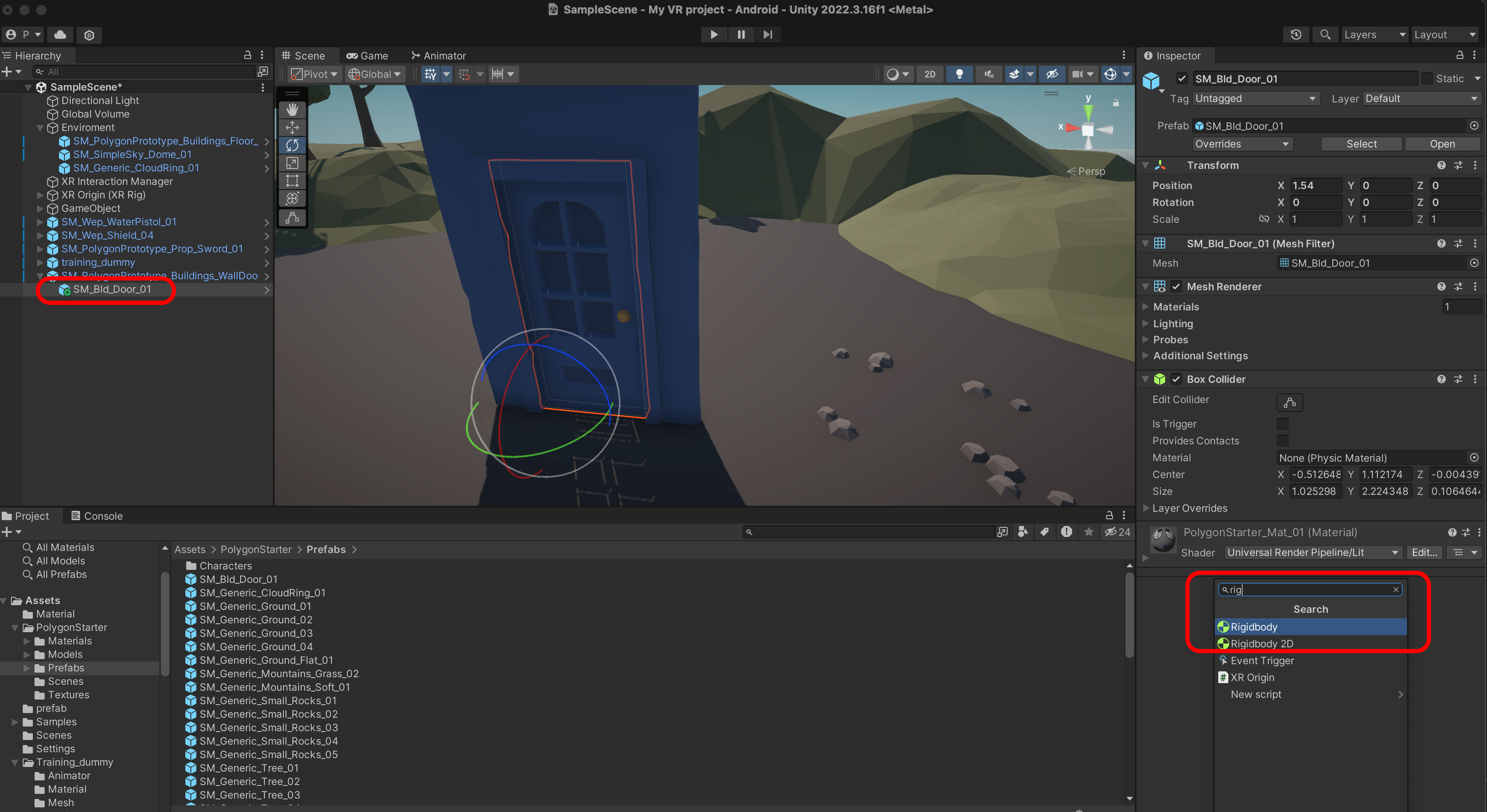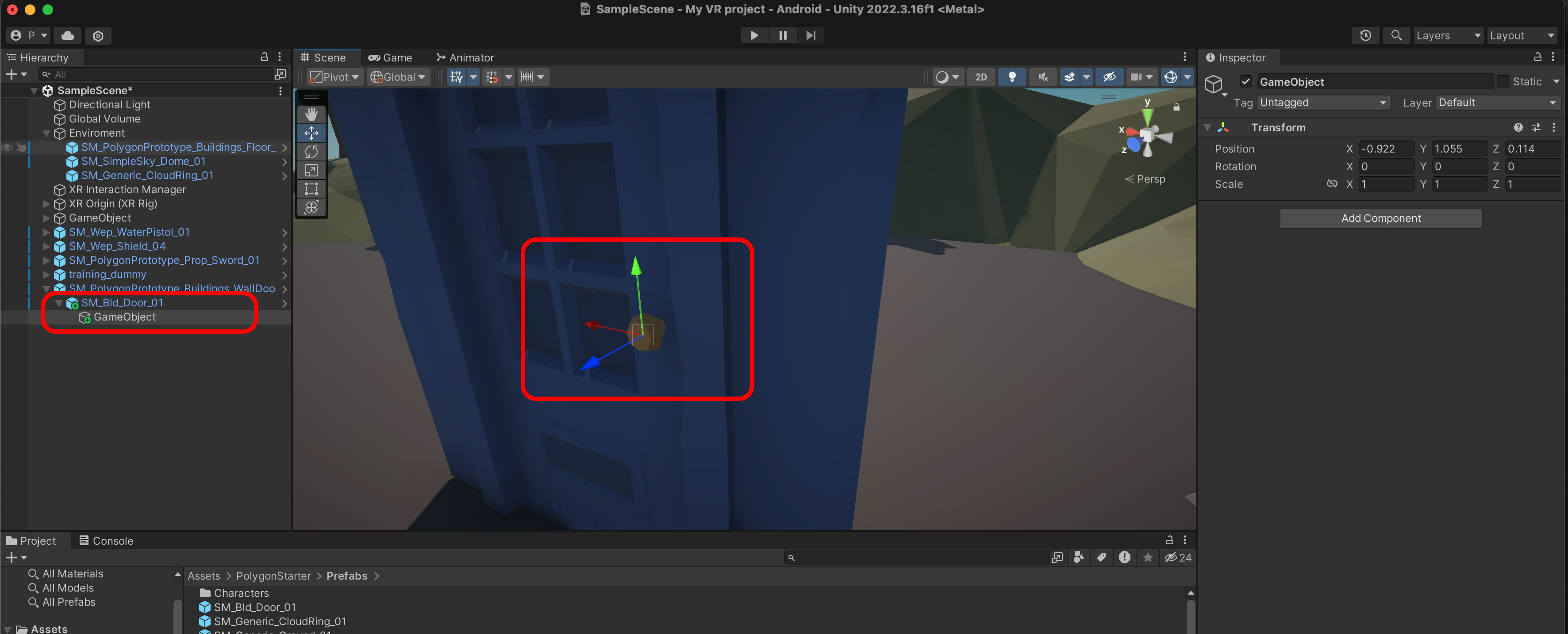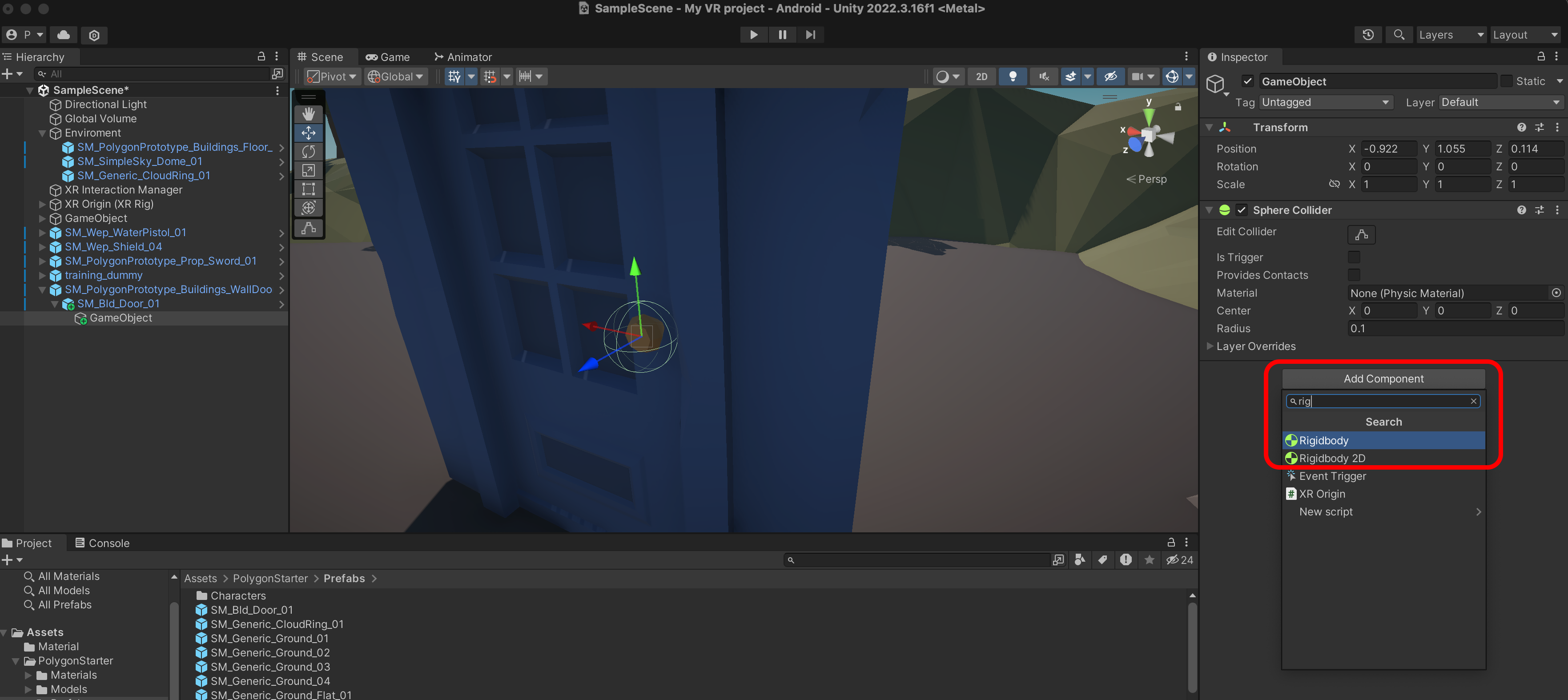SM_PolygonPrototype_Buildings_Floor_5x5_01P를 Scene에 추가하고 Transform을 Reset 합니다.
