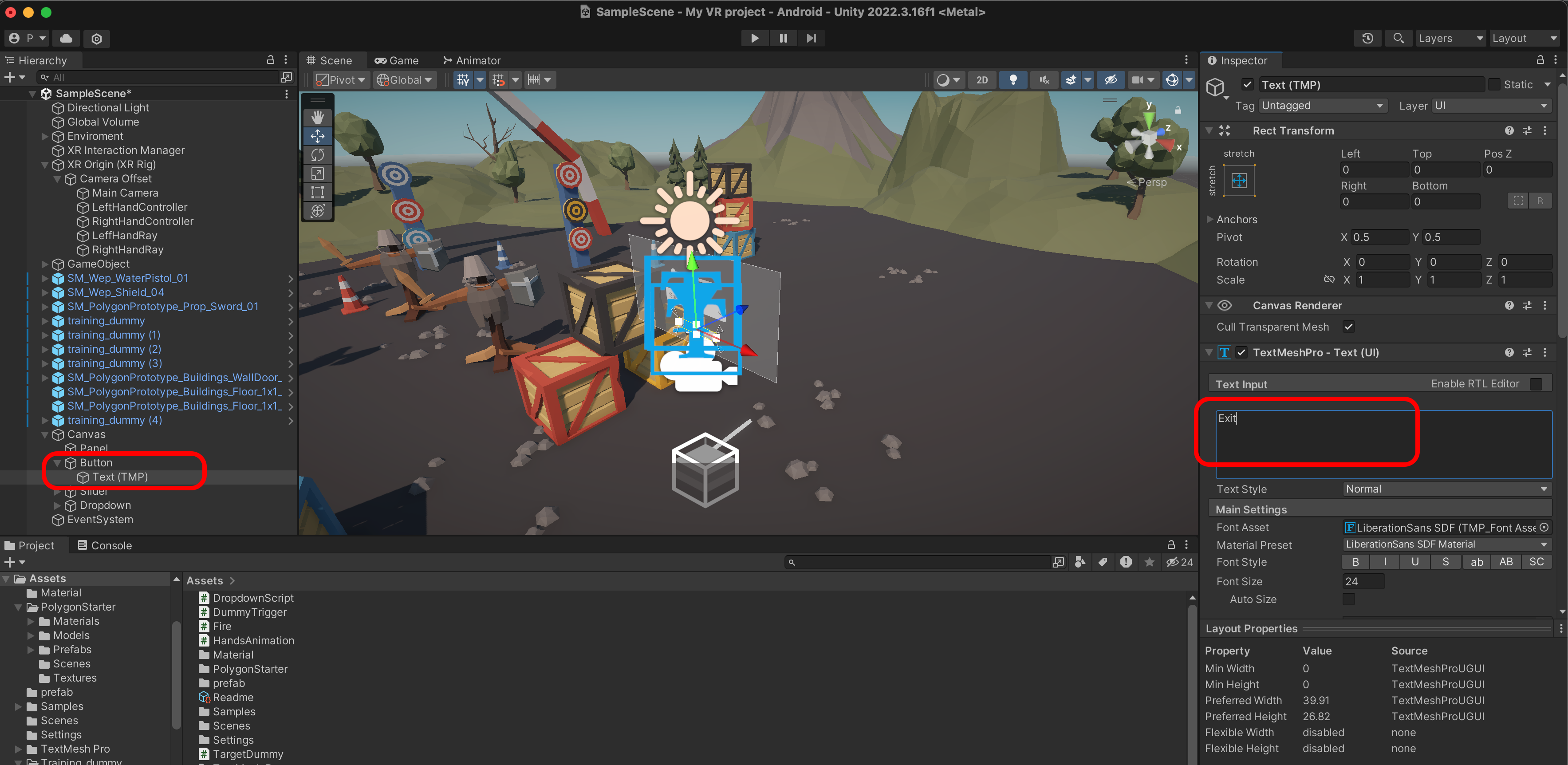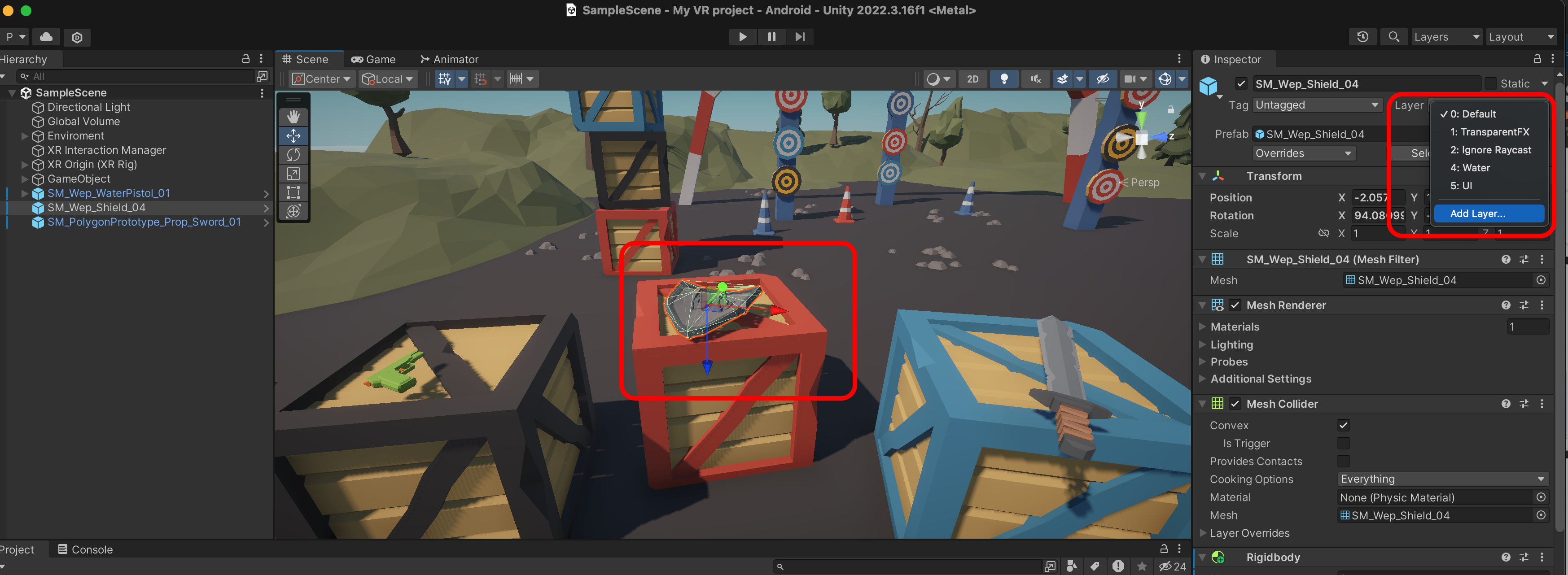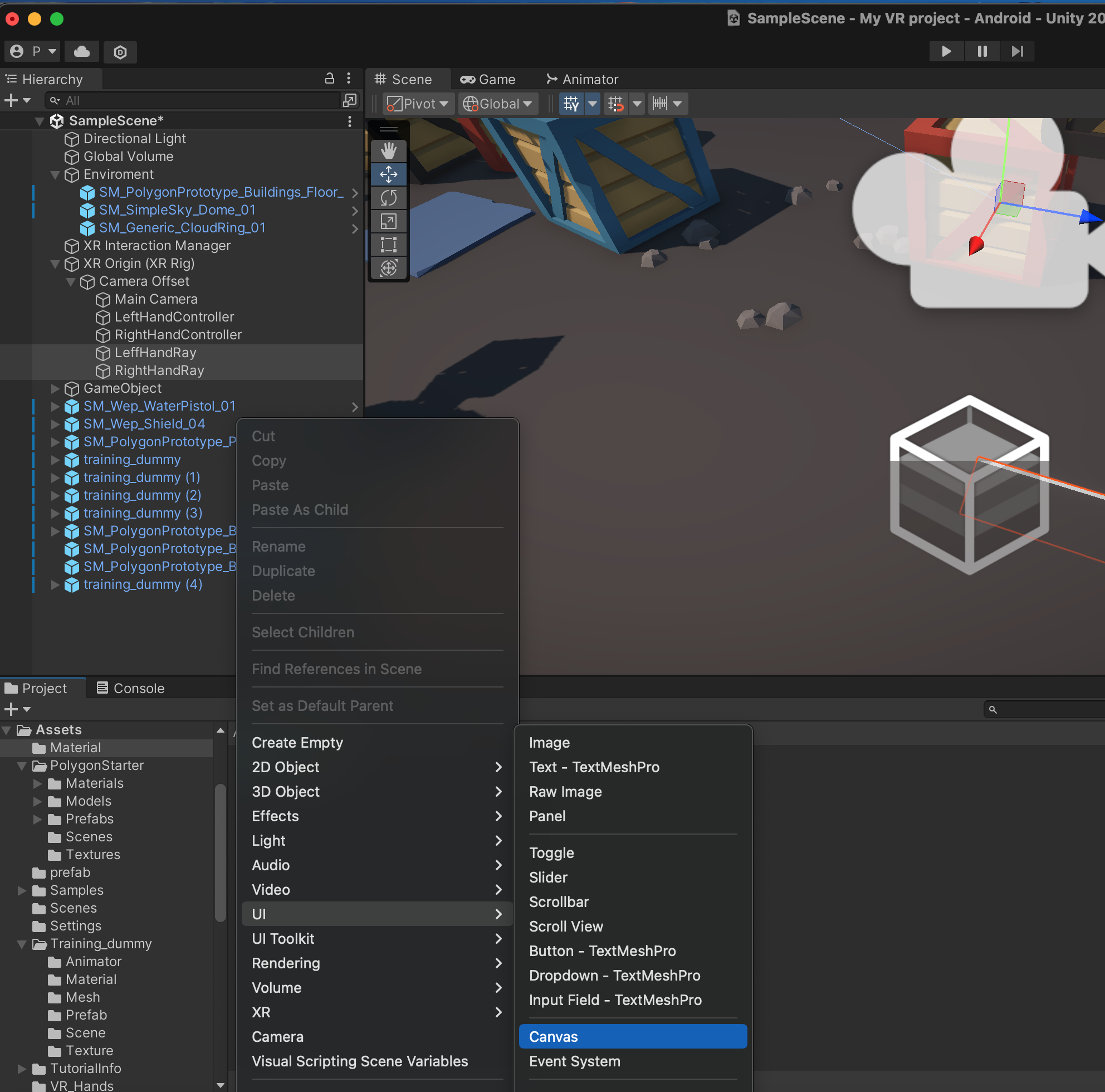 XR Ray Interactor에서 Raycase Mask를 UI만 설정합니다.