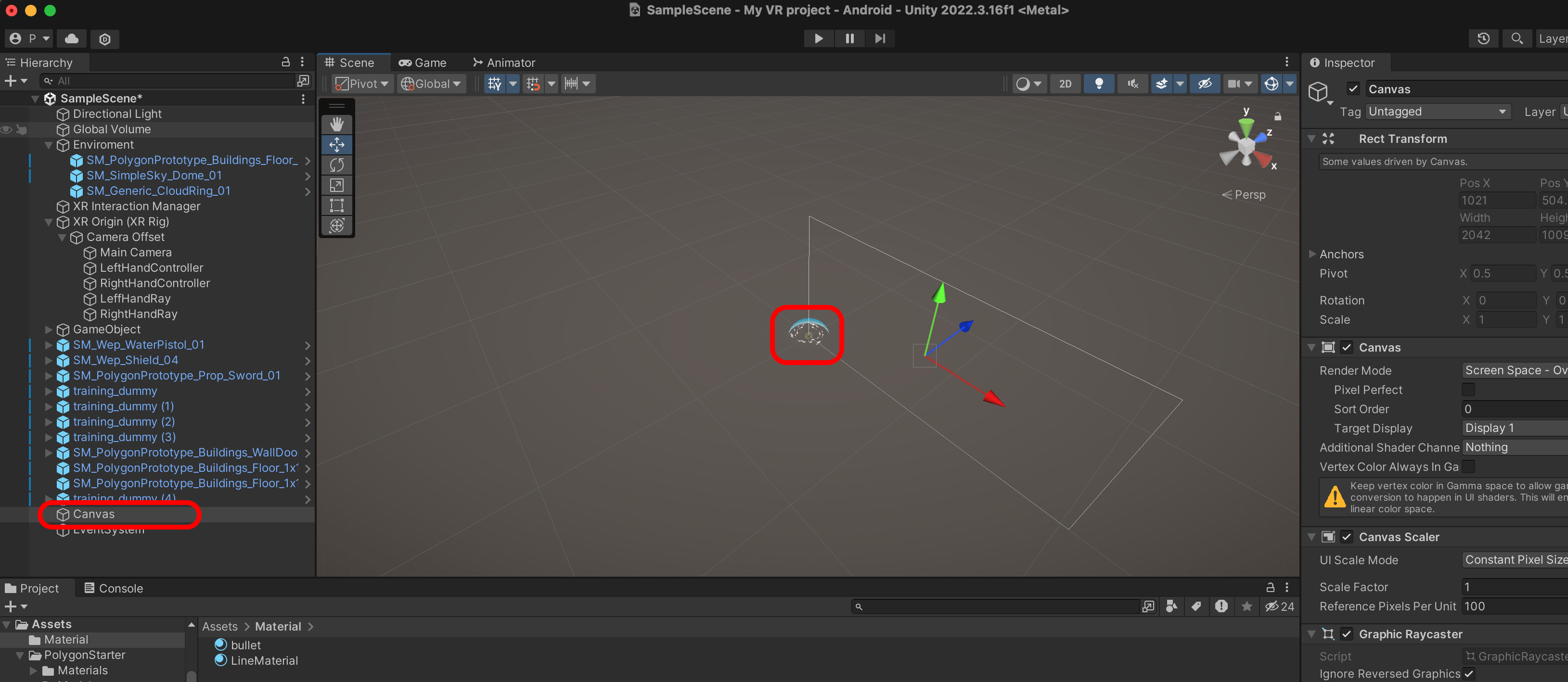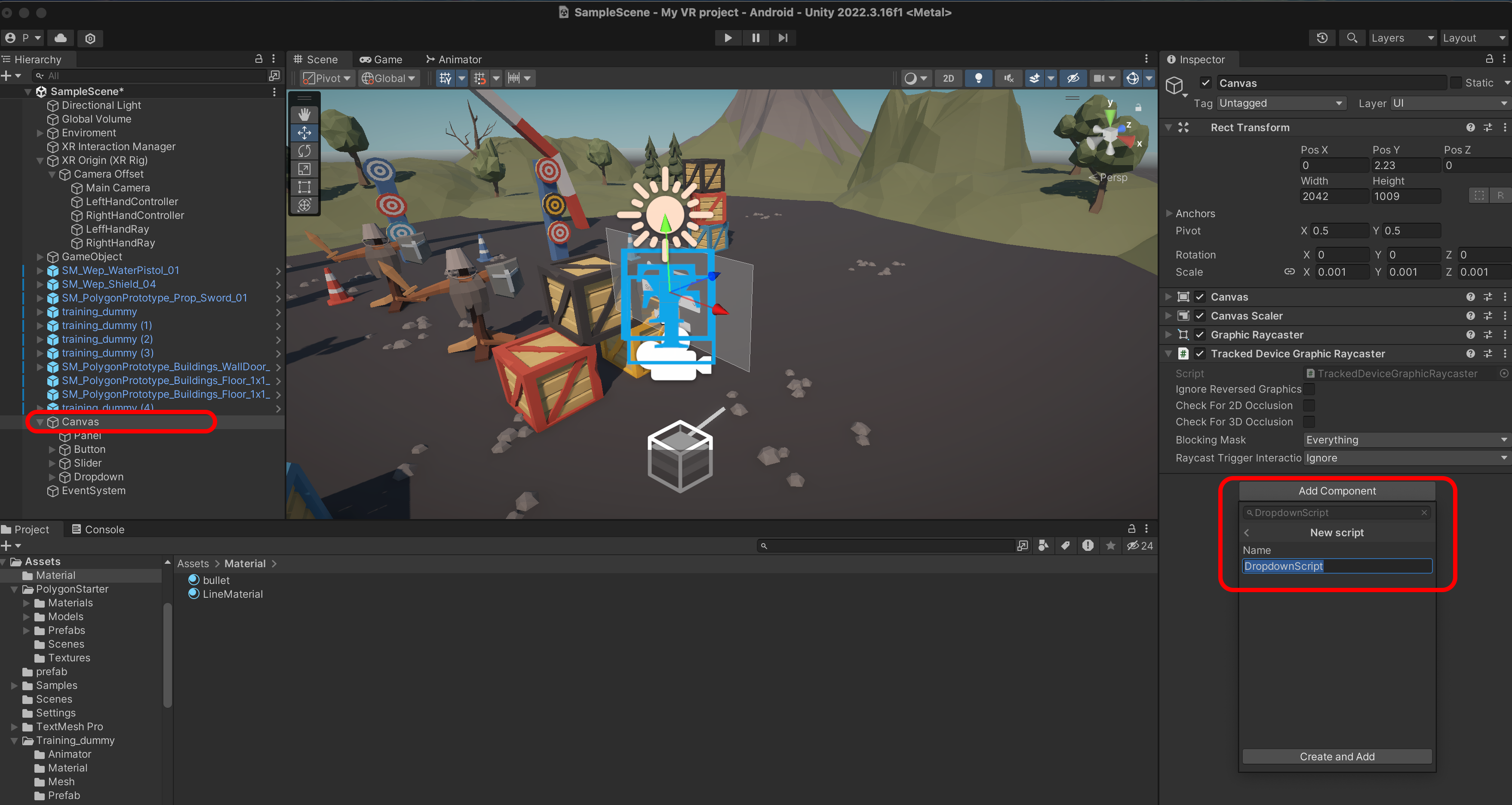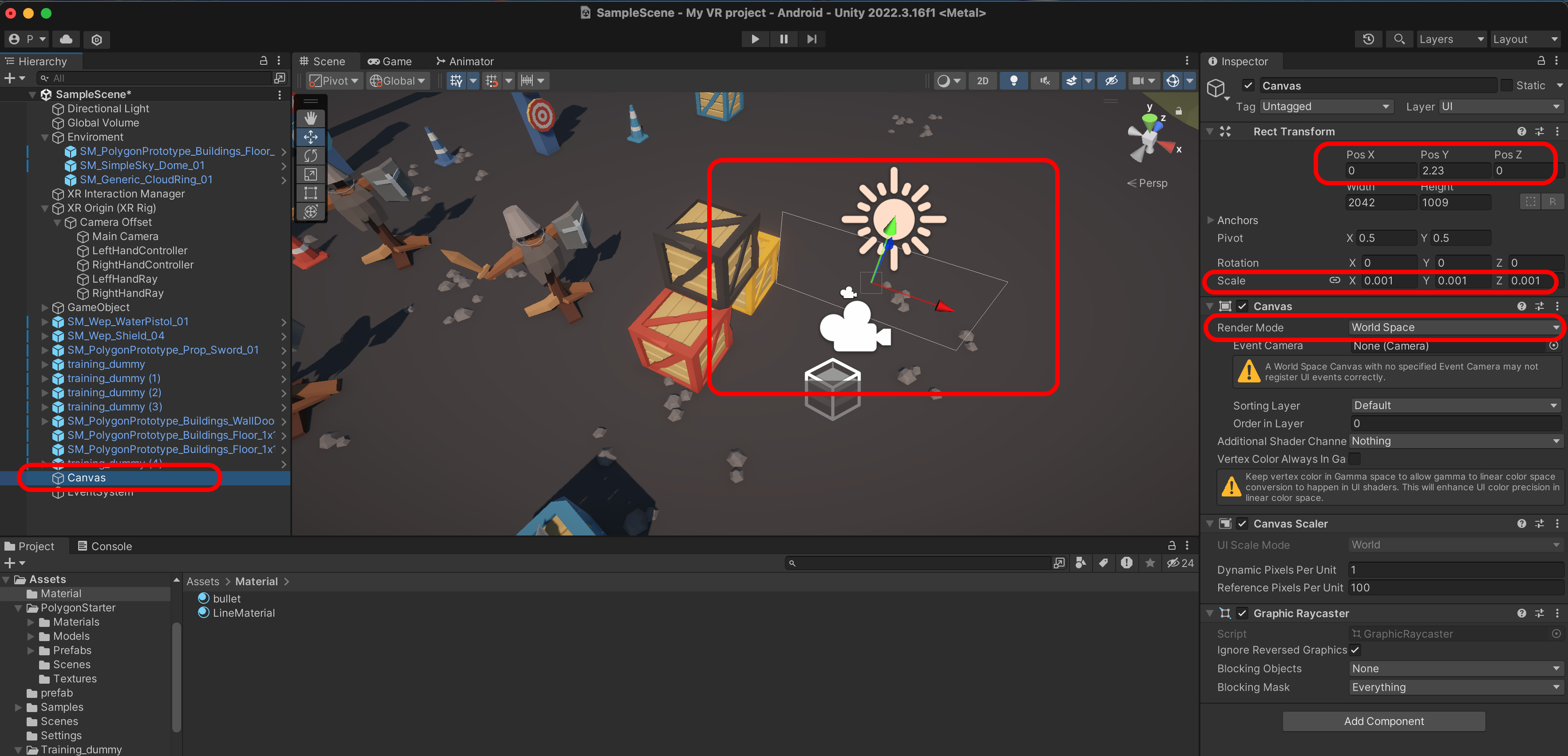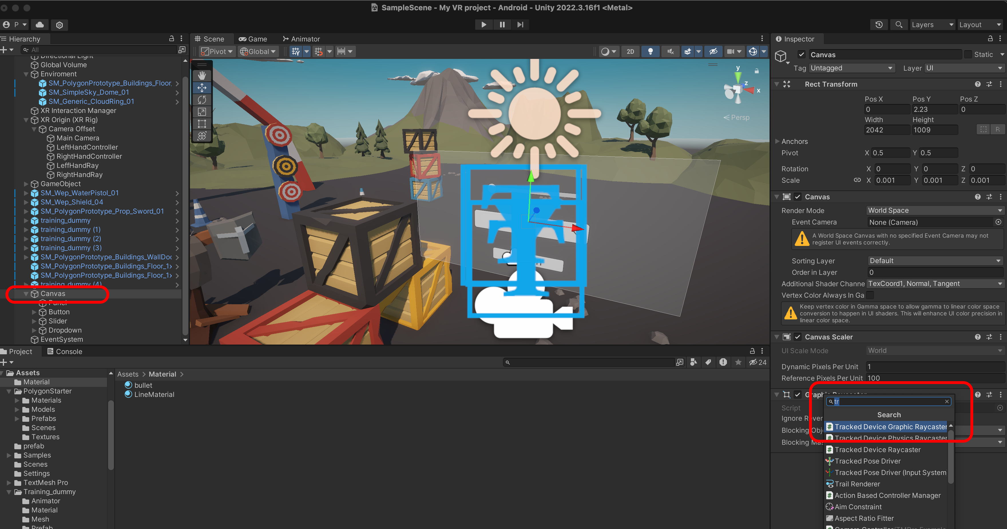 Canvas에 Tracked Device Graphic Raycaster를 추가합니다.