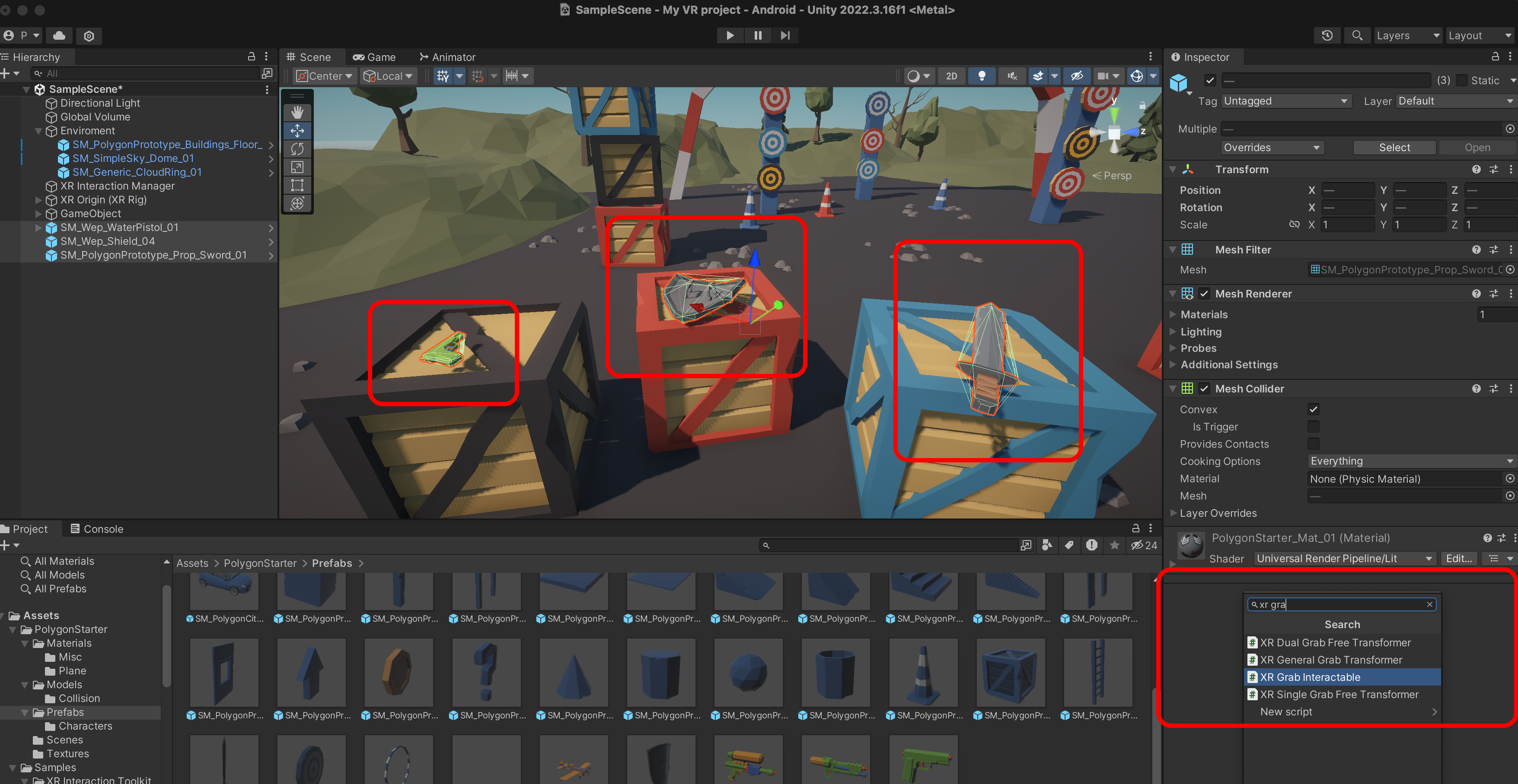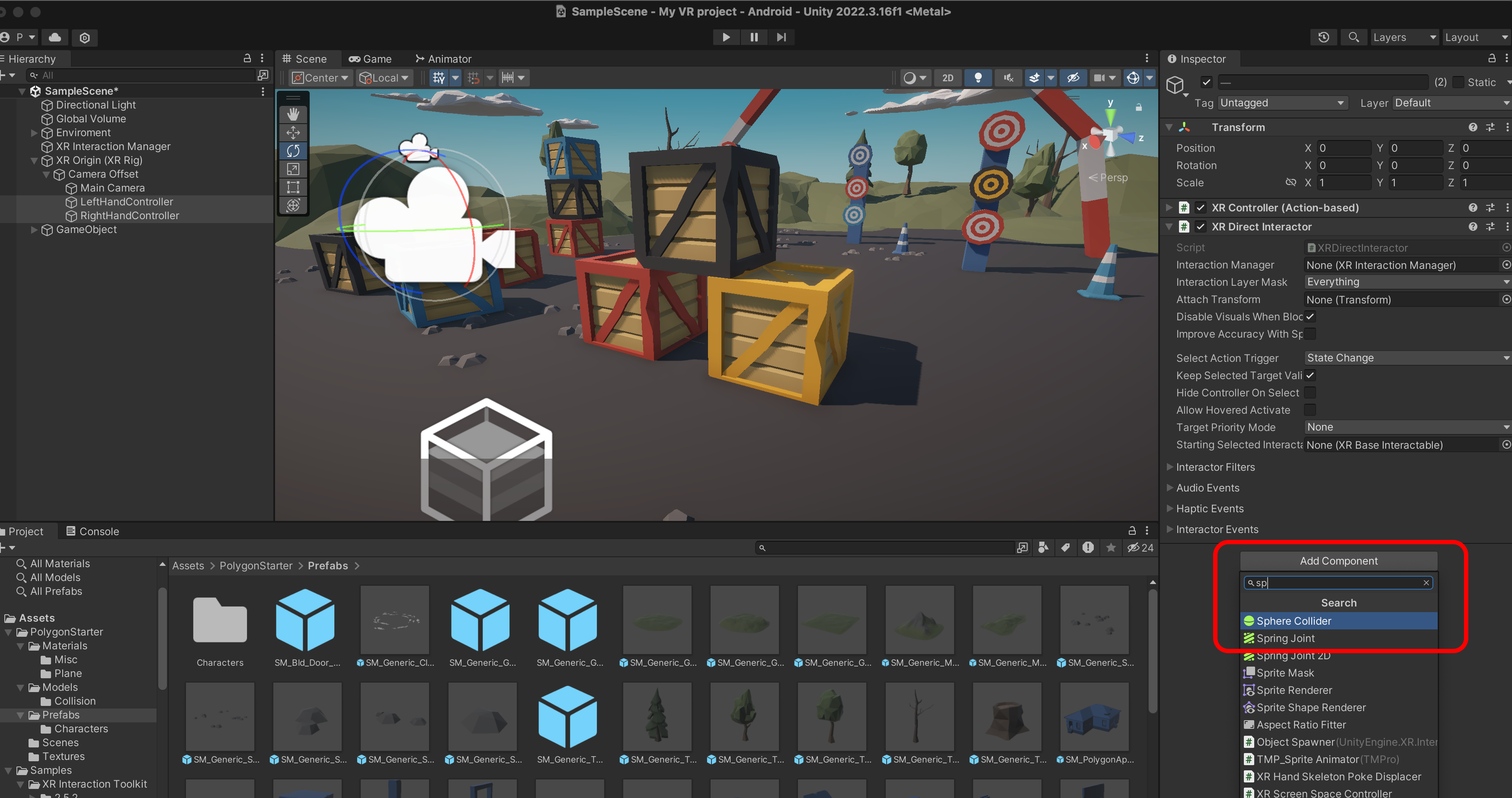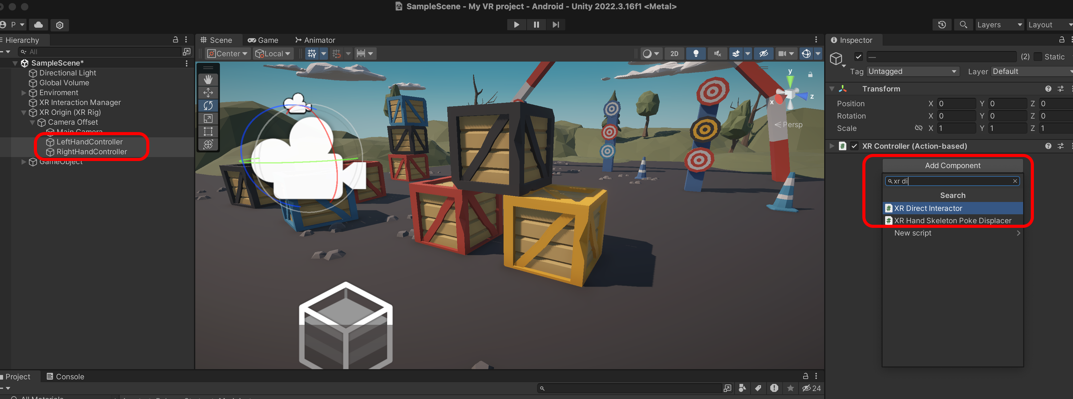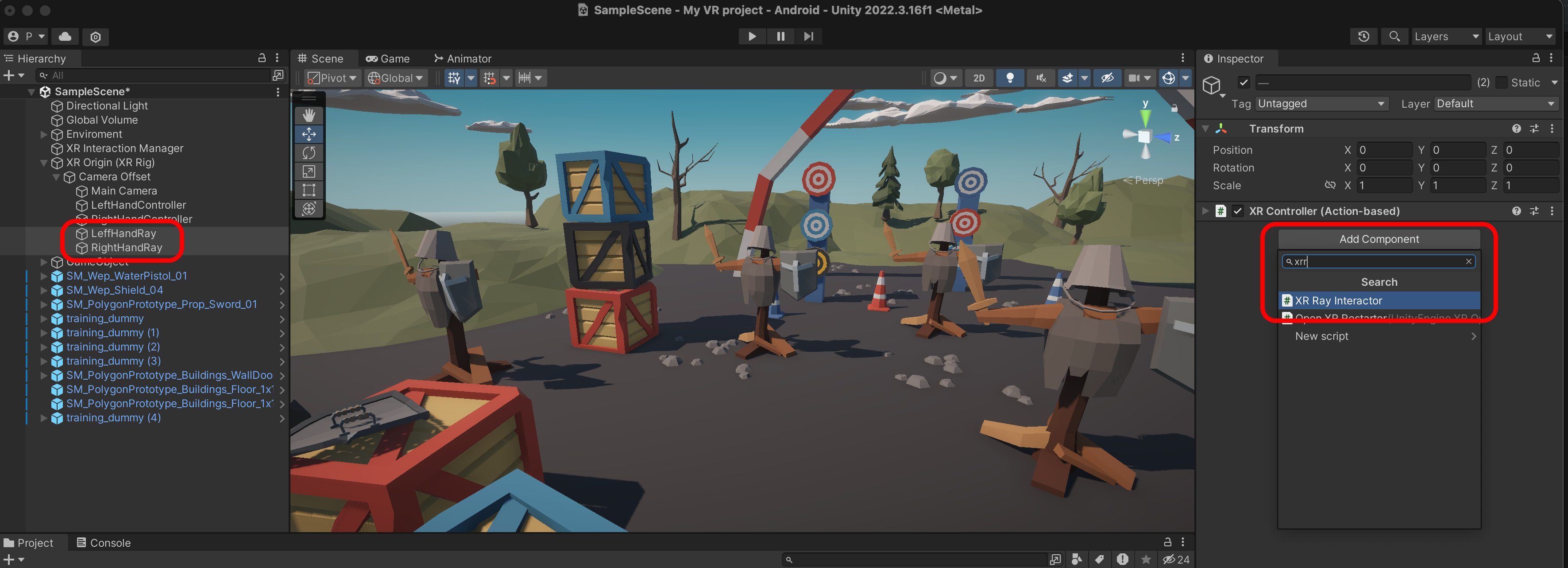 두개를 선택하고 XR Ray Interactor를 추가합니다.