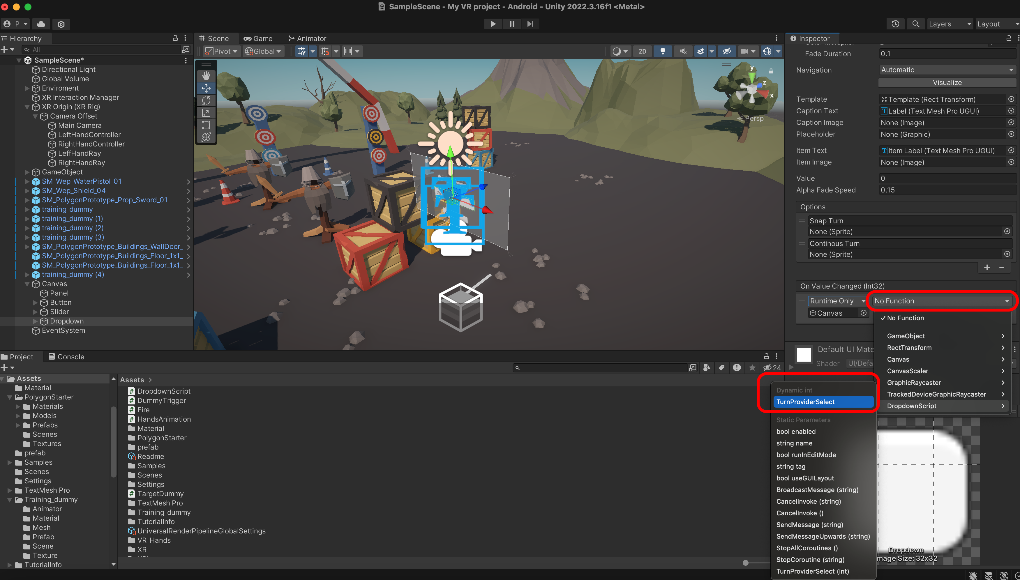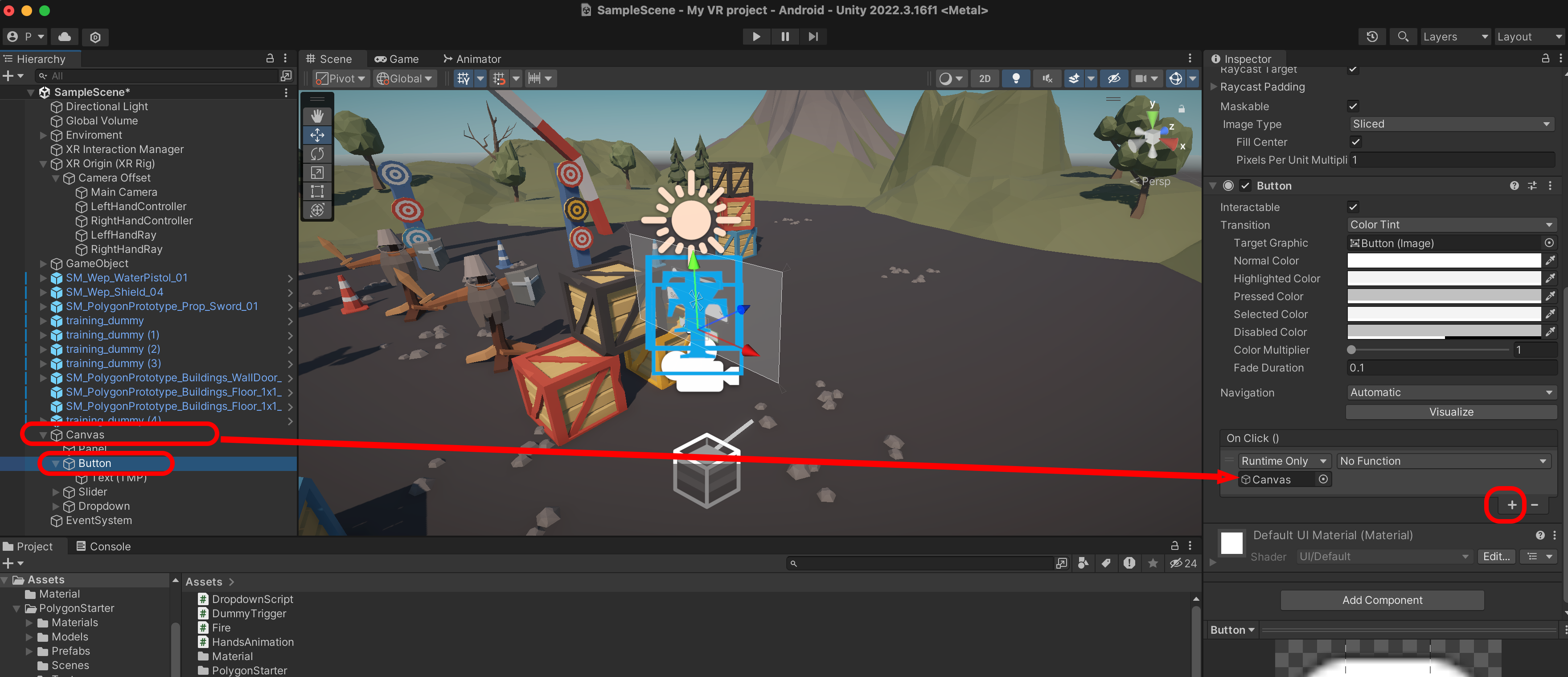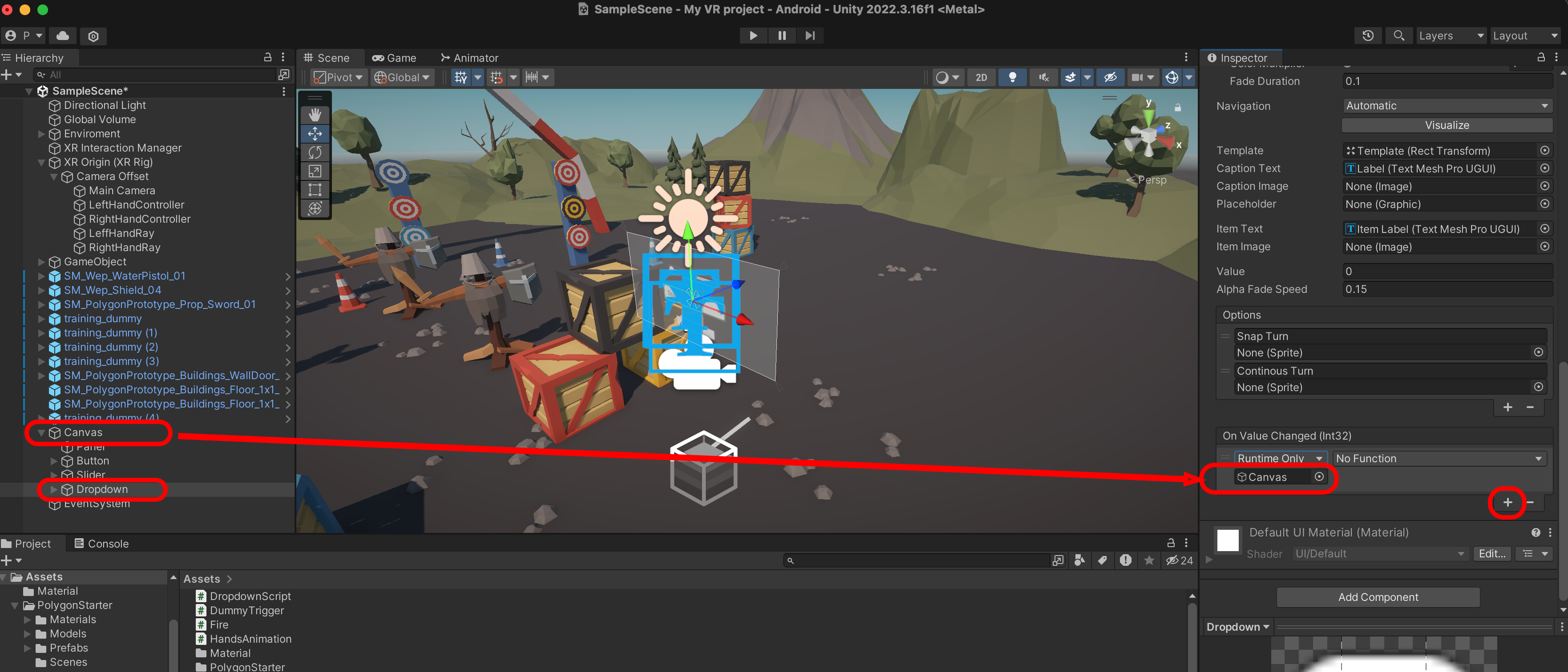 Unity로 돌아와서 Dropdown에서 +를 누르고 Cavas를 연결합니다.