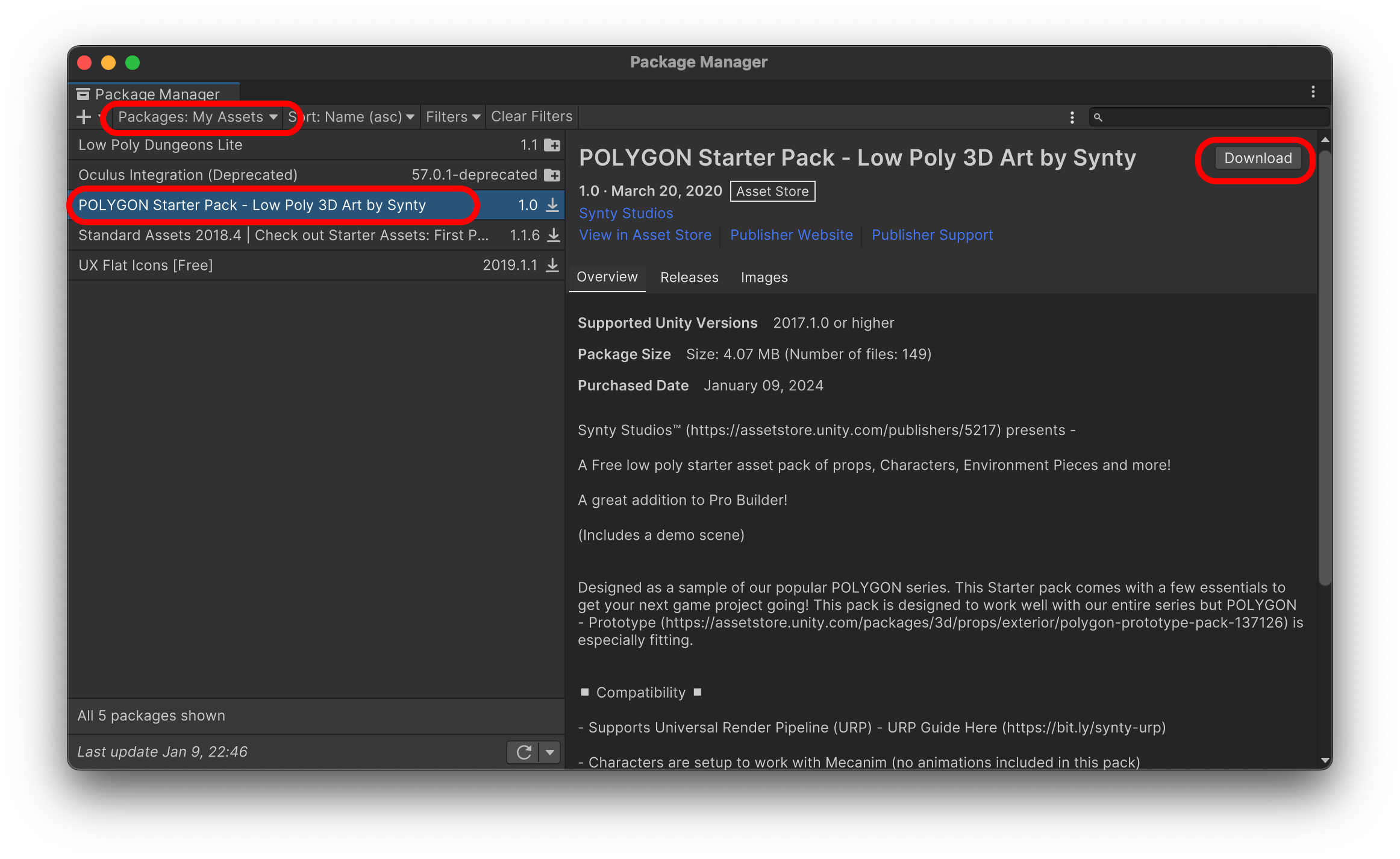 Package Manager에서 다운로드 합니다.