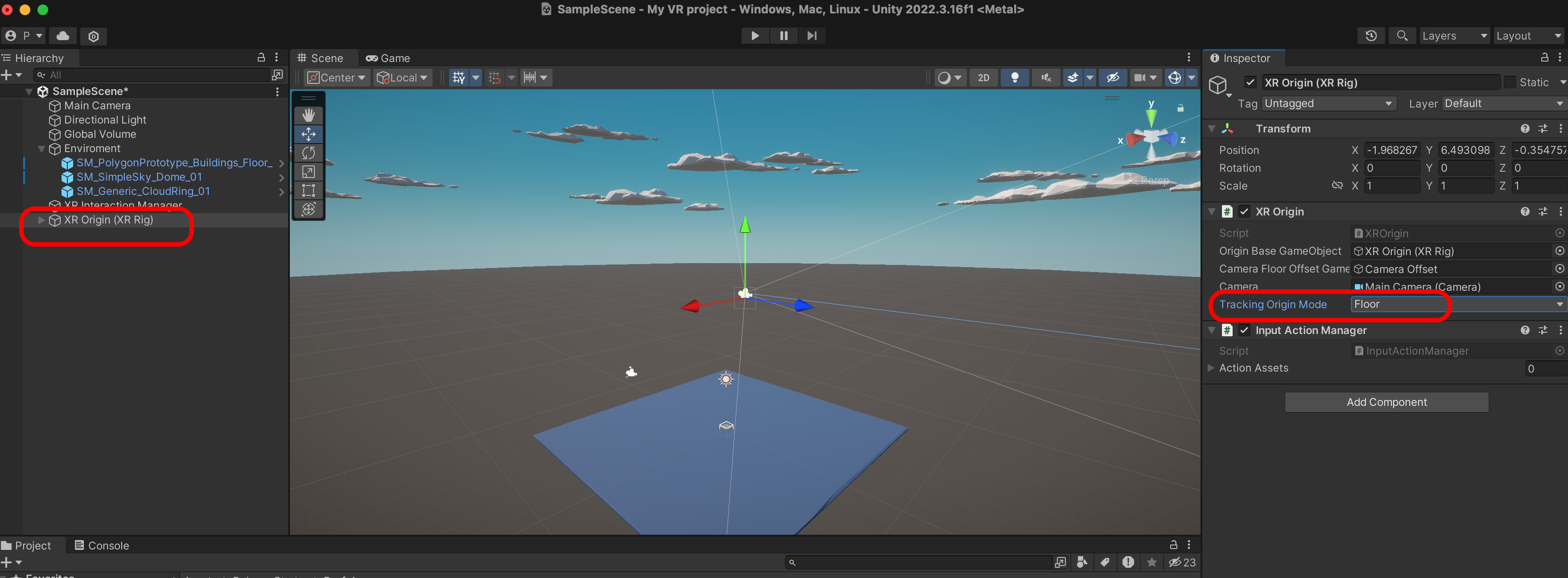 XR Origin > Tracking Origin Modef를 Floor로 변경합니다.