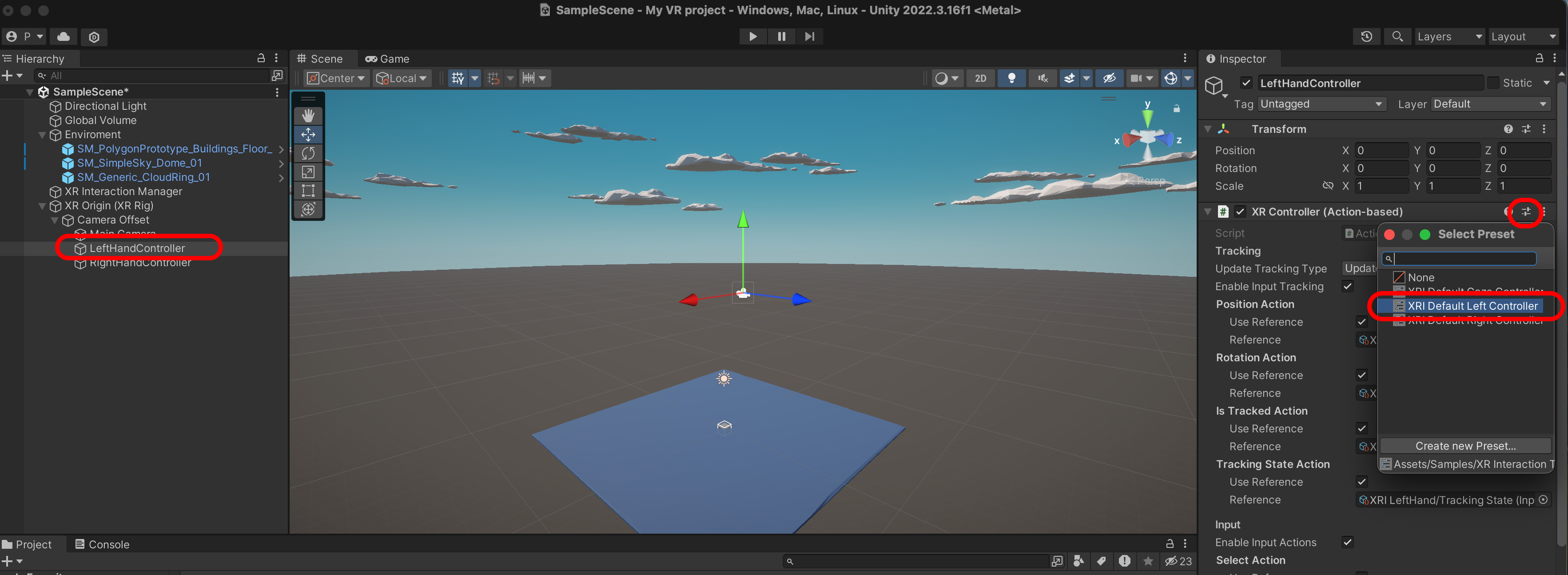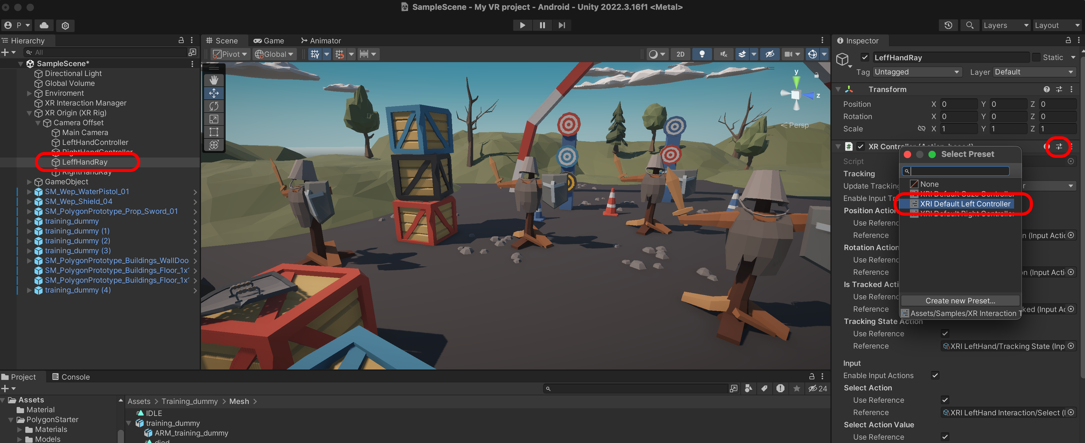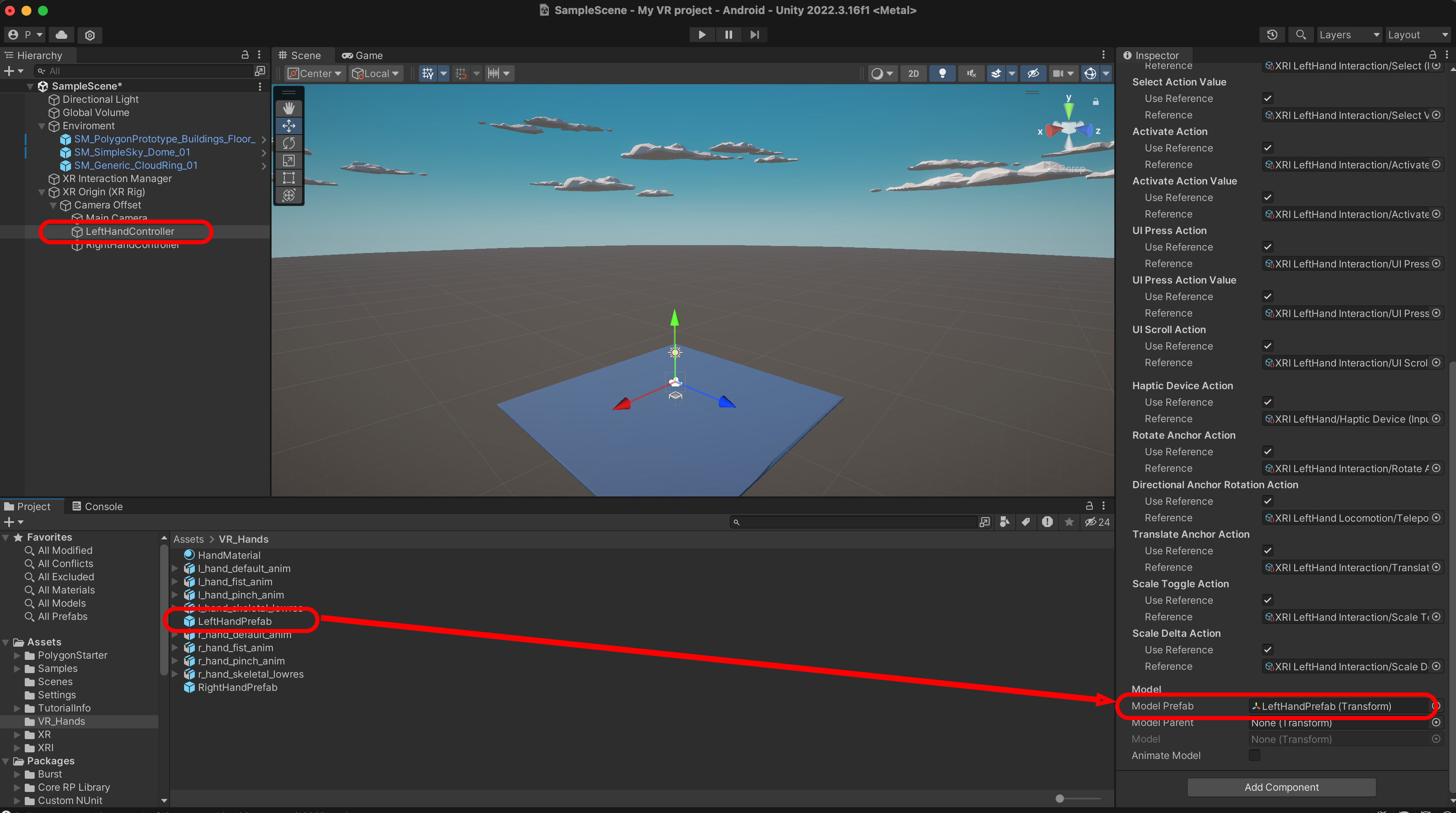 LeftHandRay를 선택하고 XRI Default Left Controller를 선택합니다.