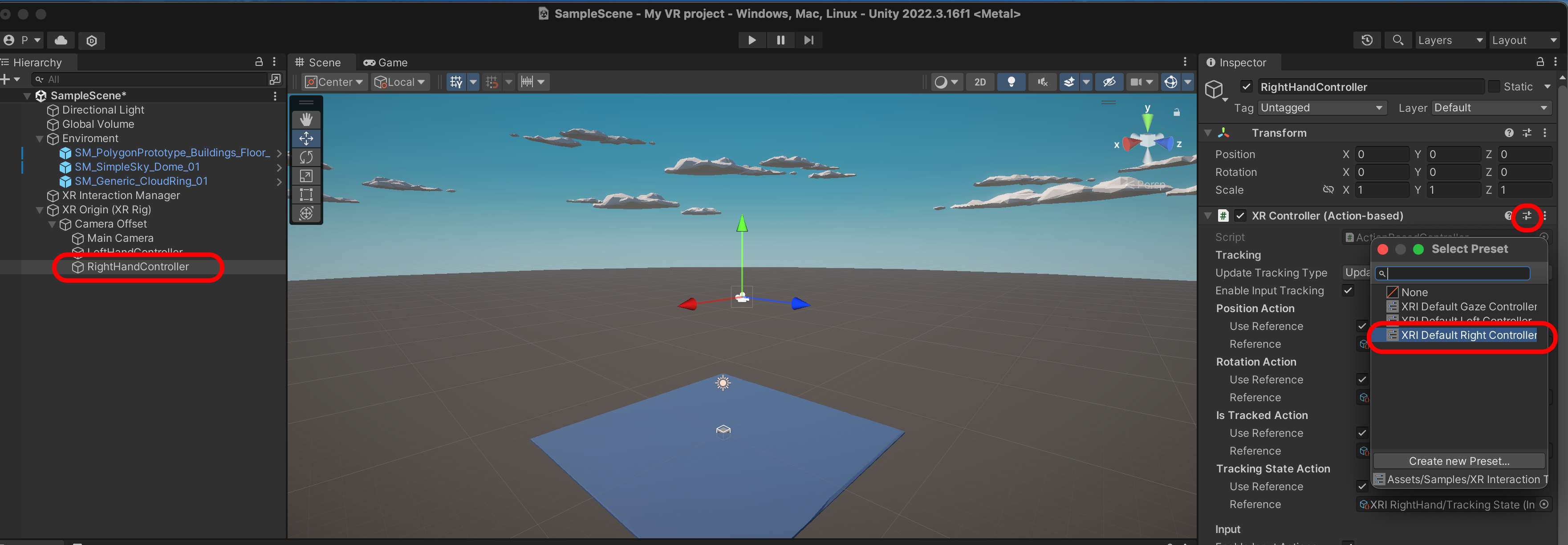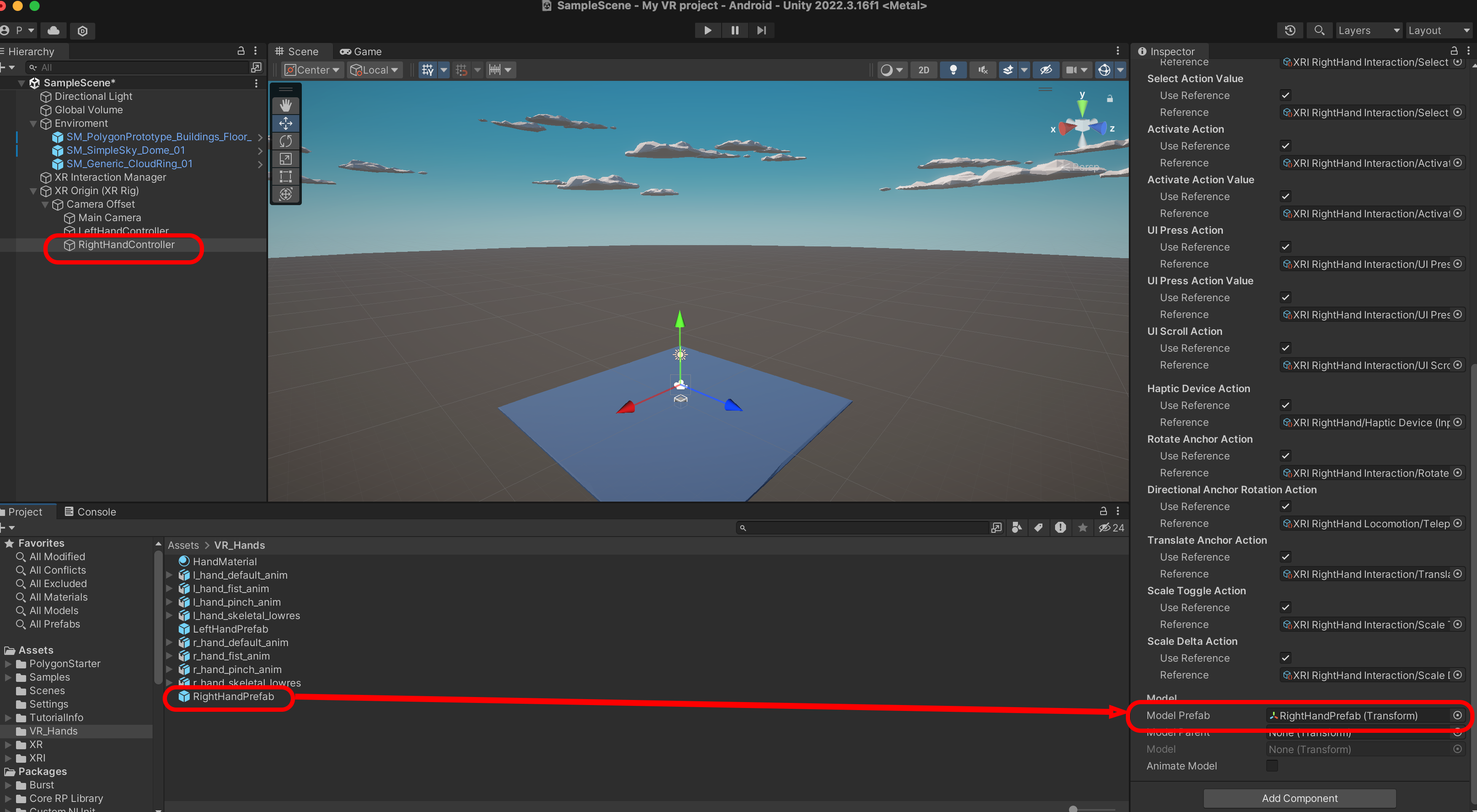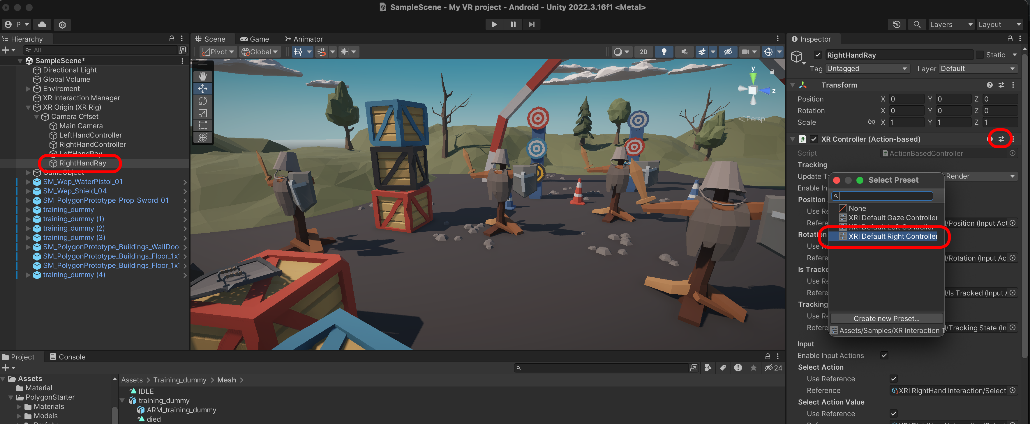RightHandRay를 선택하고 XRI Default Right Controller를 선택합니다.