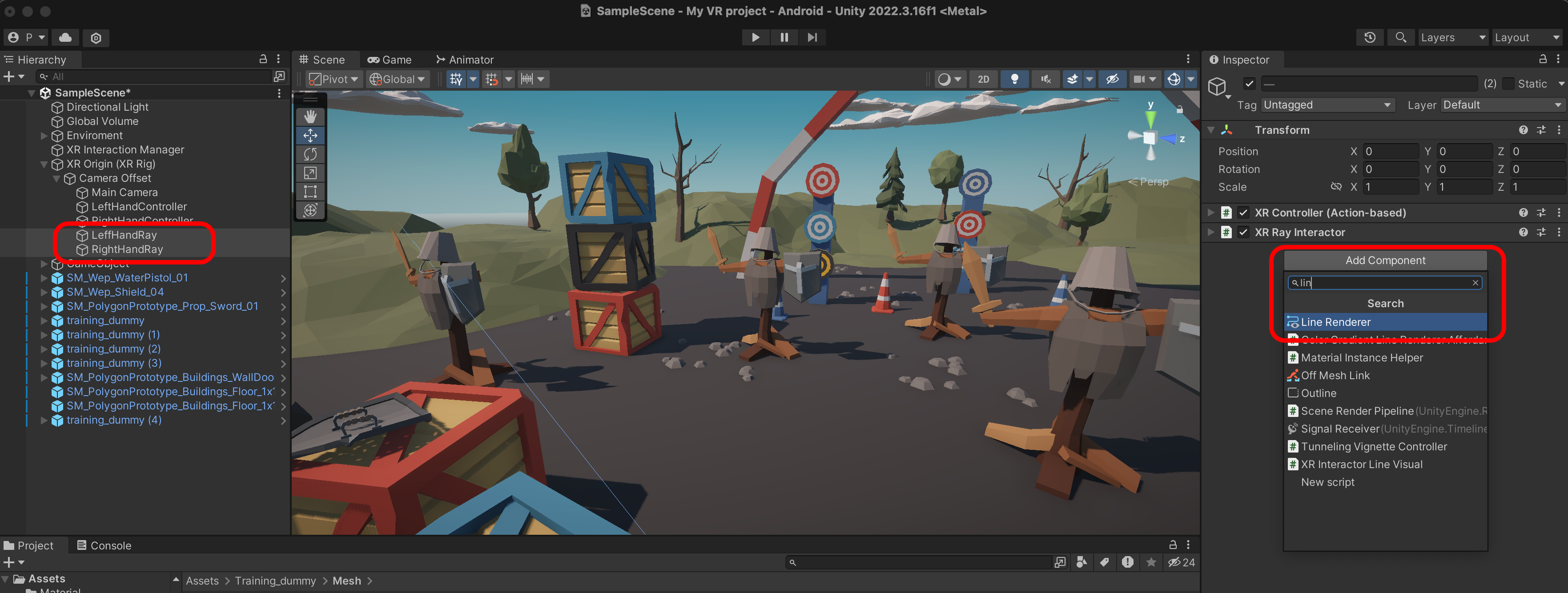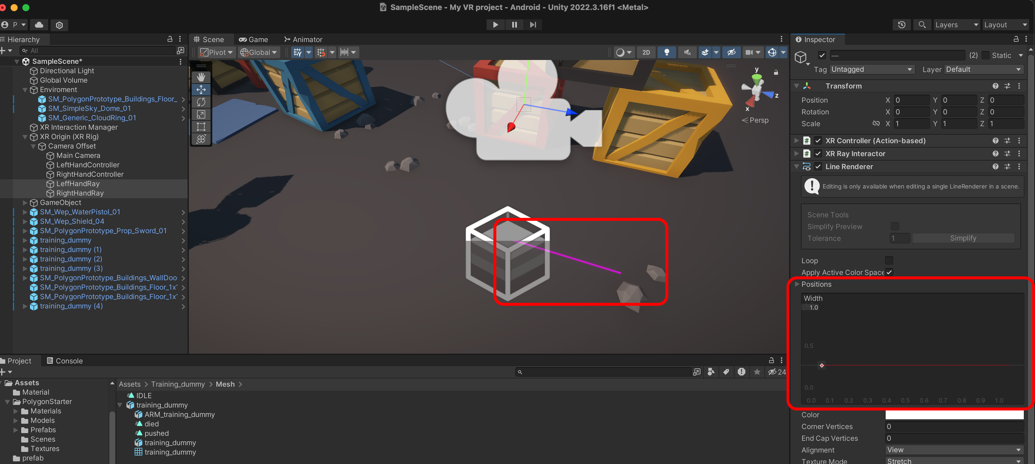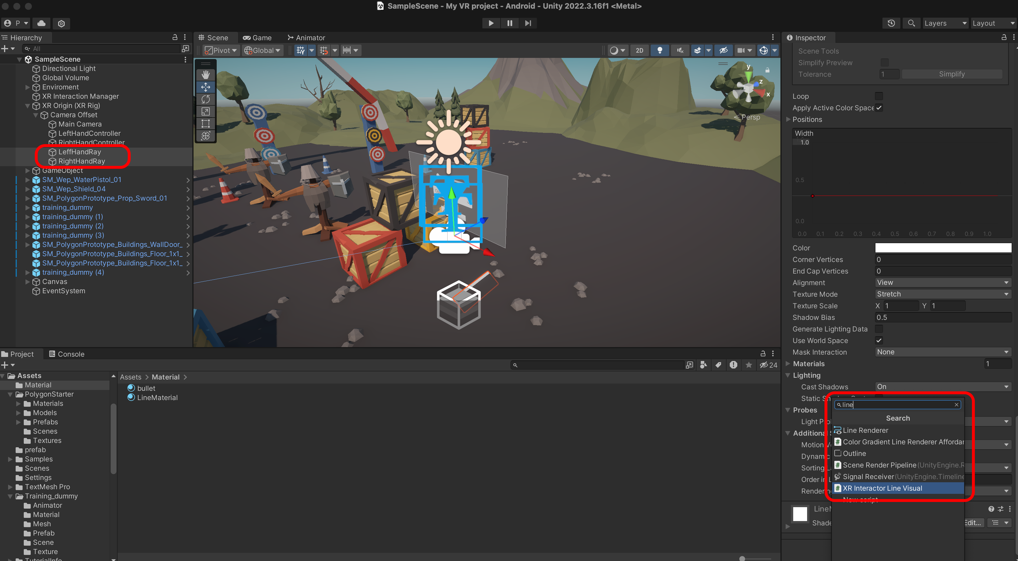 XR Interactor Line Visual을 추가합니다.