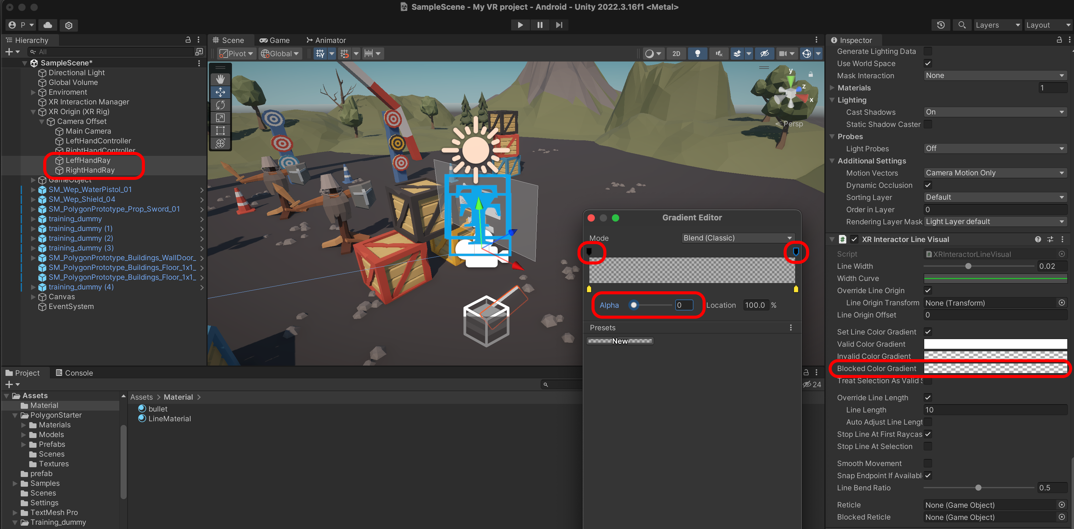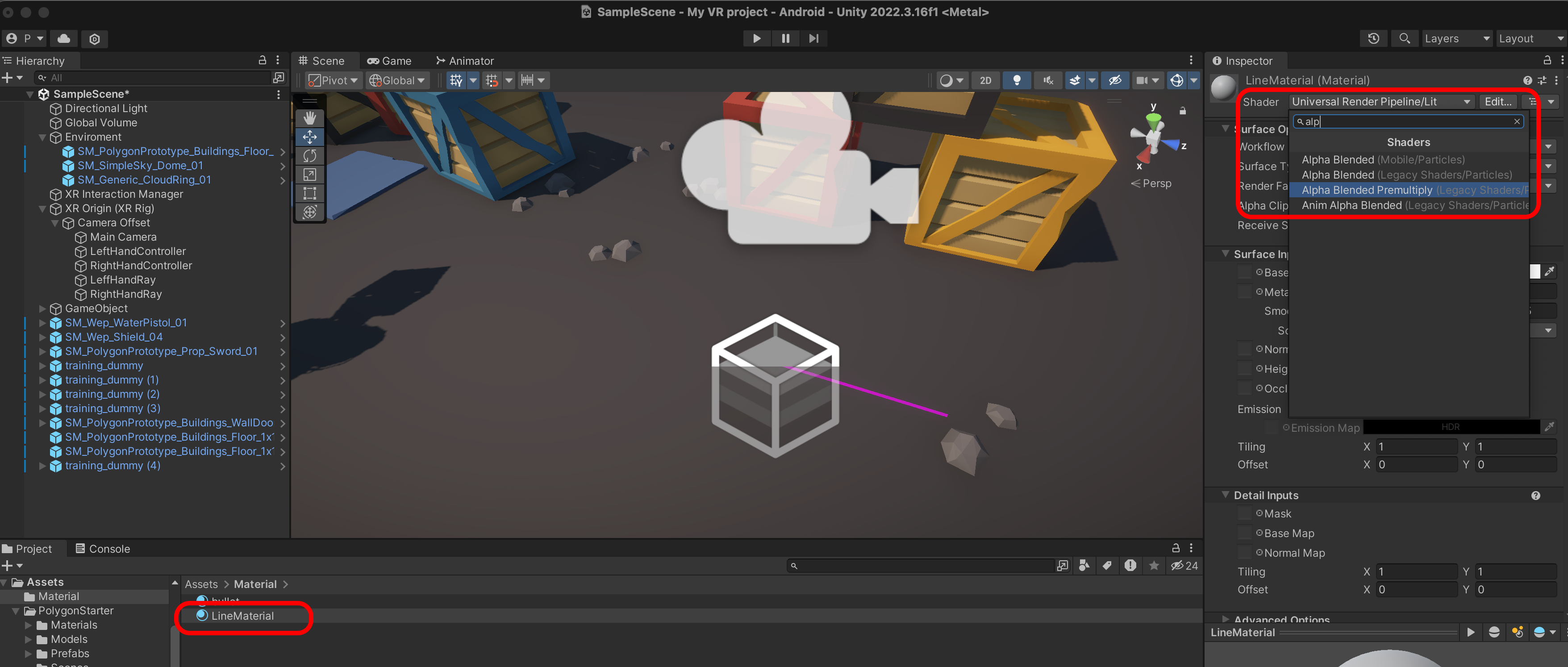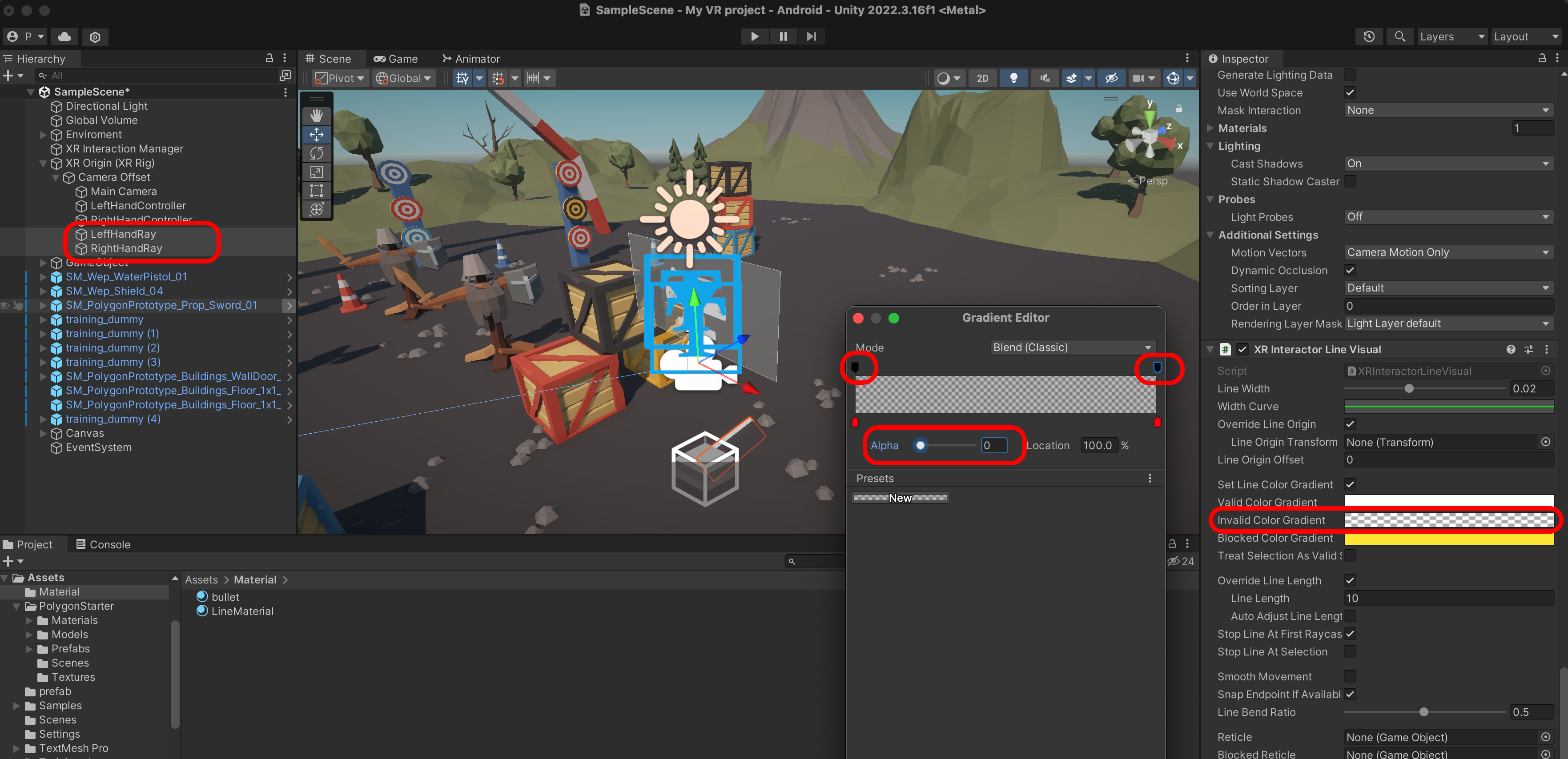 XR Interactor Line Visual을 추가합니다.