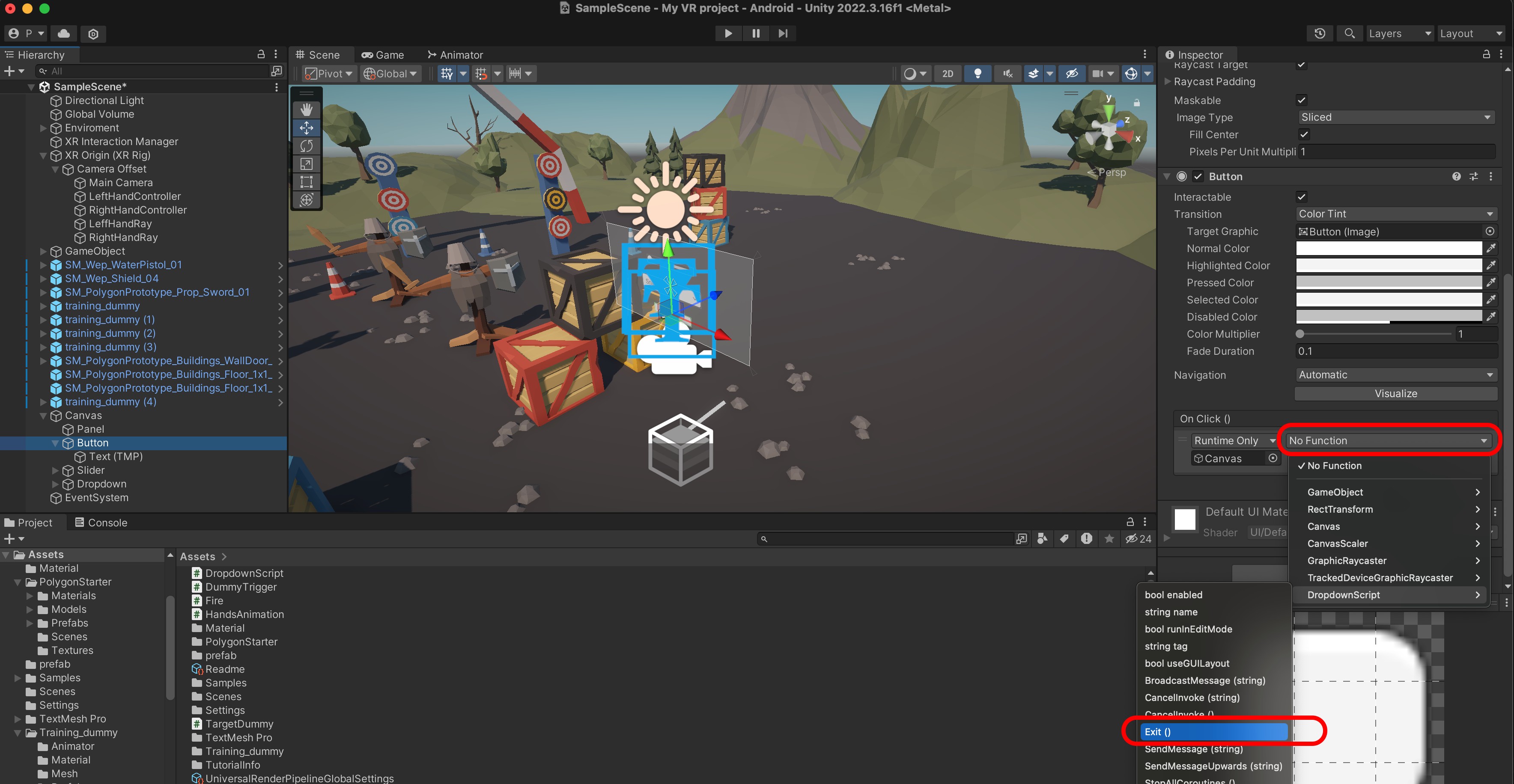 Button을 Exit로 설정합니다.