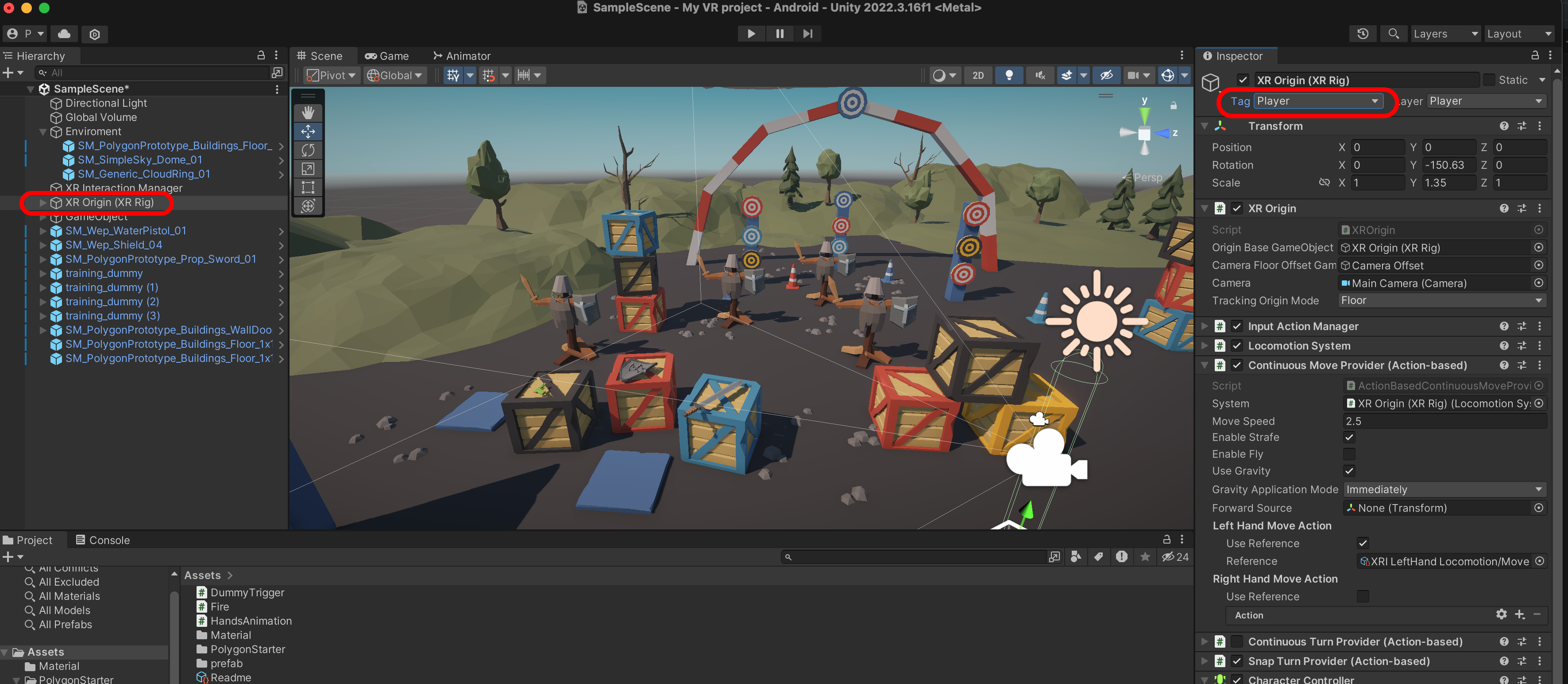 XR Origin을 Player 태그에 넣어줍니다.