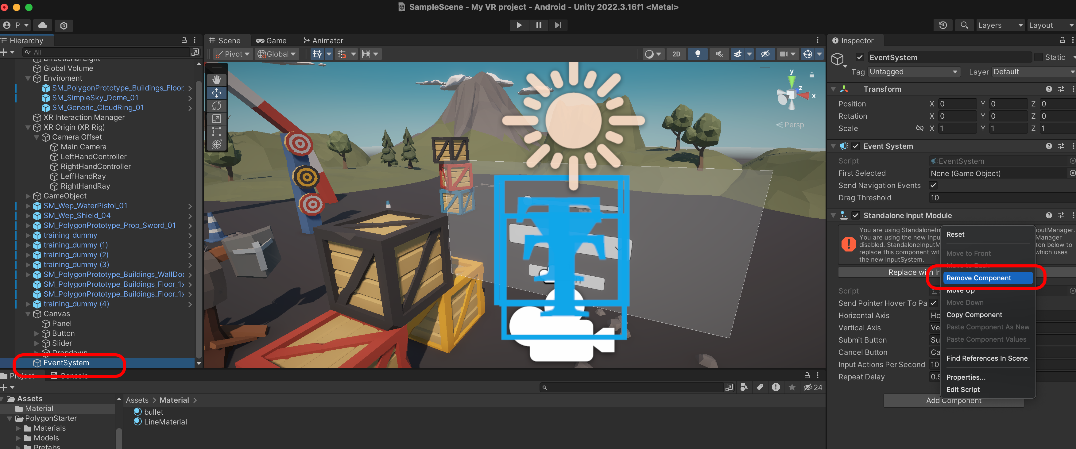 EventSystem에서 Standalone Input Module은 제거합니다.