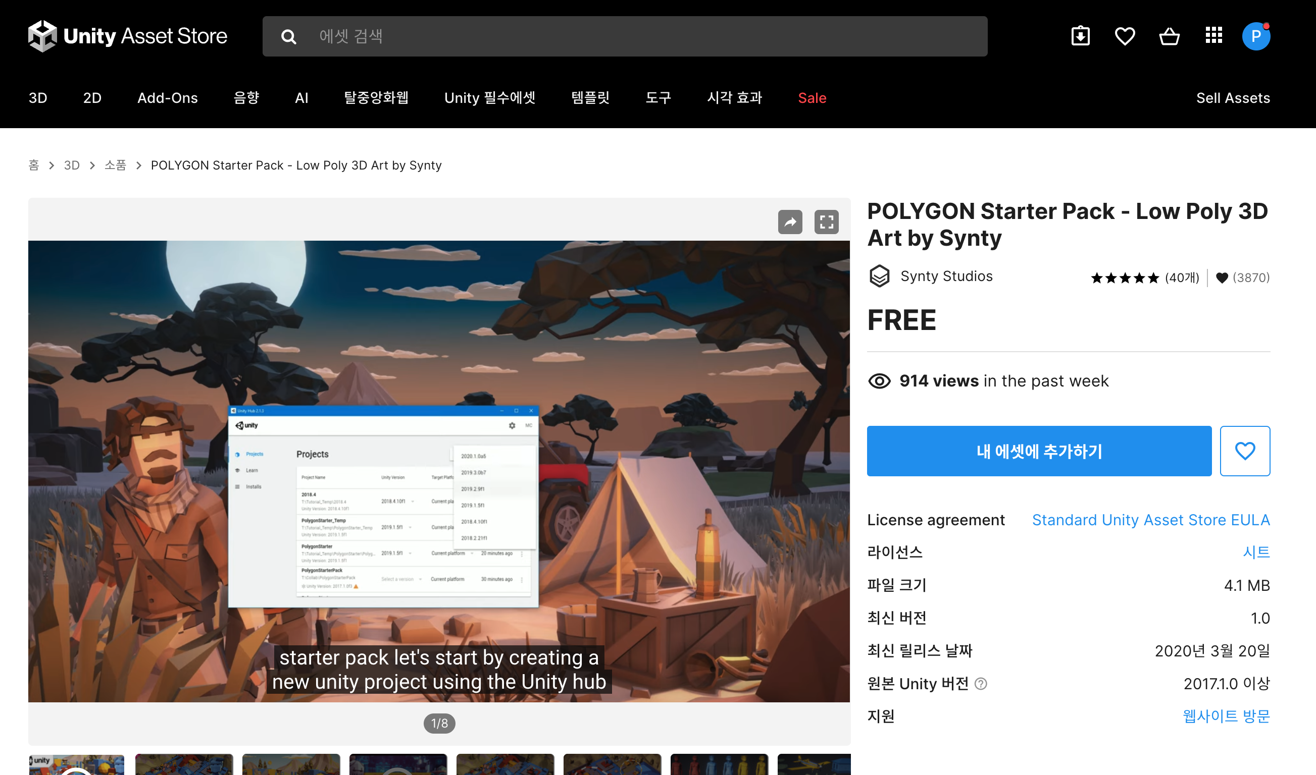 위 사이트에서 에셋을 추가합니다.