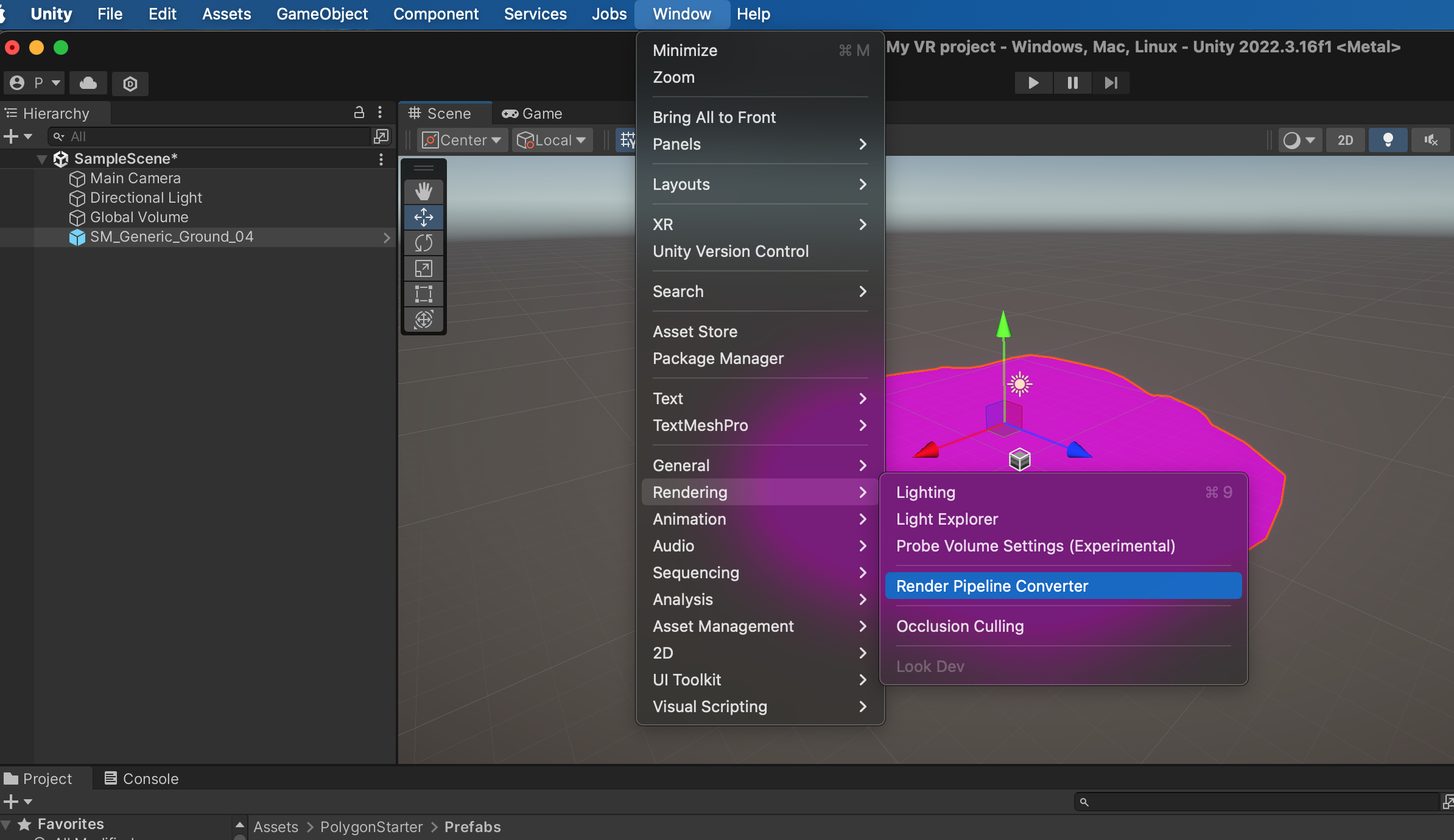 Window > Rendering > Render Pipeline Converter를 선택합니다.