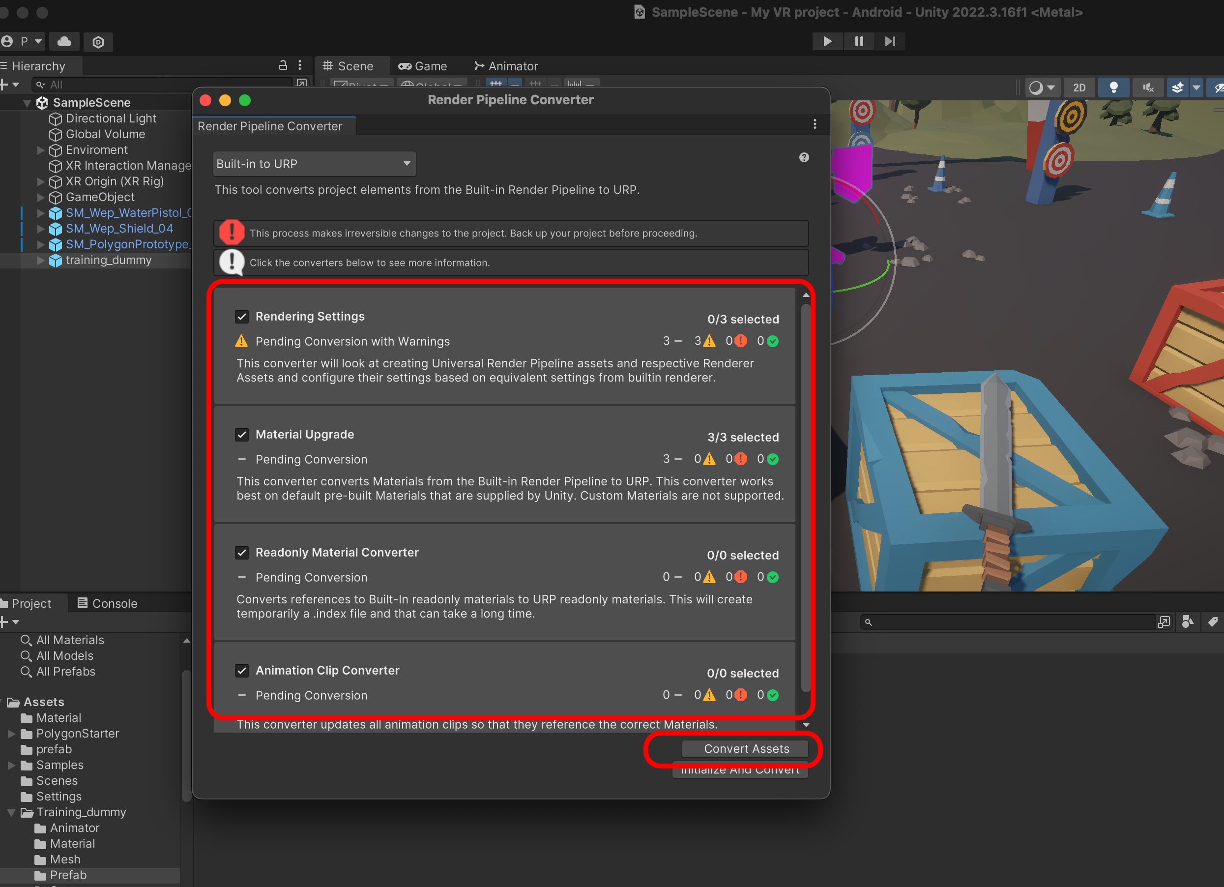 Asset을 Universal Pipeline으로 변환합니다.