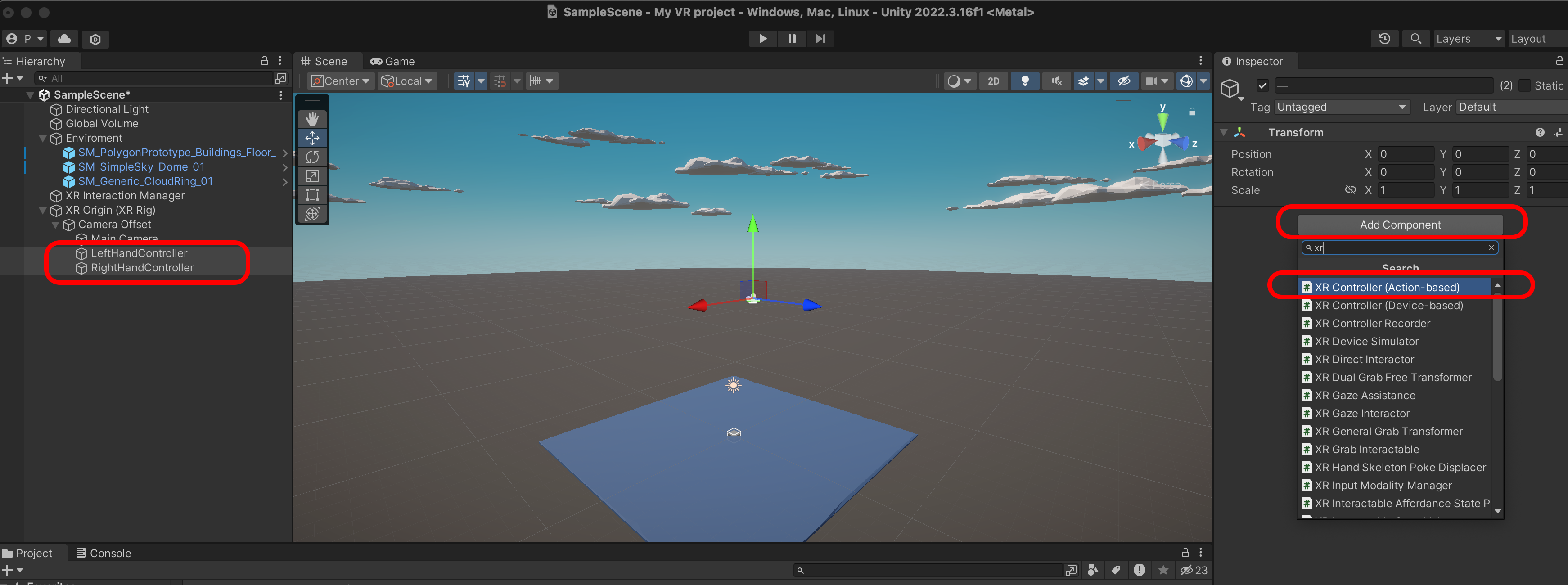 XR Controller를 추가합니다.