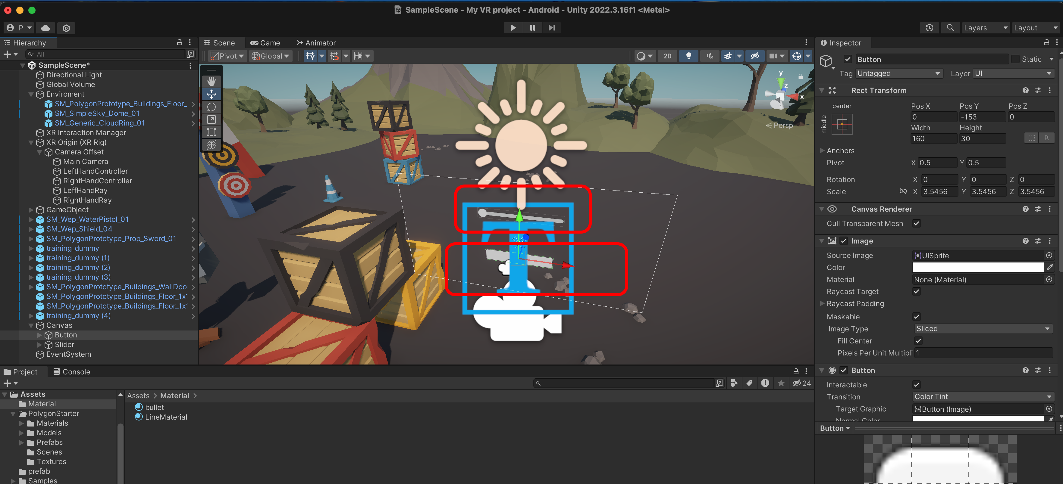 Button과 Slider의 크기와 위치를 적당히 조절합니다.