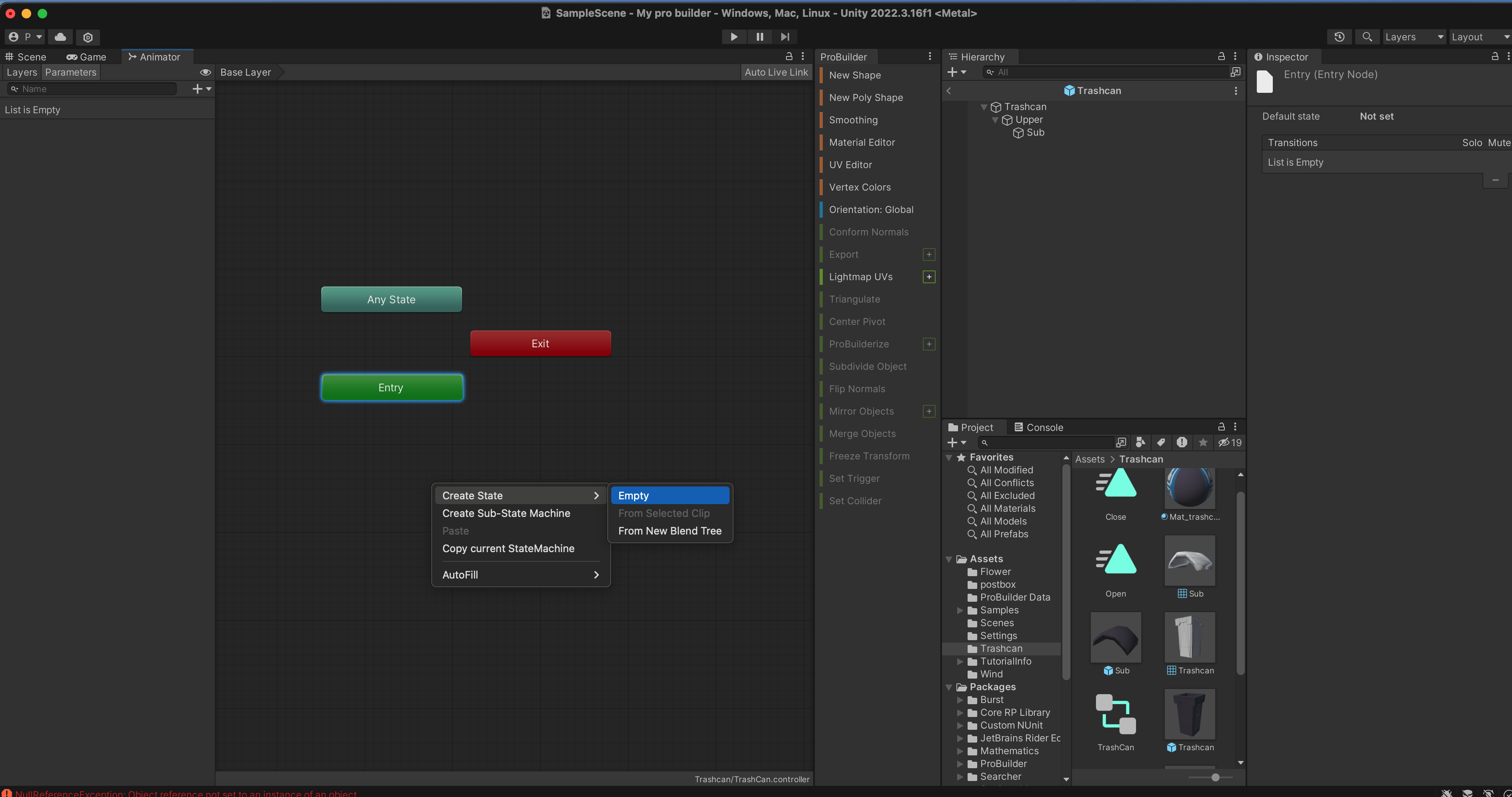 Animation Controller를 생성해서 TrashCan으로 이름을 지정합니다.