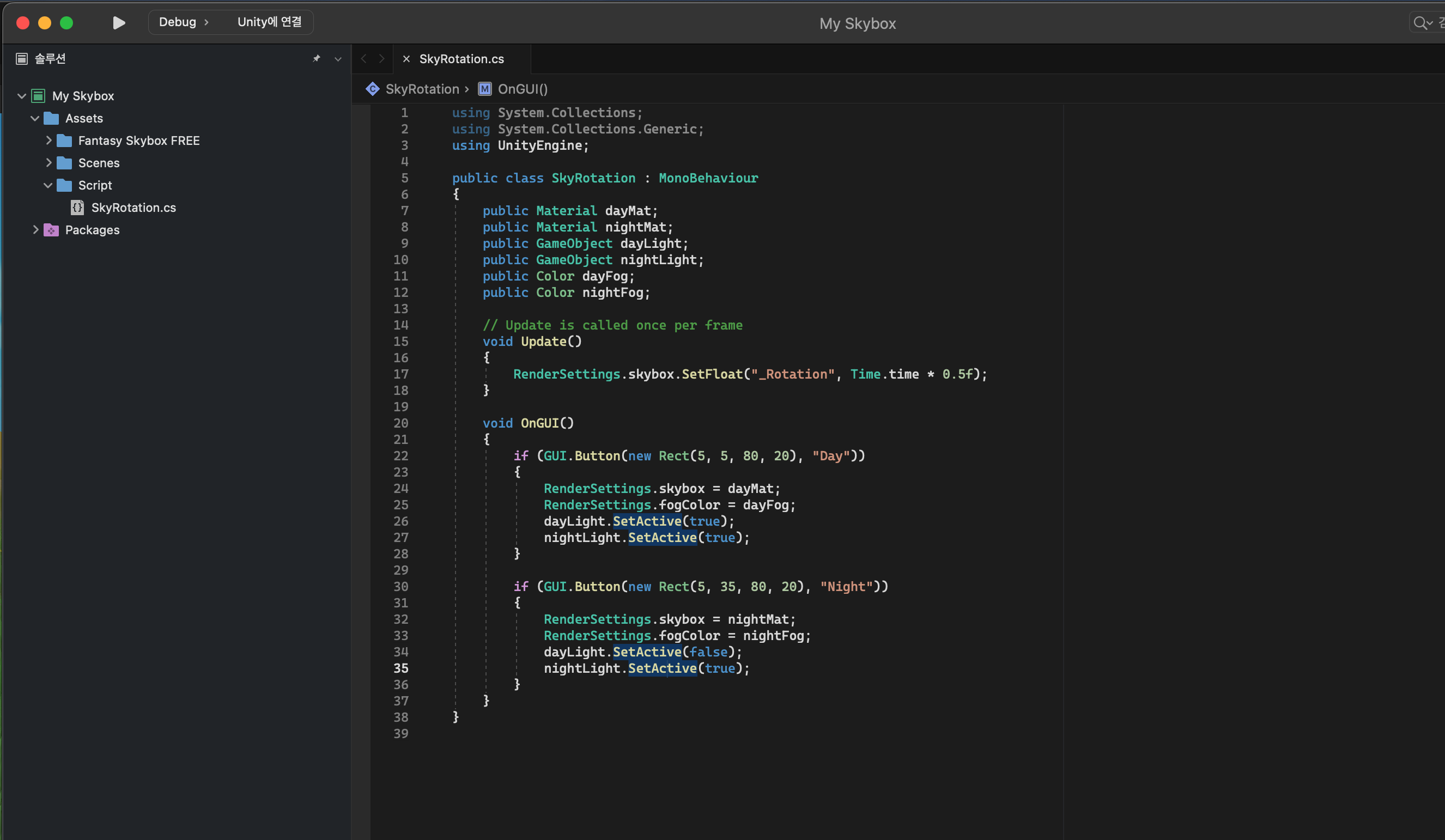 if (GUI.Button(new Rect(5, 35, 80, 20), "Night"))