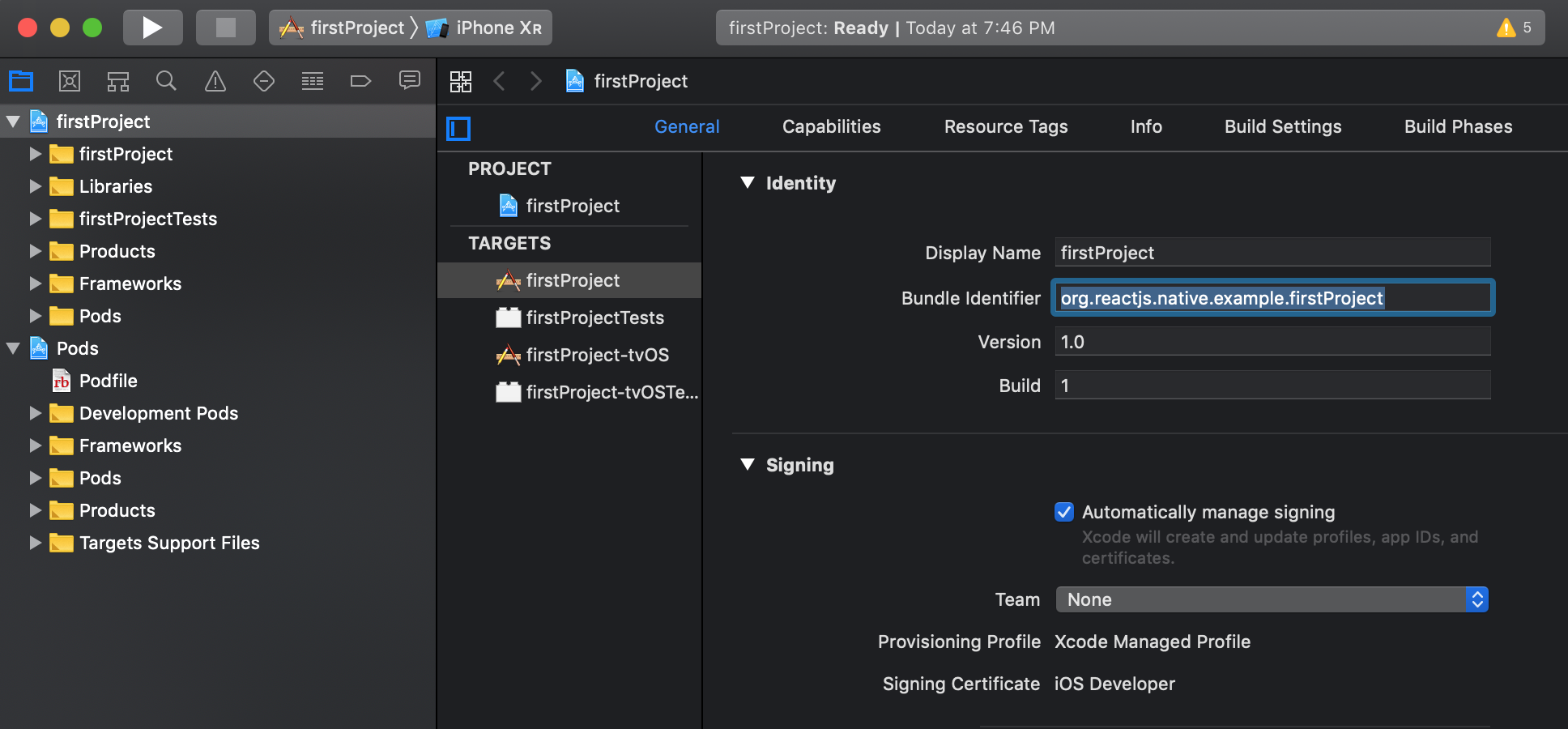 $ react-native init firstProject