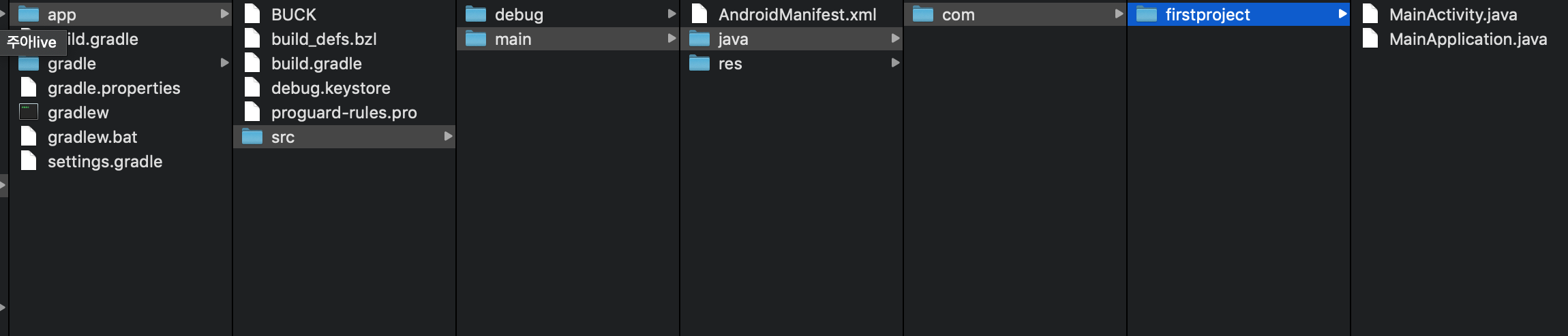 /android/app/main/java/com/firstproject 폴더 구조를