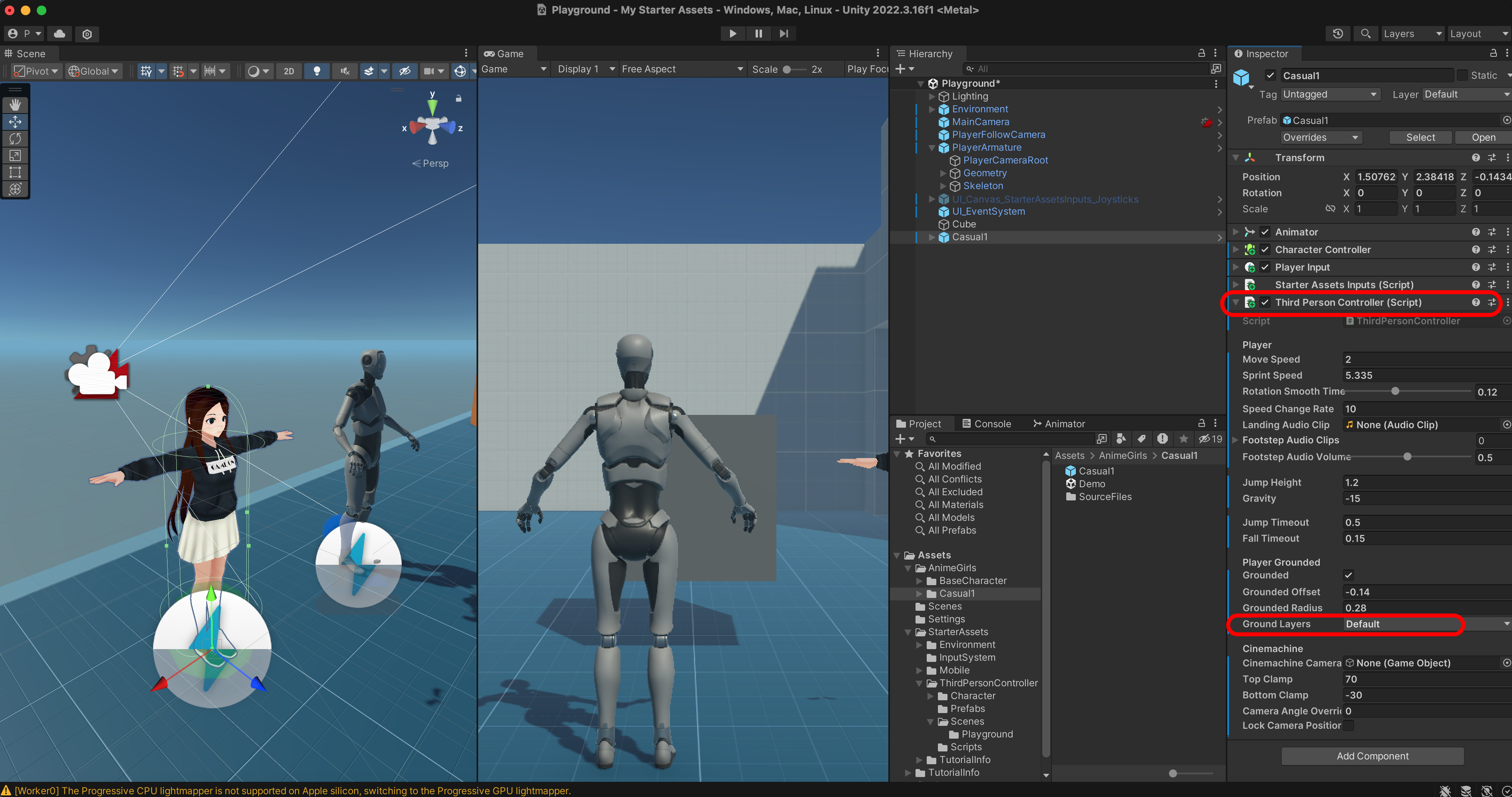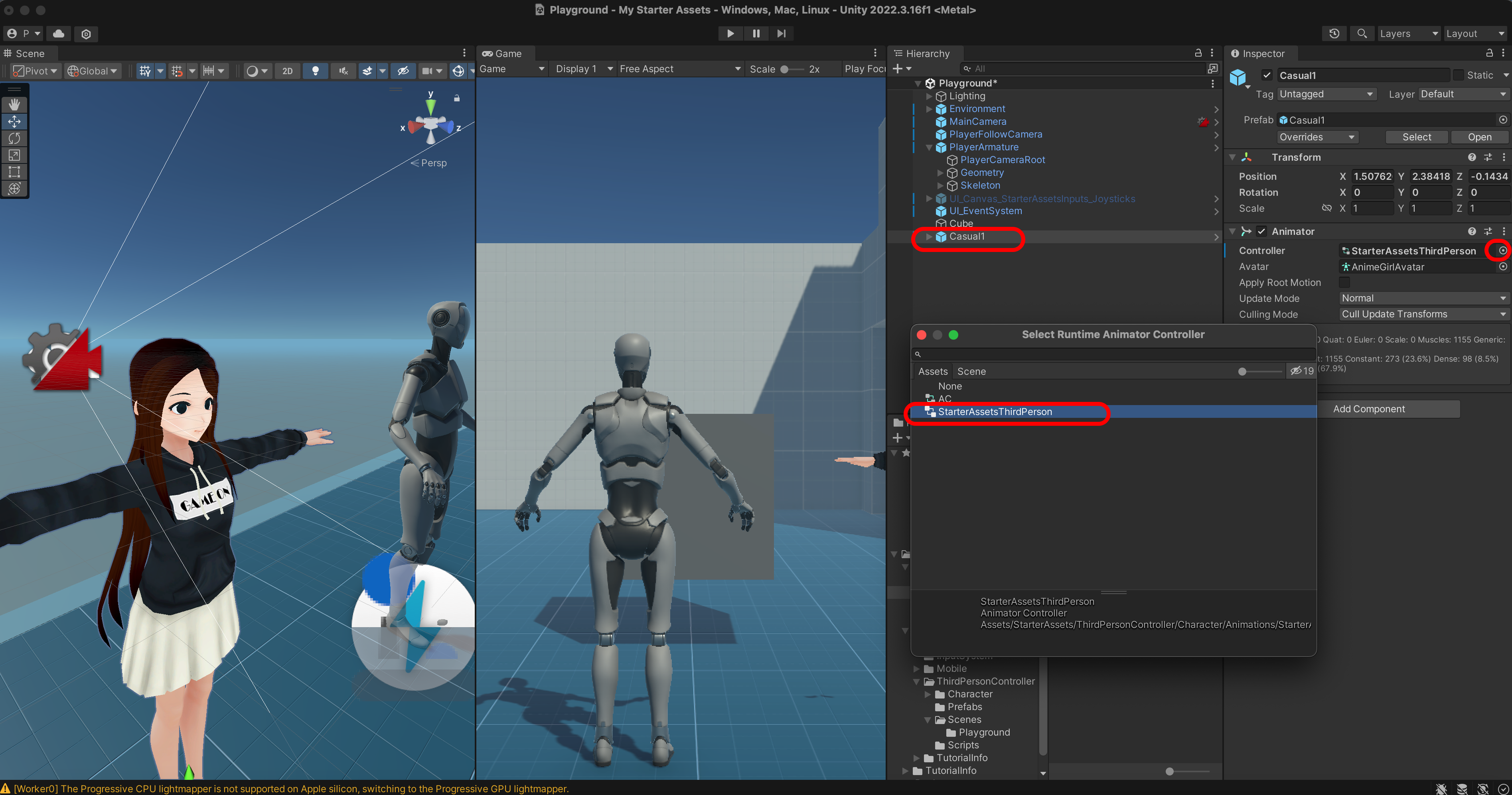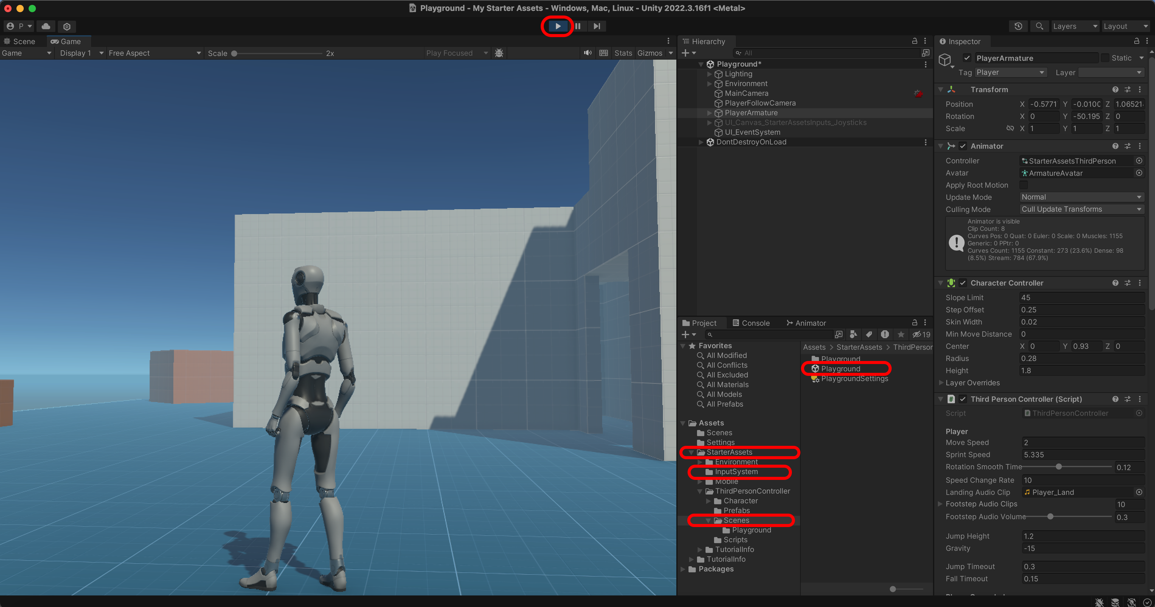 Animator에서 Character를 StaterAssetsThirdPerson으로 변경합니다.