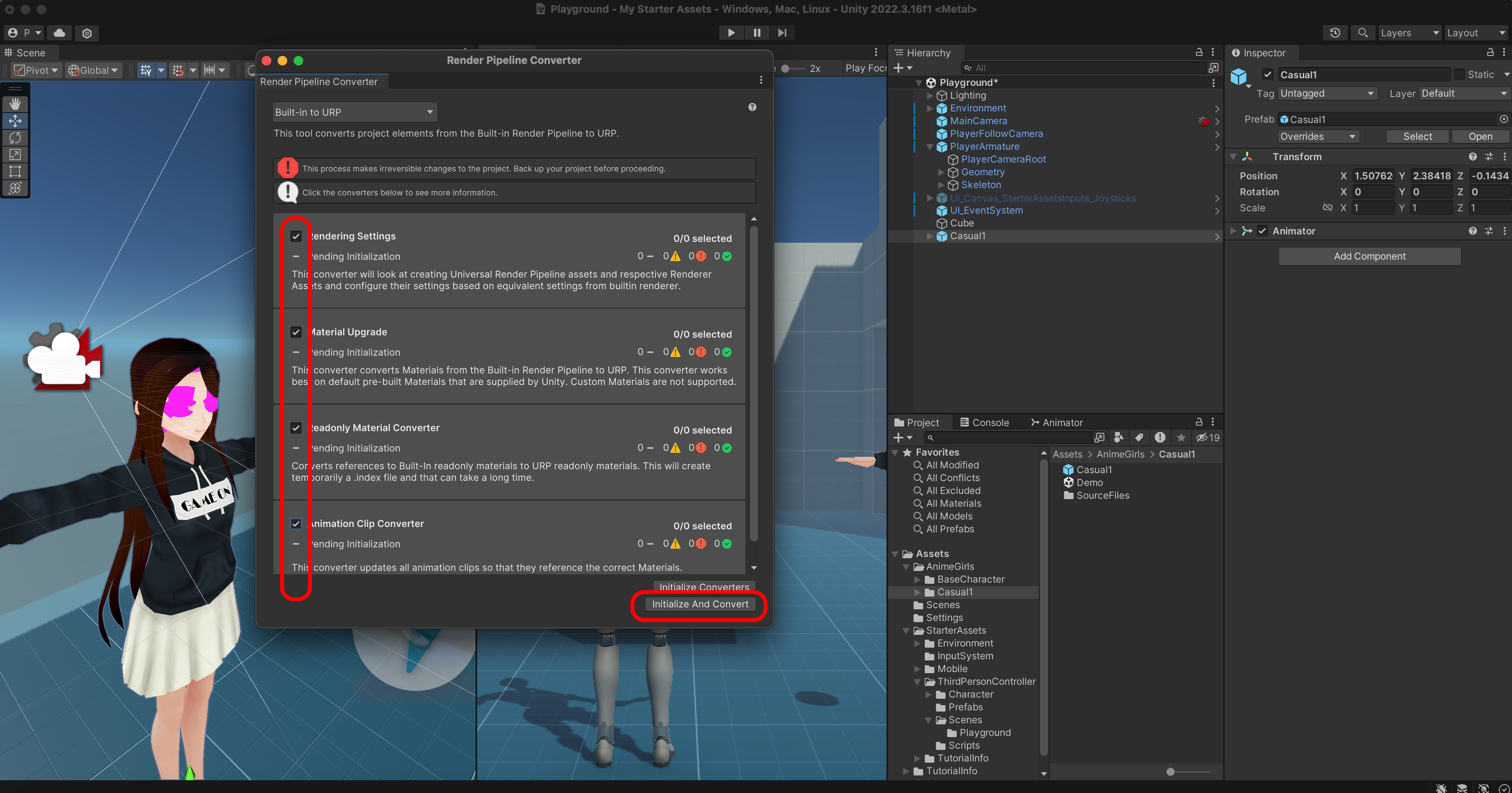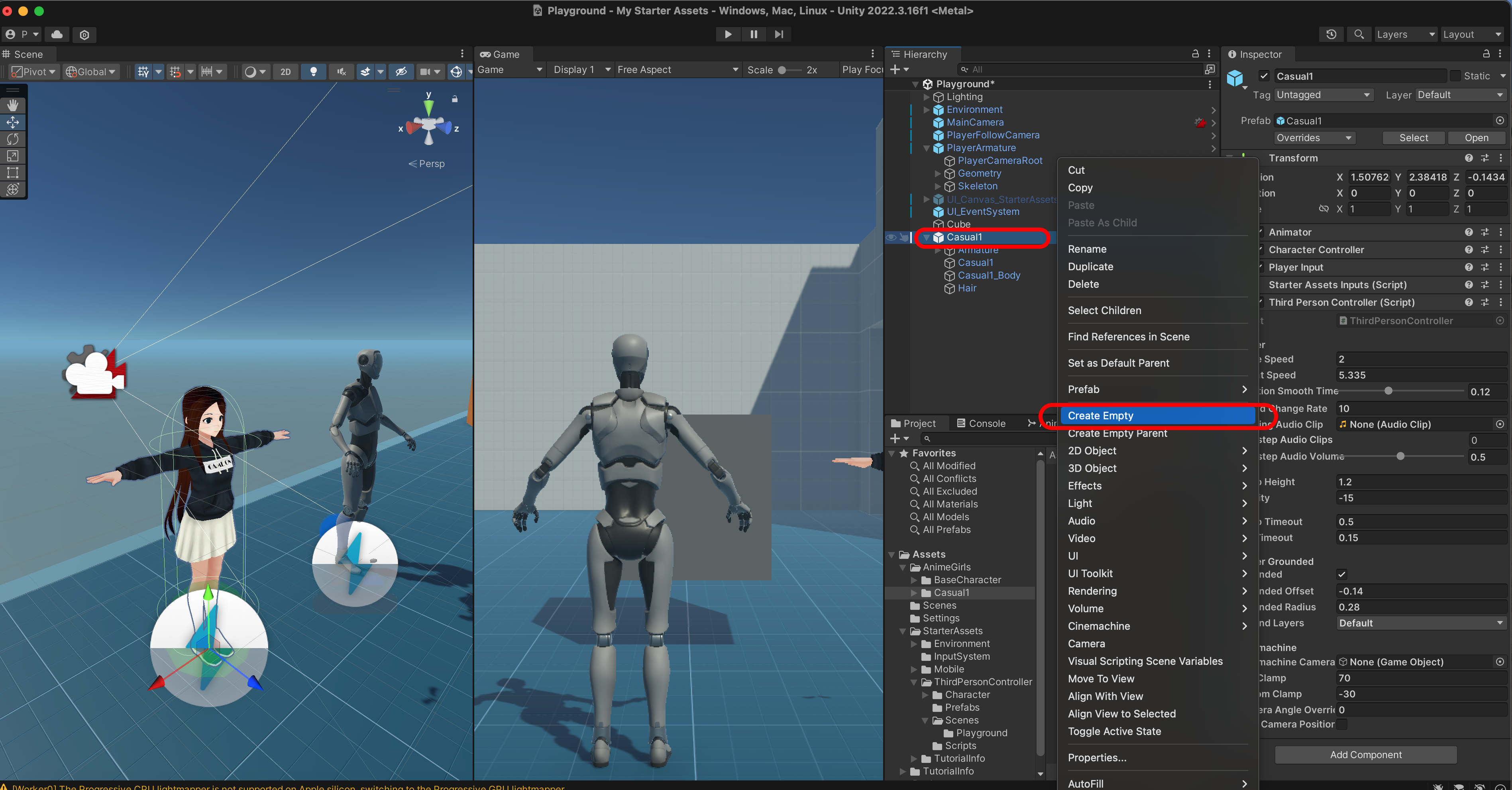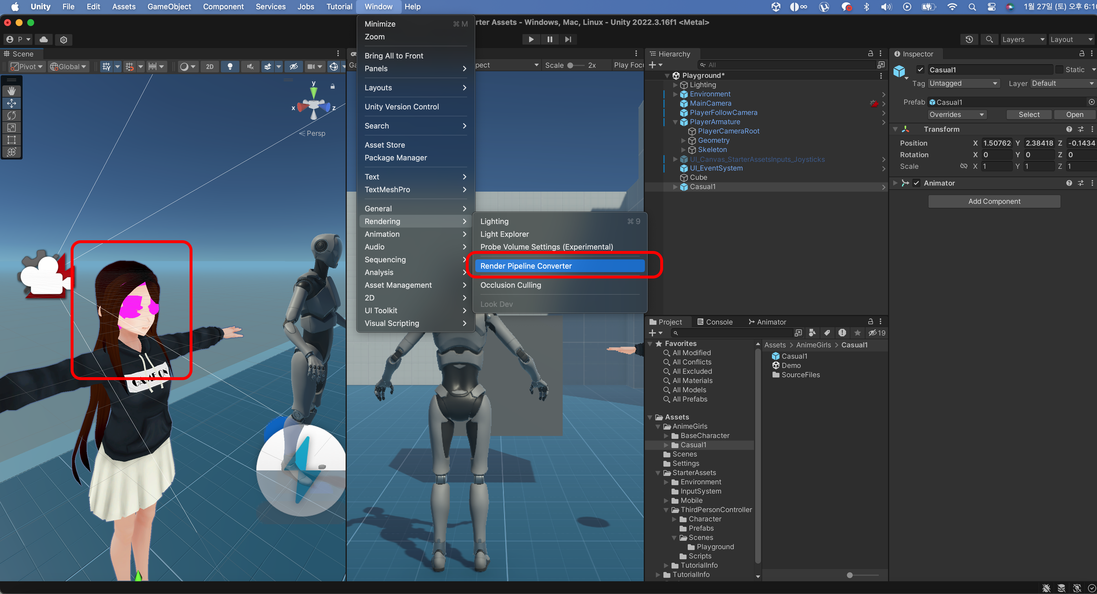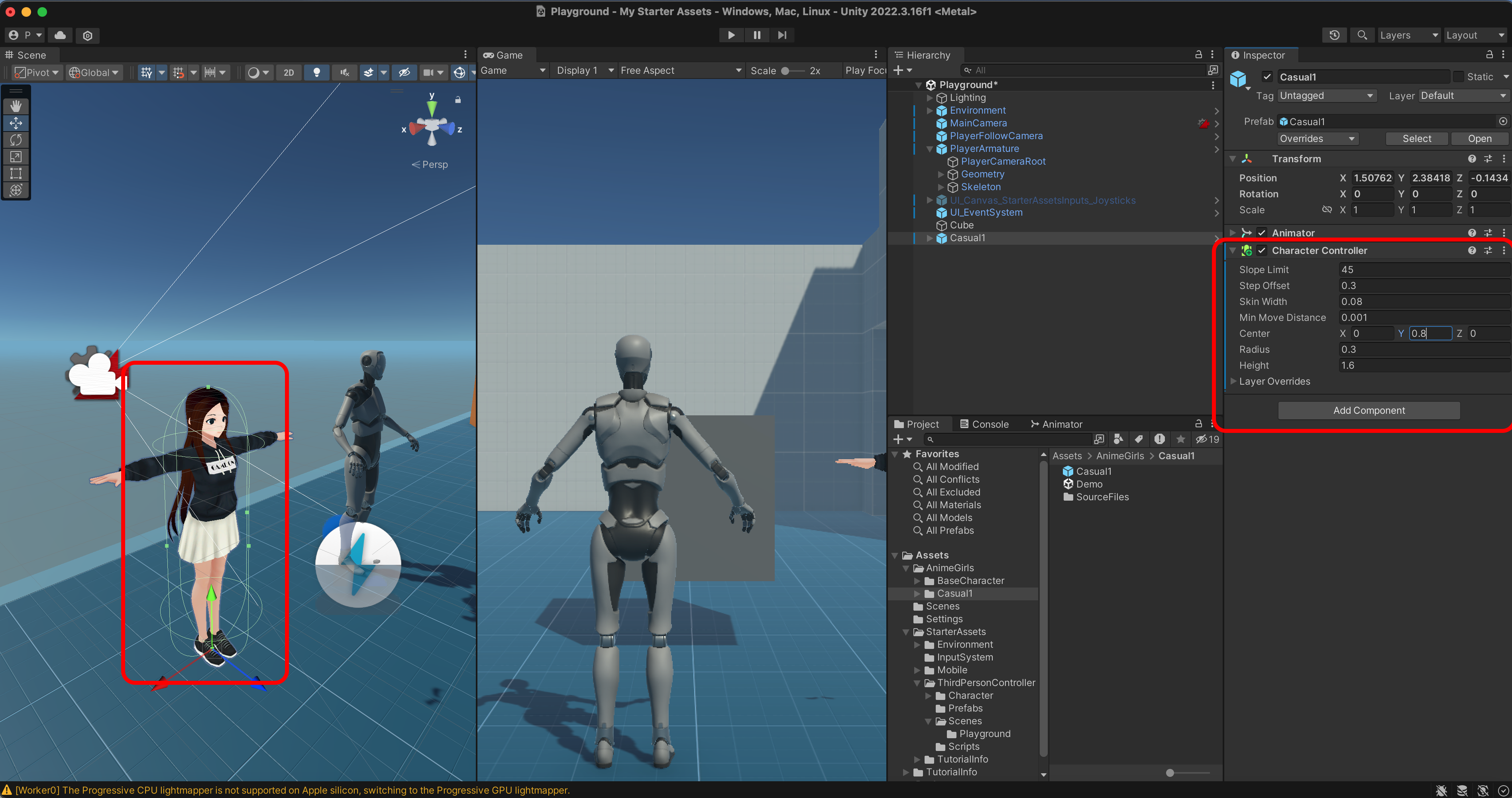 Animator에서 Character를 StaterAssetsThirdPerson으로 변경합니다.