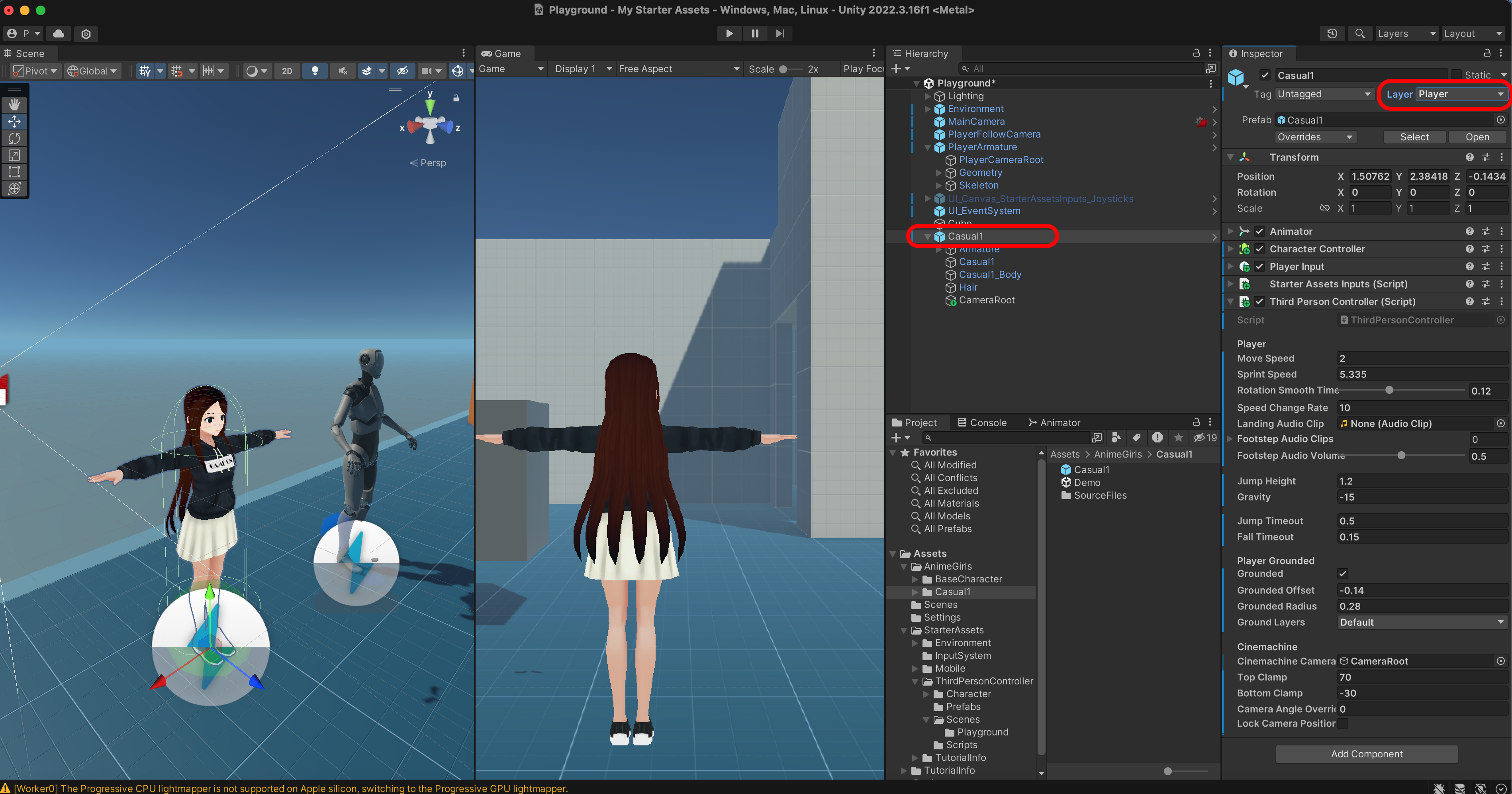 Player 레이어를 추가하고 Character Layer를 Player Layer로 변경합니다.