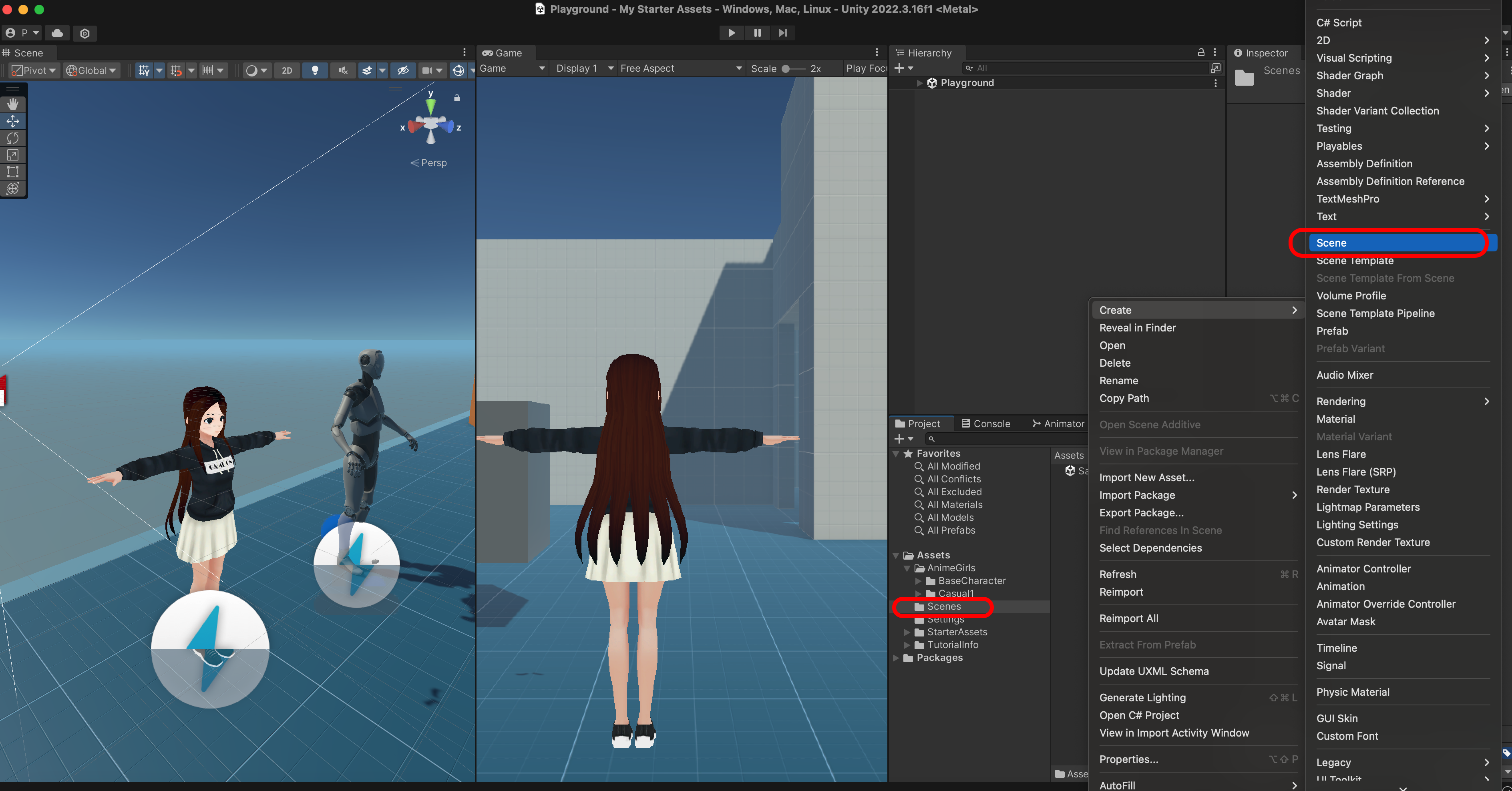 Scene > PlayGround를 더블클릭해서 확인 해봅니다.