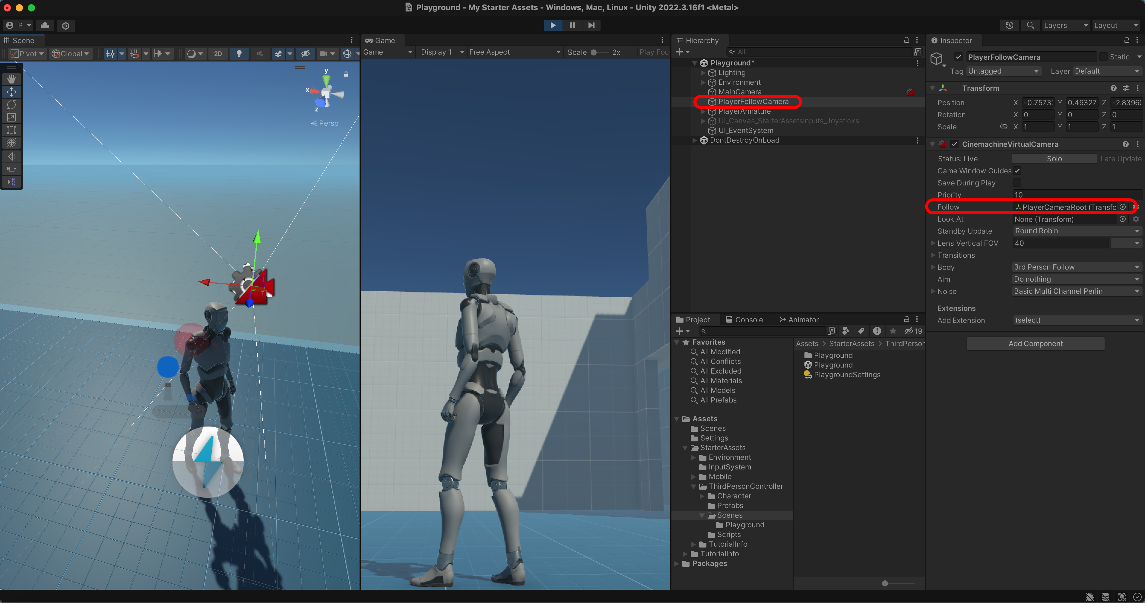 PlayerFollowCamera Follow를 CameraRoot로 연결합니다.