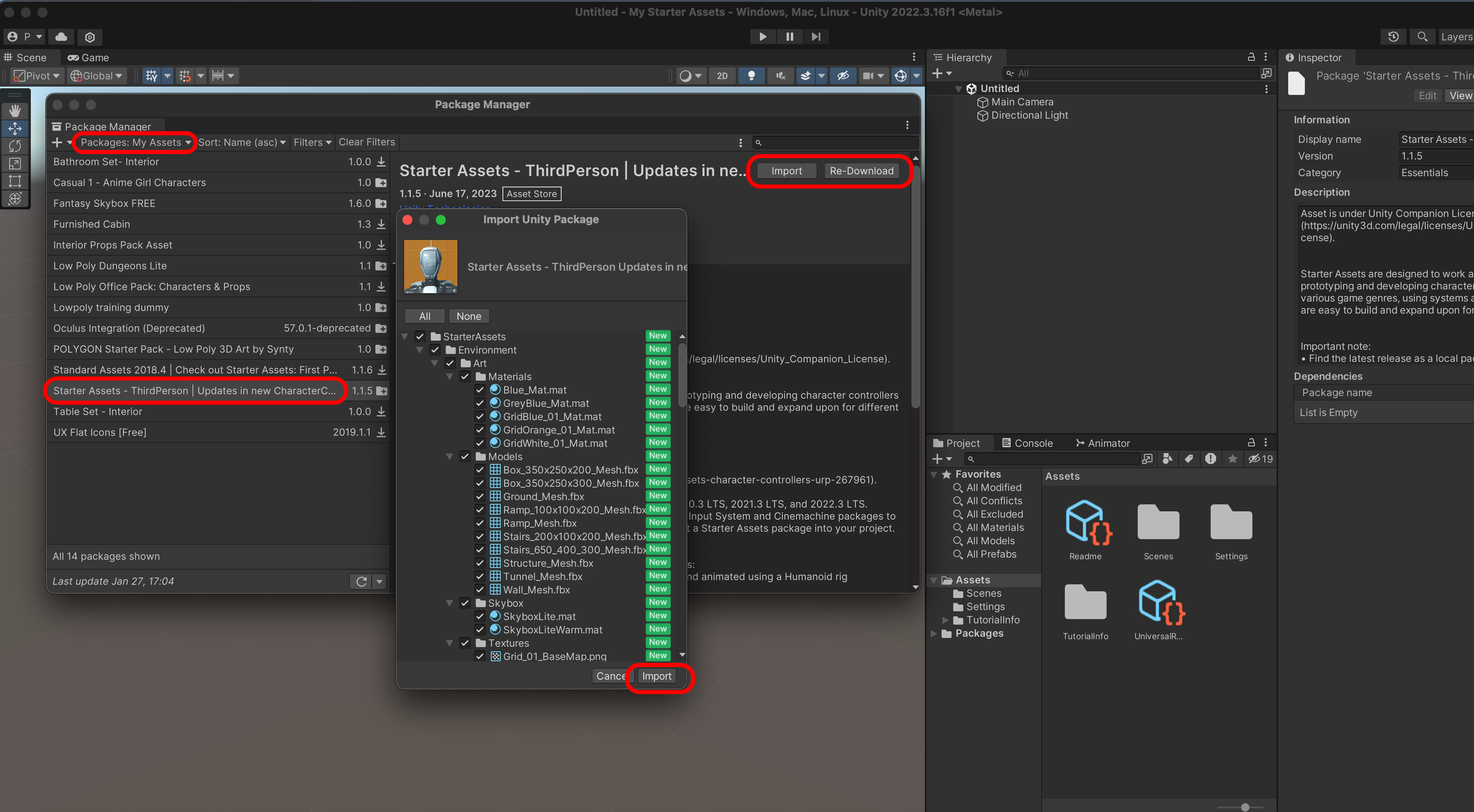 Starter Assets를 Import 하면