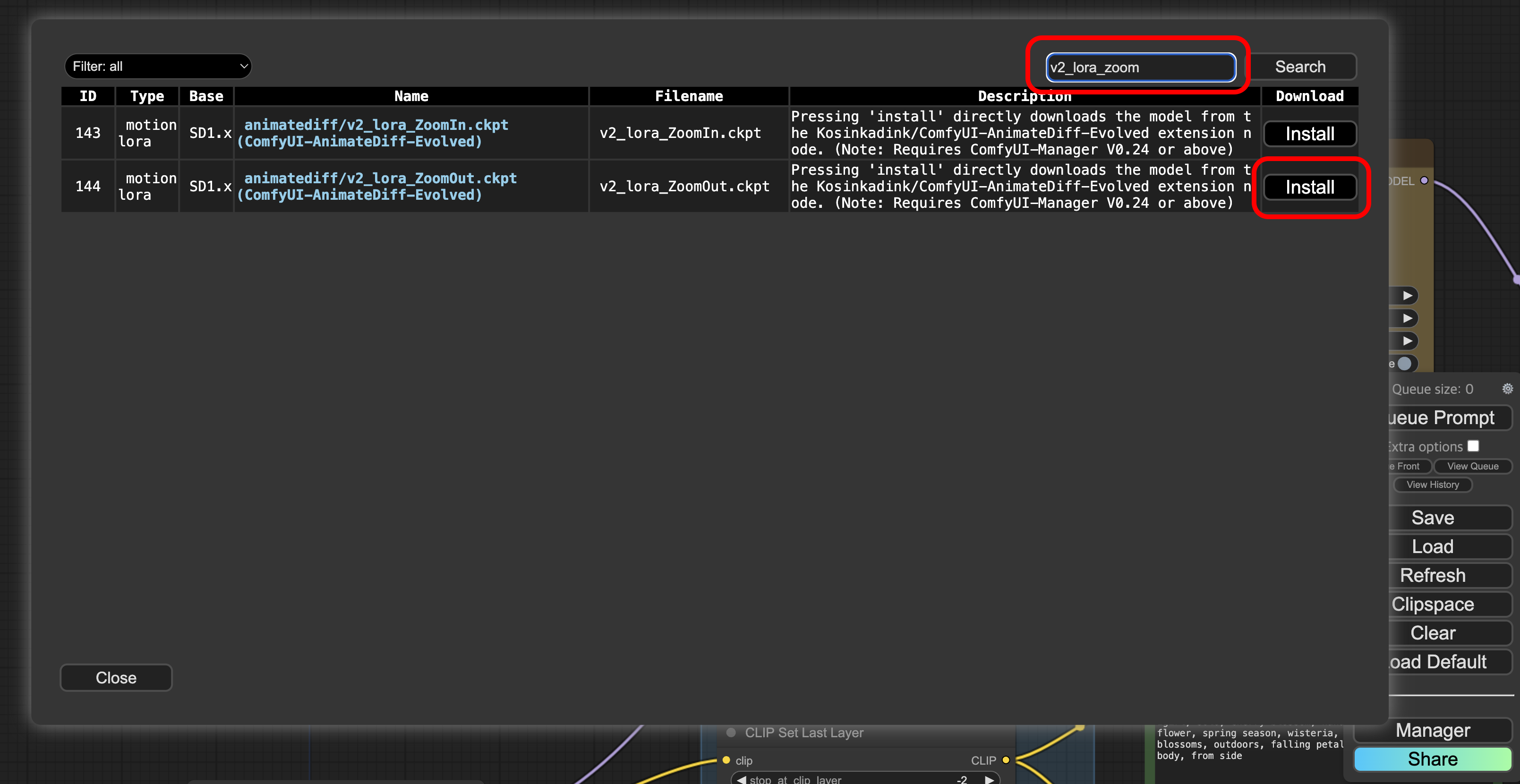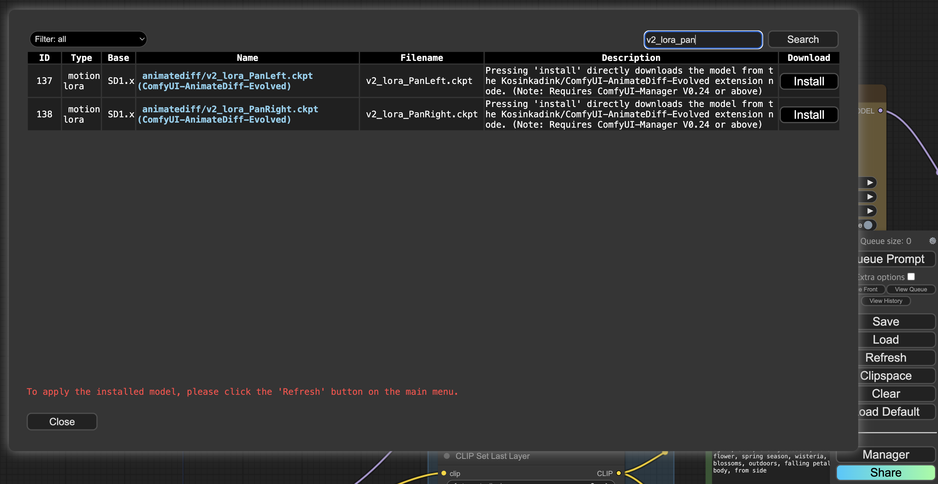 Queue Prompt해서 빠진 모델들을 확인 합니다.