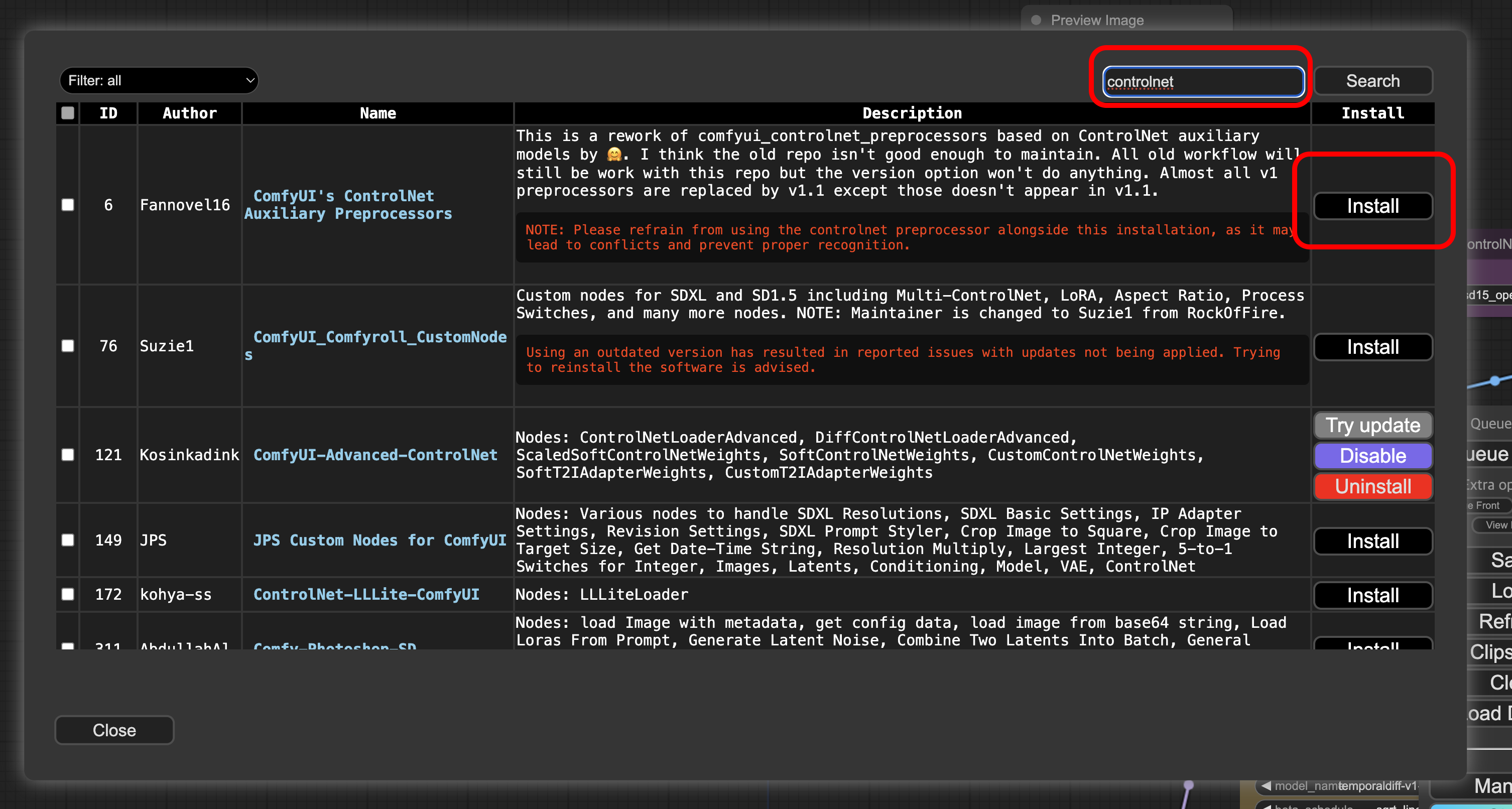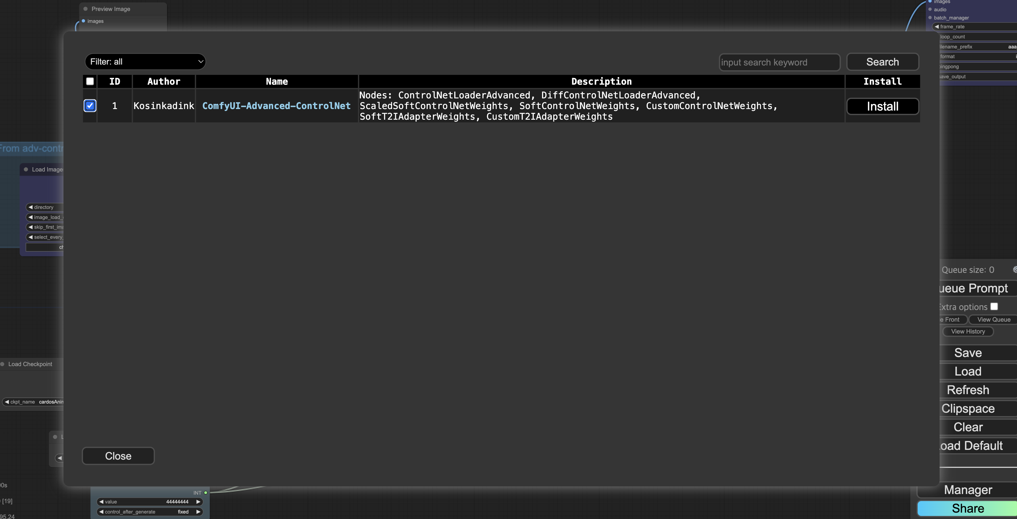 Manager > Install Custom Nodes에서 Controlnet을 검색해서 설치합니다.