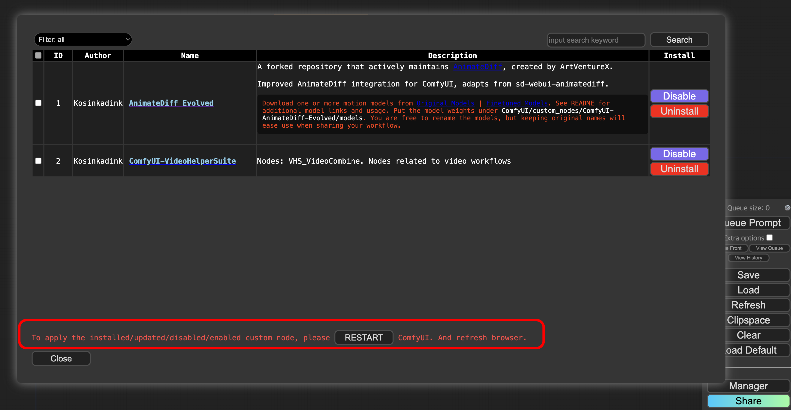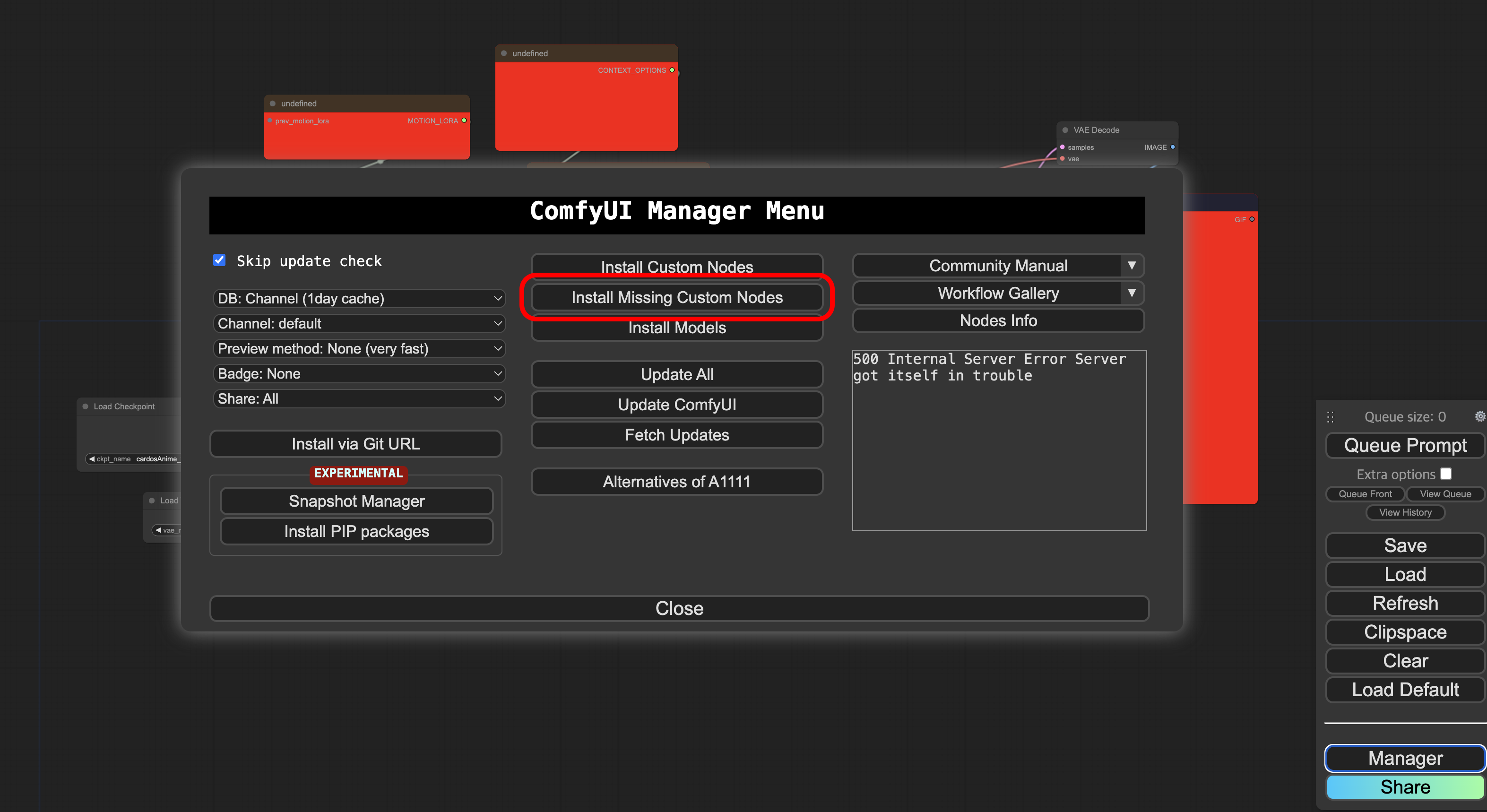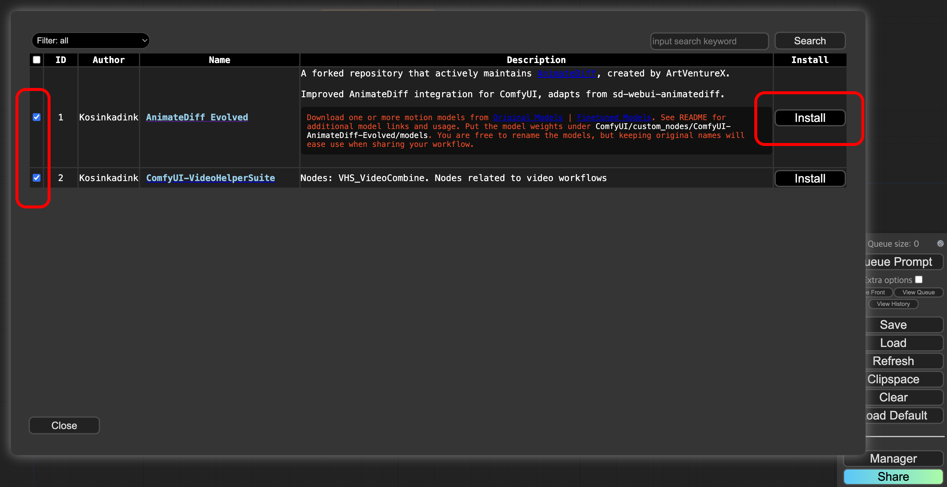Install Missing Custom Nodes를 클릭합니다.