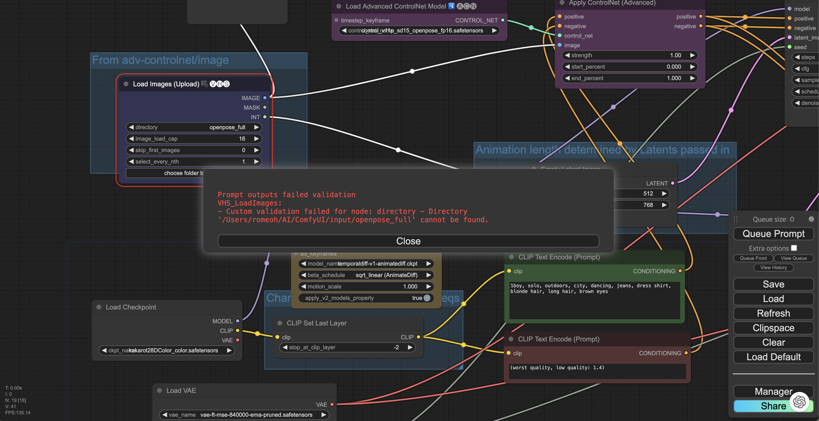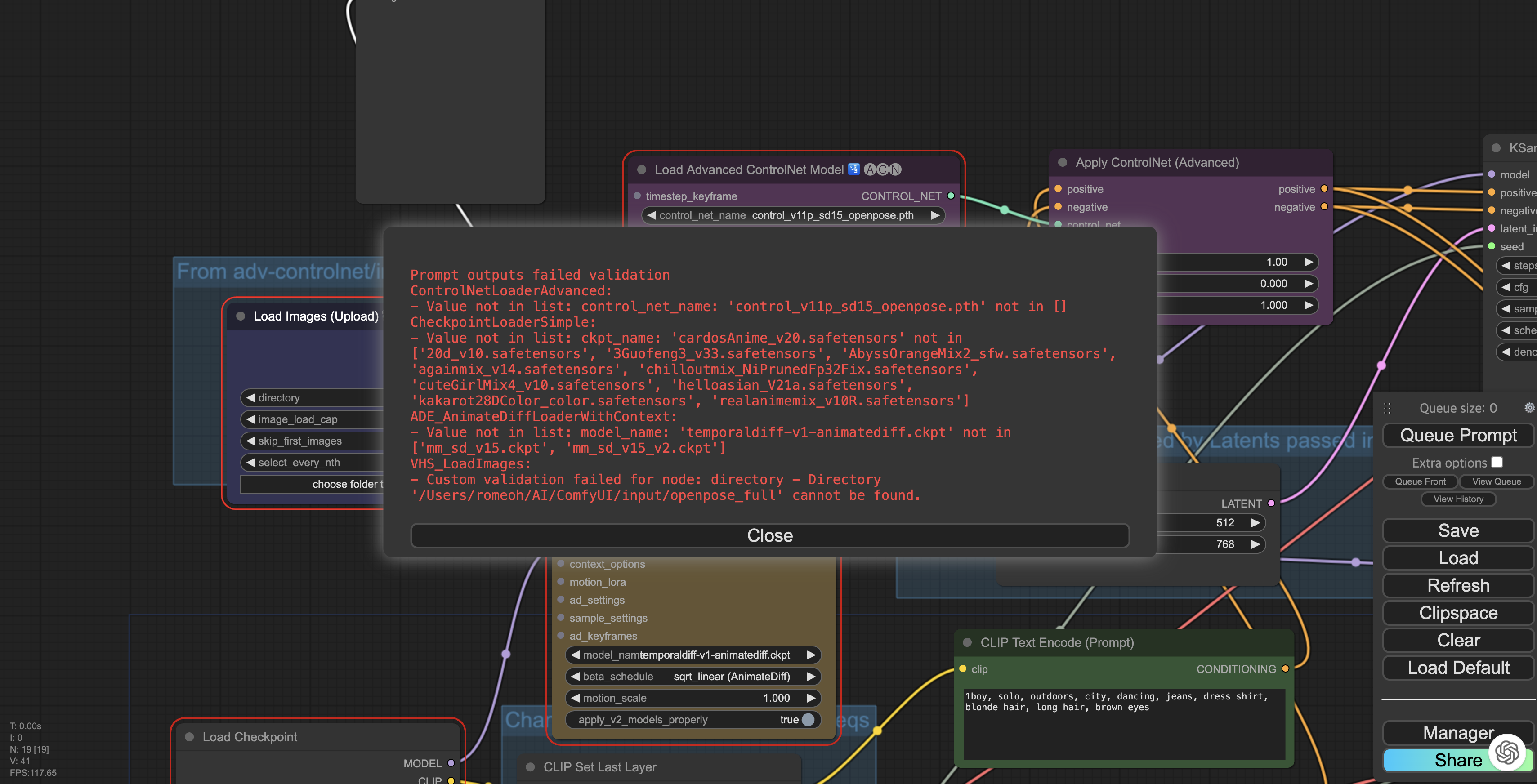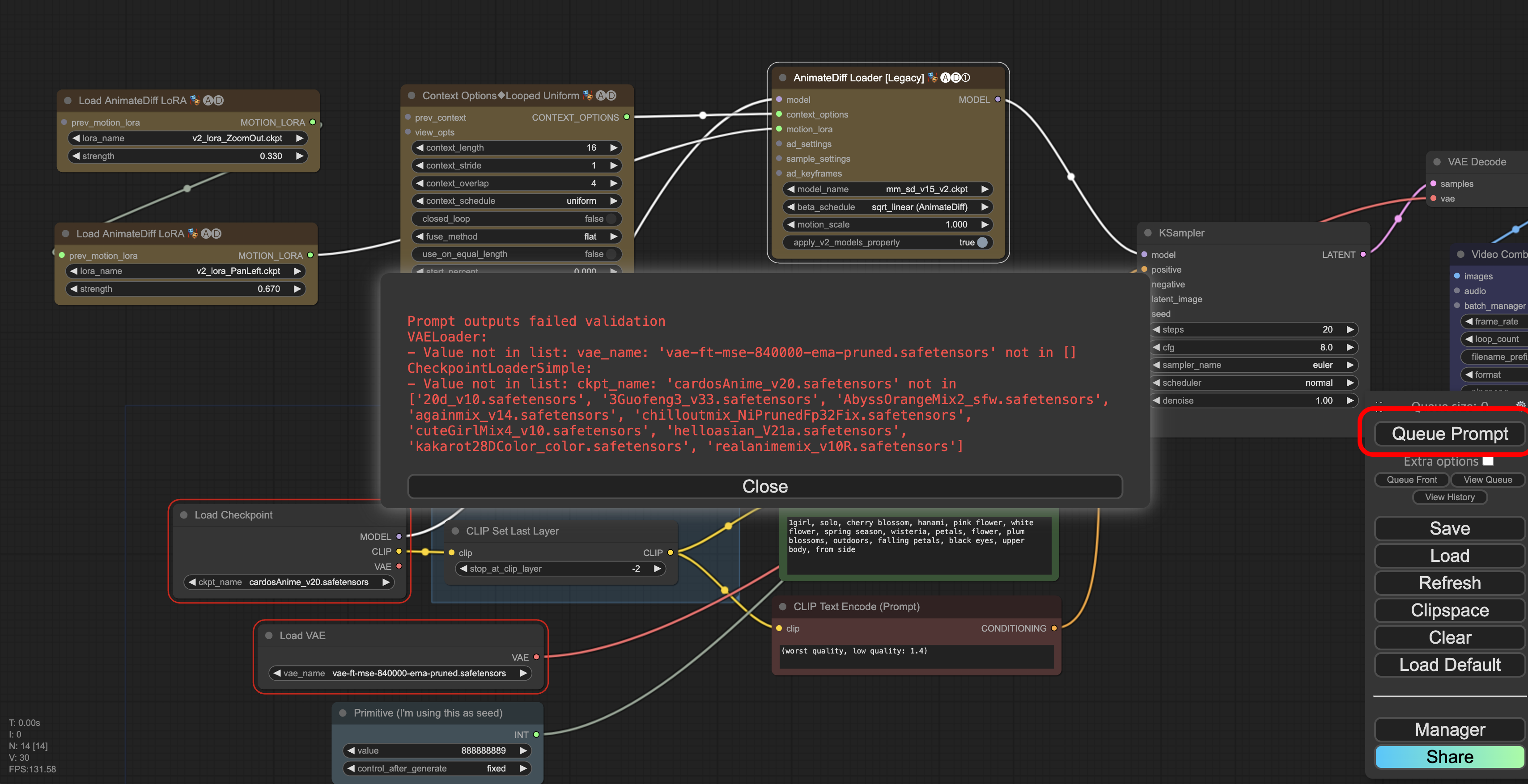 Queue Prompt를 눌러 빠진 부분을 확인 합니다.